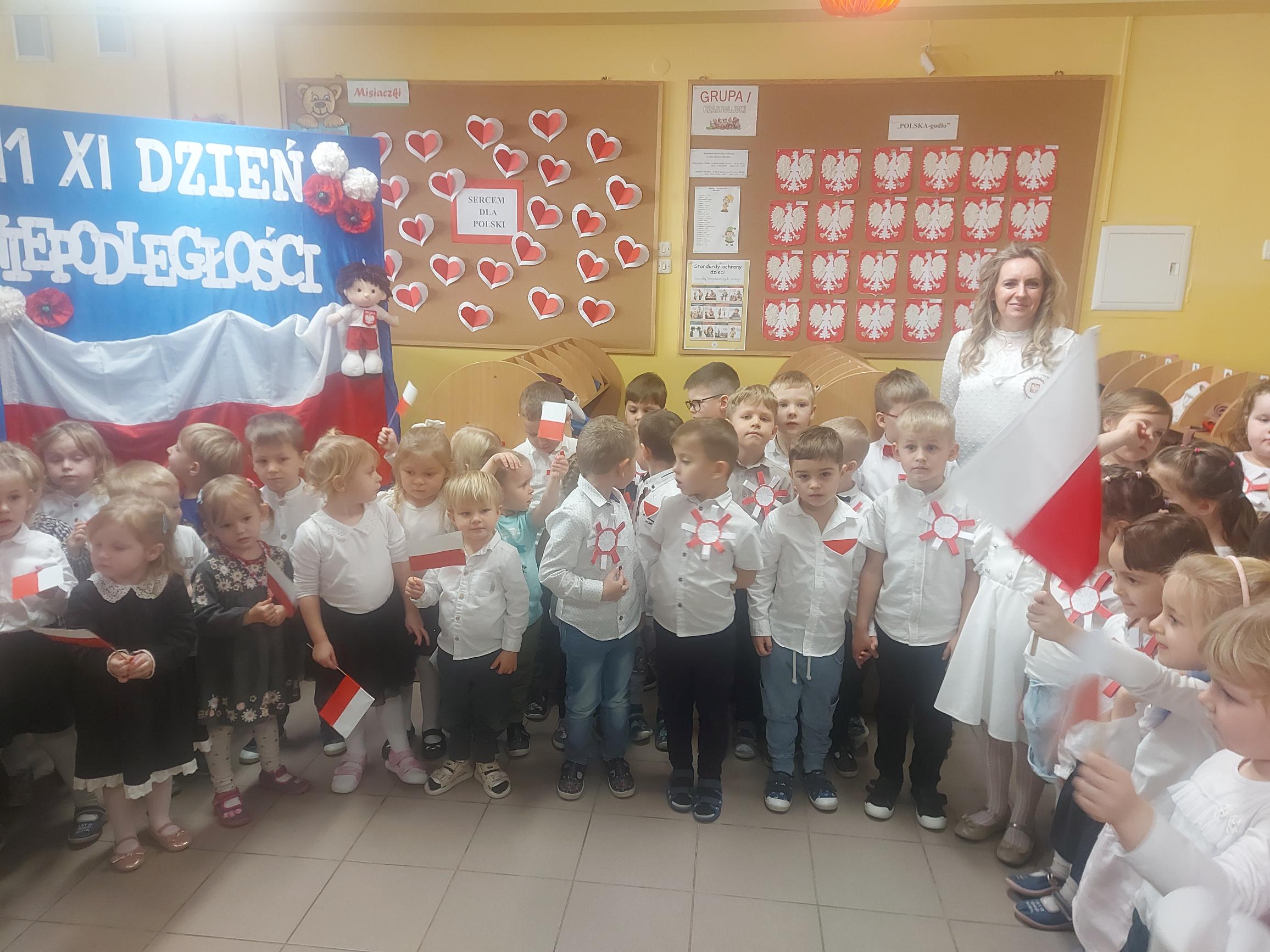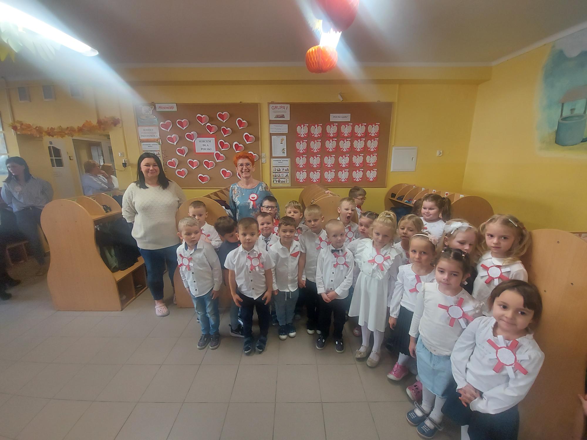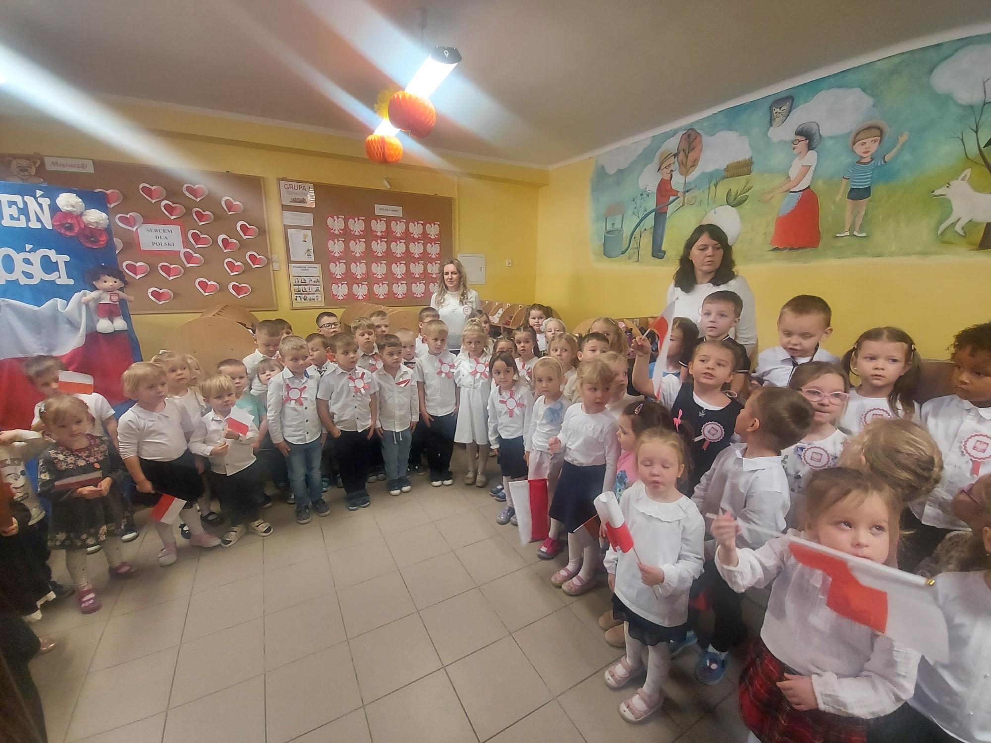 Jak co roku, zaprosiłyśmy wszystkich przedszkolaków do udziału w akcji ,,Szkoła do hymnu 2025” i odśpiewania Mazurka Dąbrowskiego przed Narodowym Świętem Niepodległości w piątek, 7 listopada, o symbolicznej godzinie 11:11. Nasze dzieci w odświętnych strojach i przy pięknej dekoracji odśpiewały hymn a ,,Krasnoludki” wyrecytowały wiersz o tematyce patriotycznej. Wcześniej wykonane zostały prace plastyczne, które stanowiły tło do tego ważnego spotkania.