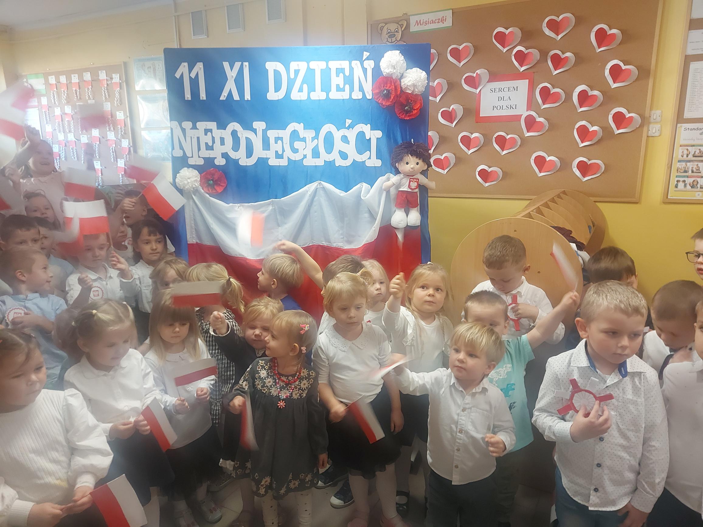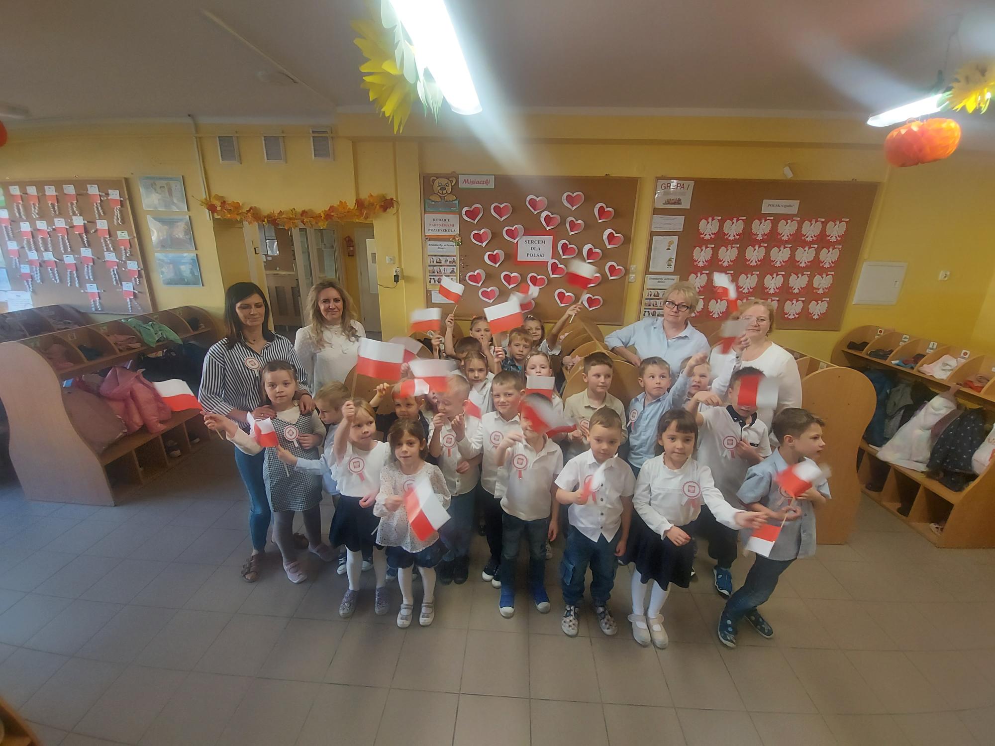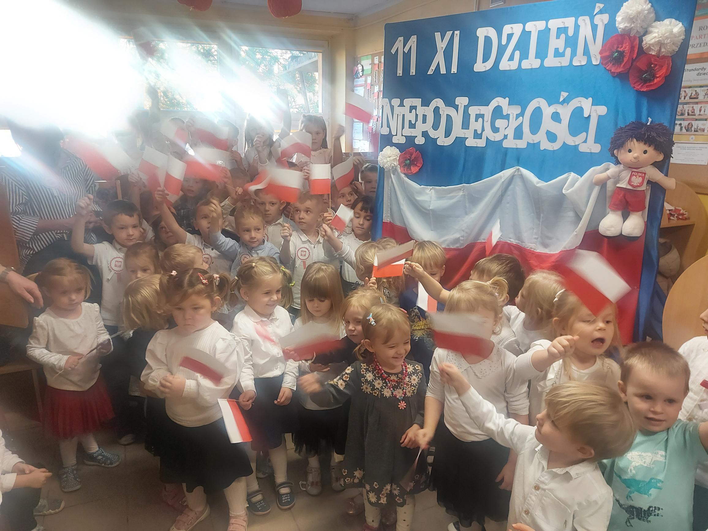 Jak co roku, zaprosiłyśmy wszystkich przedszkolaków do udziału w akcji ,,Szkoła do hymnu 2025” i odśpiewania Mazurka Dąbrowskiego przed Narodowym Świętem Niepodległości w piątek, 7 listopada, o symbolicznej godzinie 11:11. Nasze dzieci w odświętnych strojach i przy pięknej dekoracji odśpiewały hymn a ,,Krasnoludki” wyrecytowały wiersz o tematyce patriotycznej. Wcześniej wykonane zostały prace plastyczne, które stanowiły tło do tego ważnego spotkania.