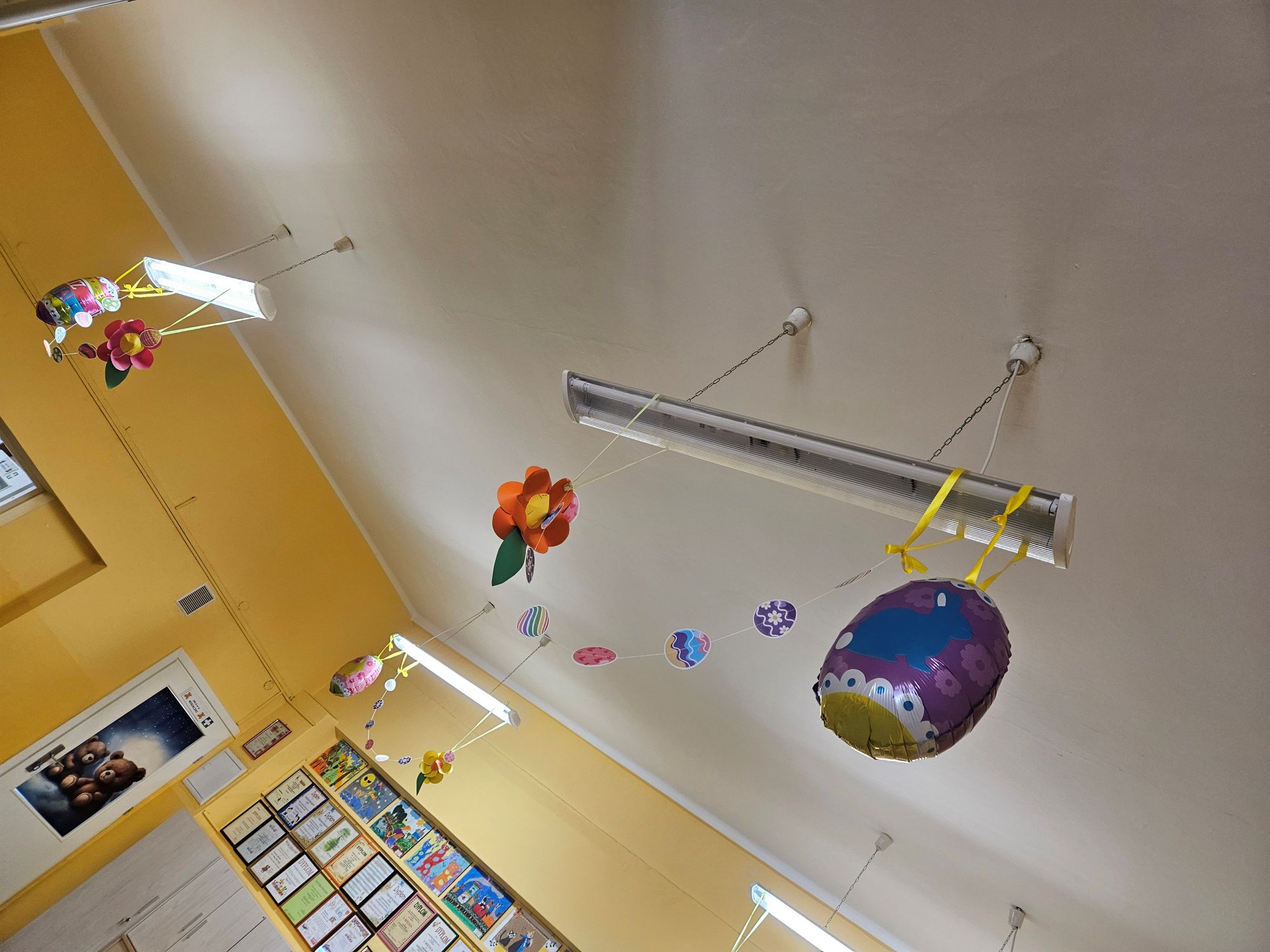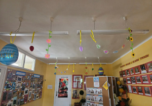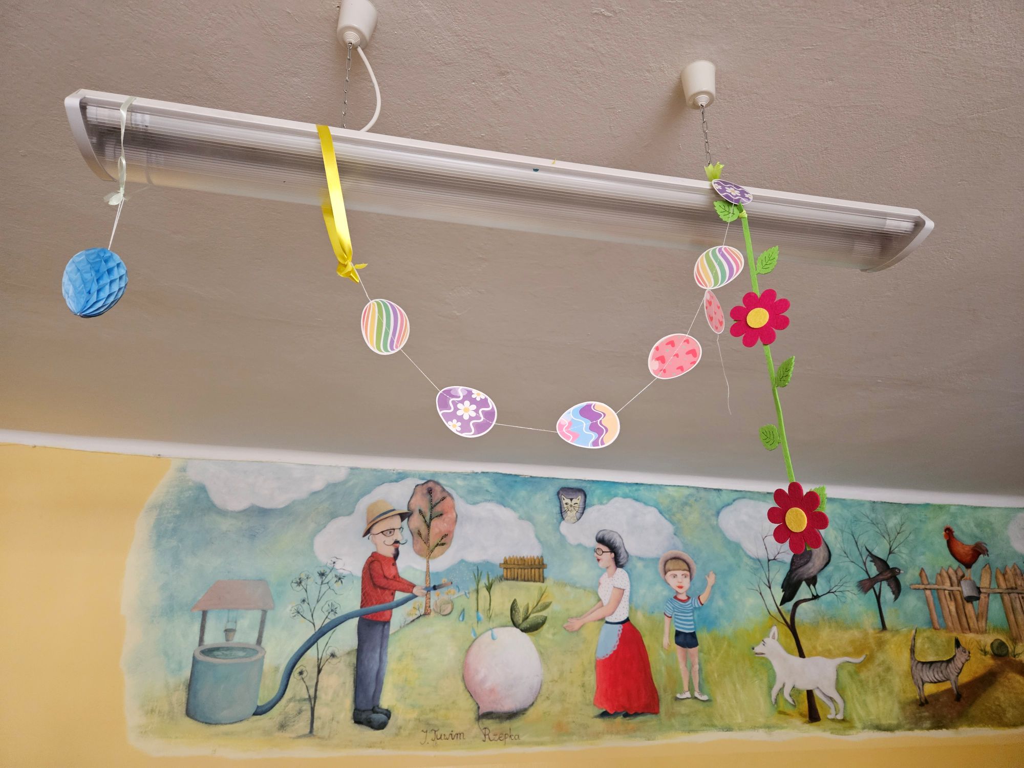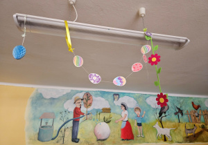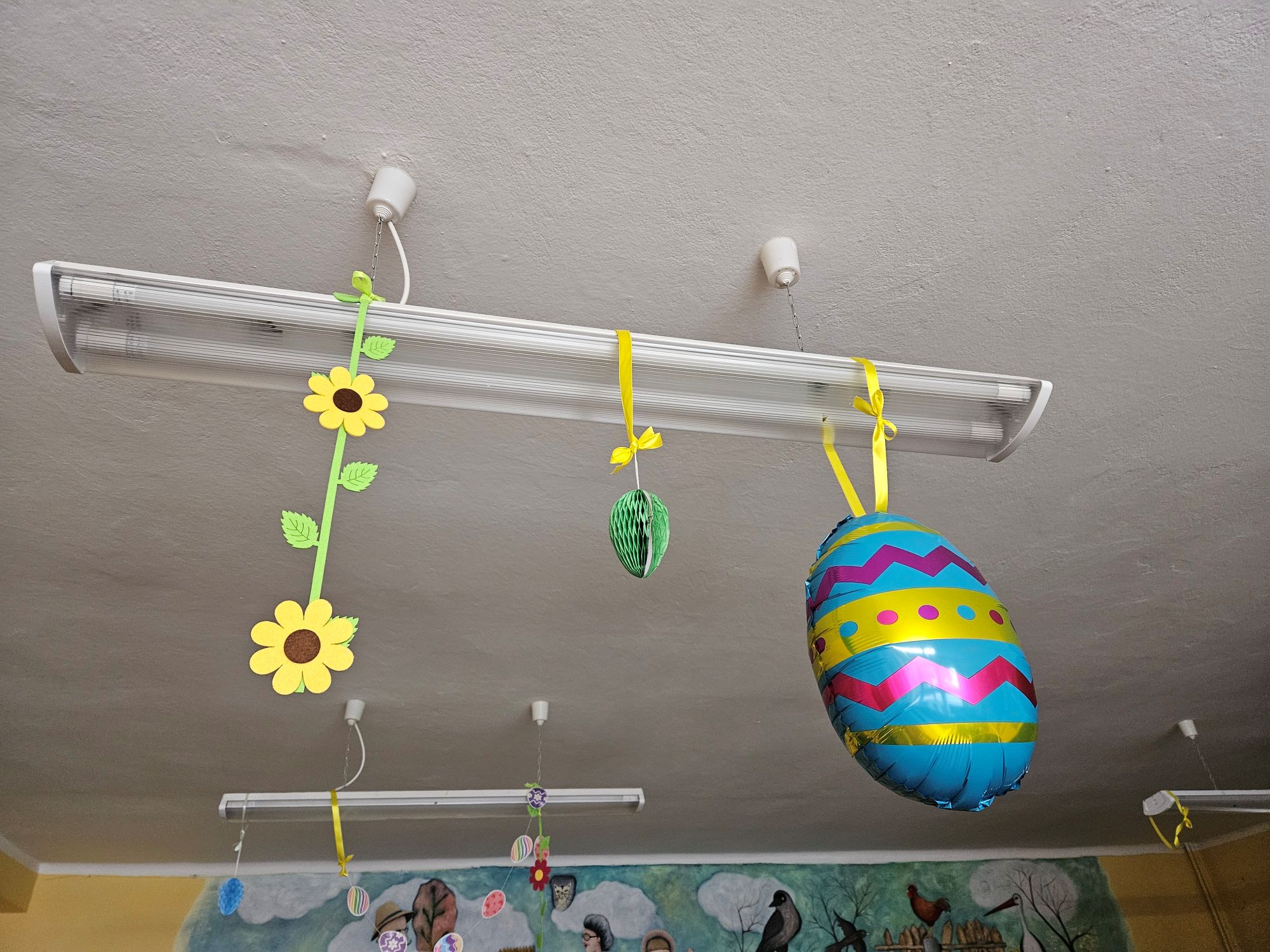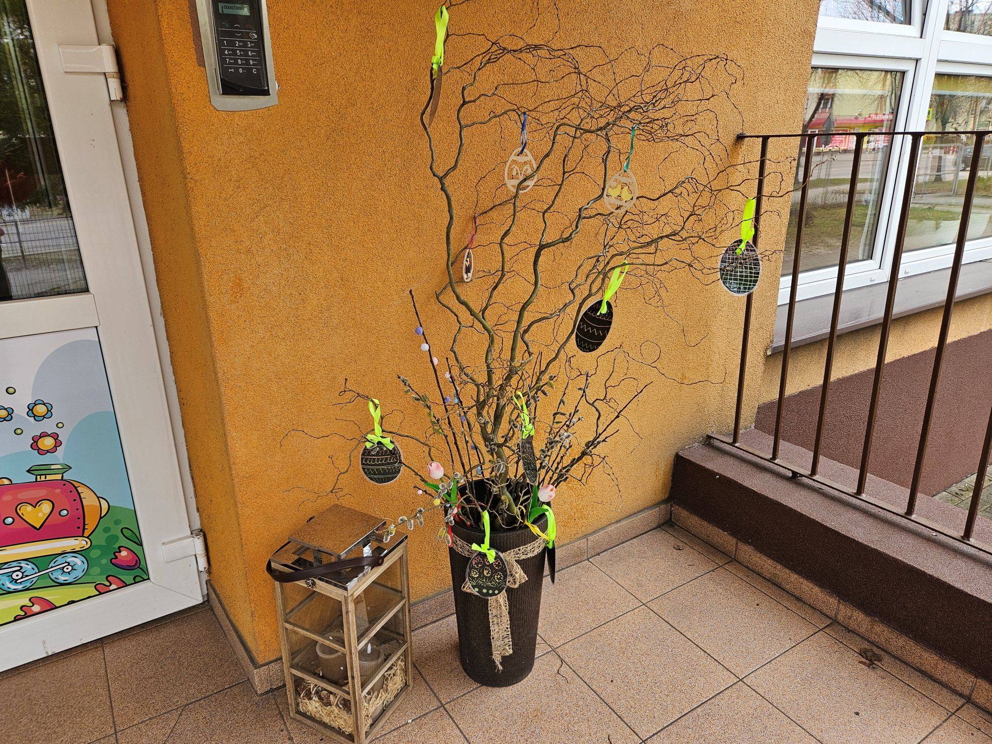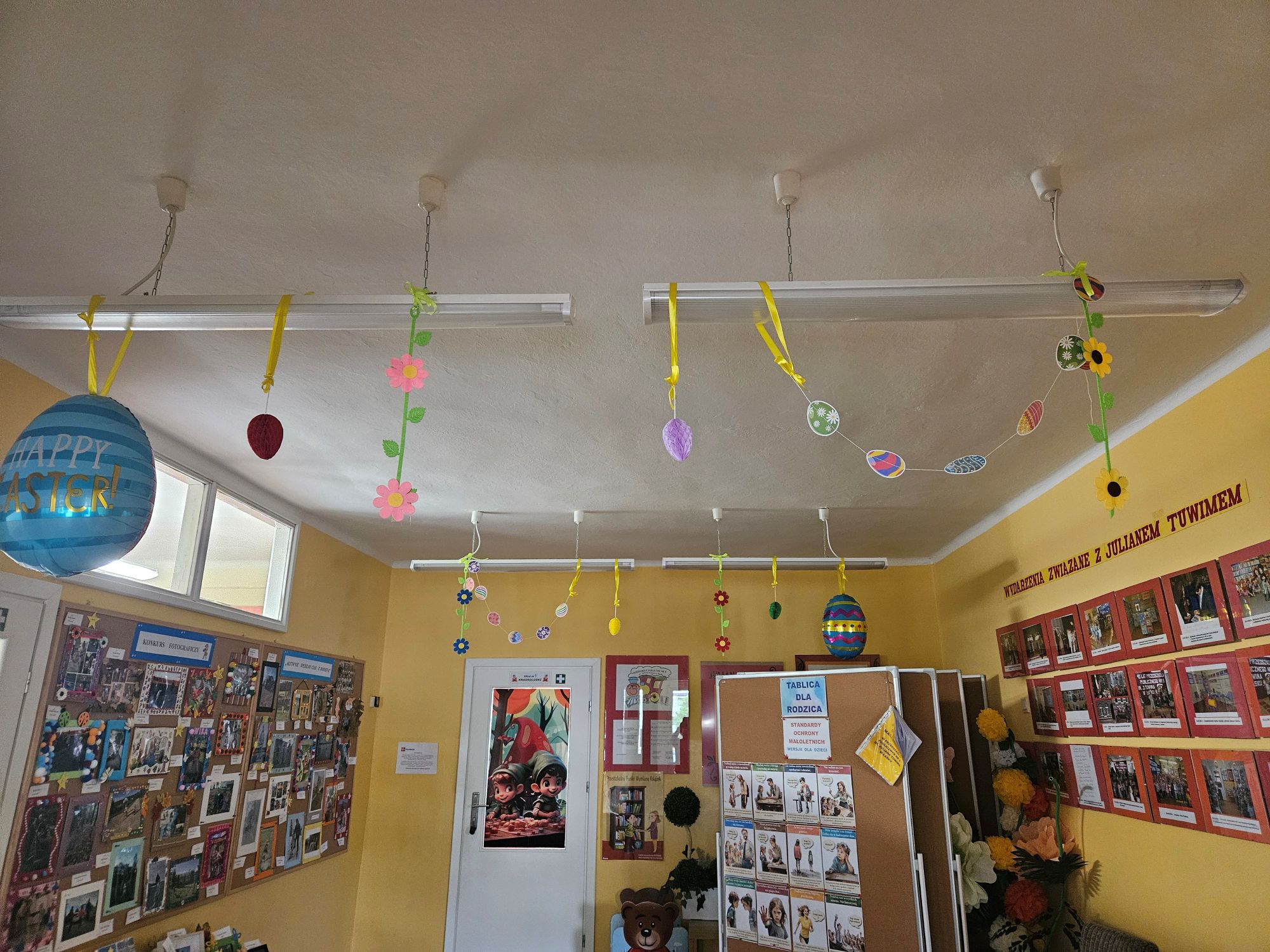 Wiosna to piękna pora roku, która budzi uśpioną przyrodę. Pojawiają się pierwsze kwiaty i dużymi krokami zbliżają się Święta Wielkanocne. Pani Renata Wrzesiak ozdobiła korytarze przedszkolne dekoracją nawiązującą tematycznie do wiosny i świąt. Kolorowe pisanki i kwiaty rozweseliły wygląd naszego przedszkola.