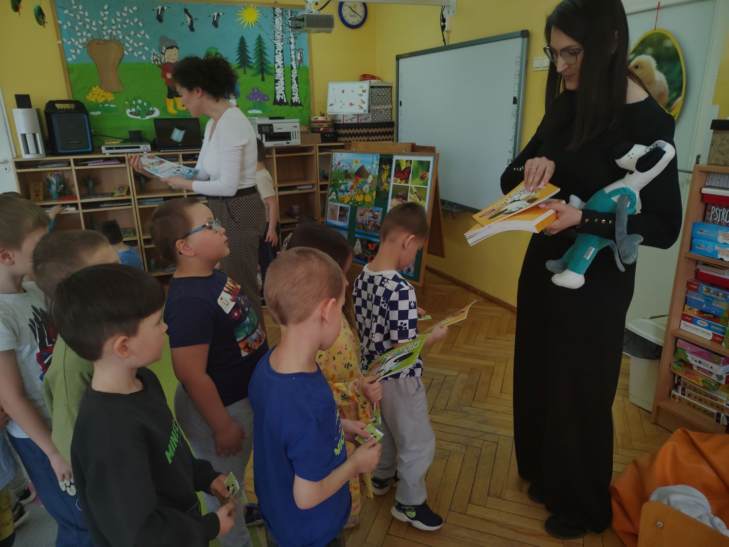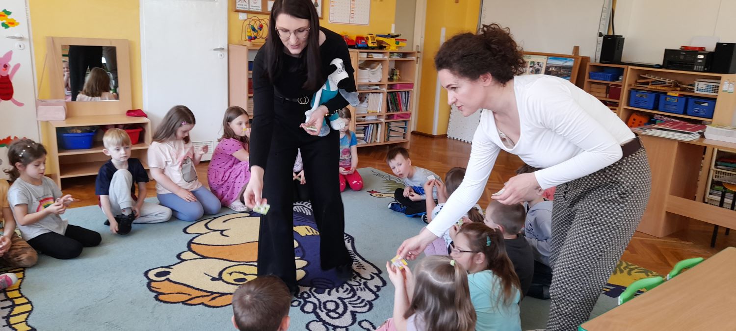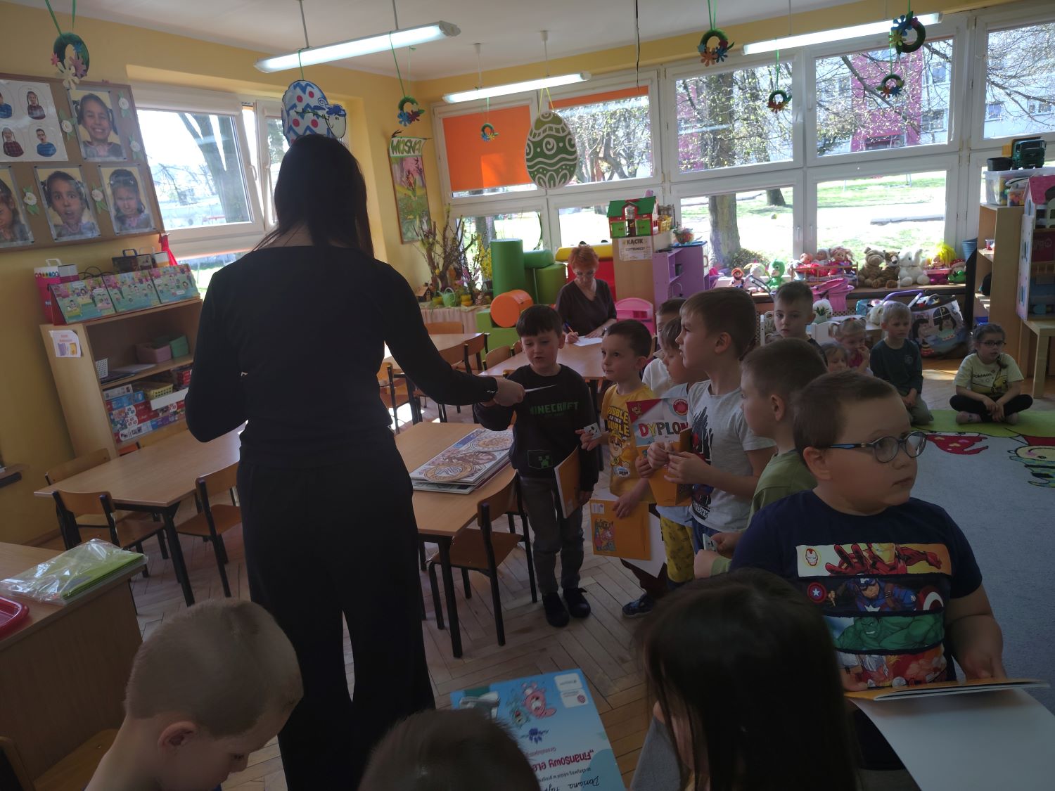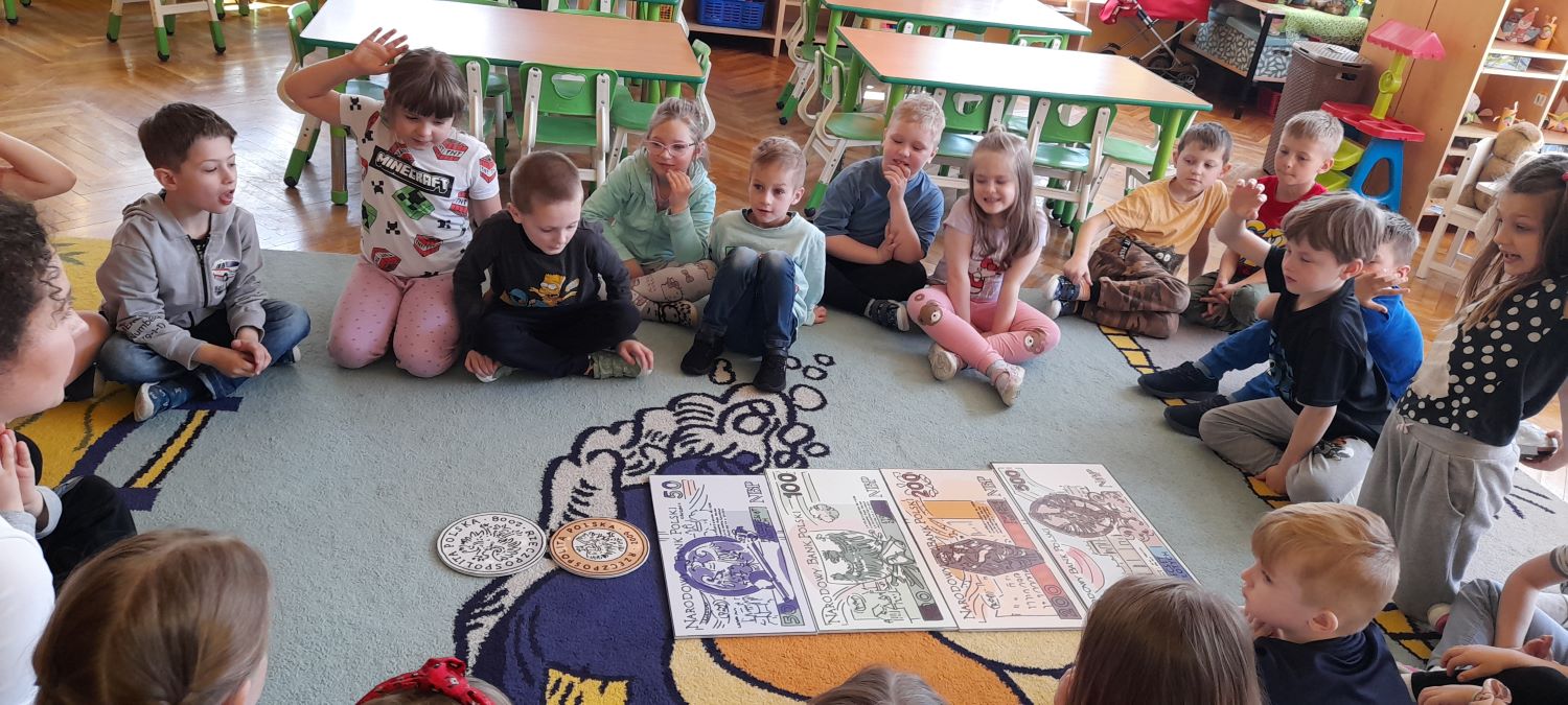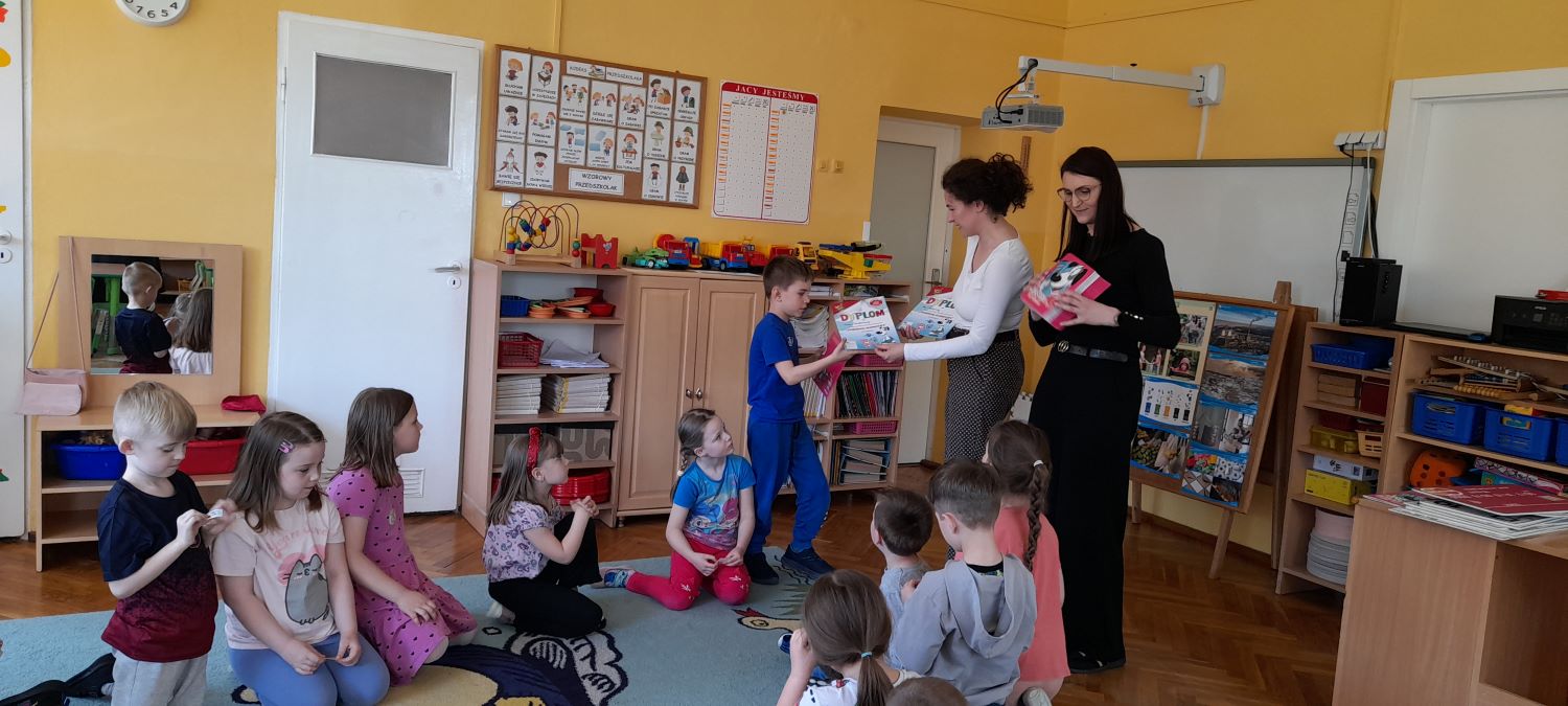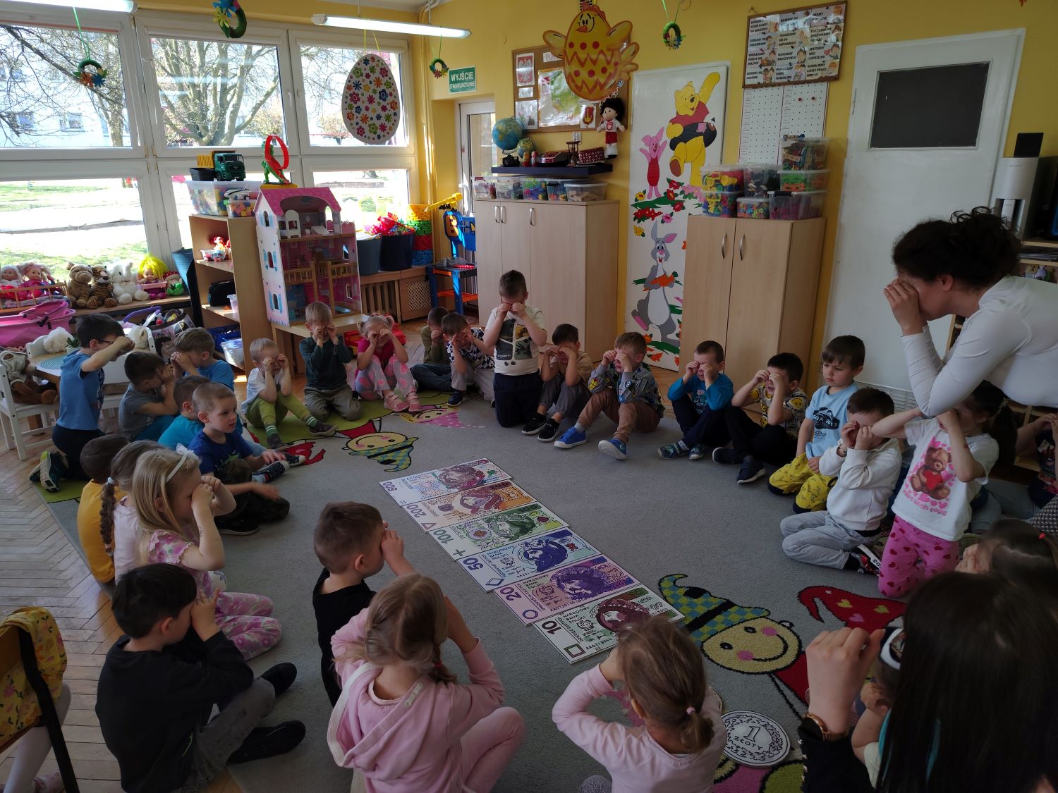 21.04.2026 r. - W naszym przedszkolu odbyły się warsztaty zatytułowane „Finansowy elementarz” w ramach Programu edukacyjnego Fundacji Banku Millennium. Miały one na celu poszerzenie wiedzy przedszkolaków na temat pieniędzy i sposobów posługiwania się nimi. Zajęcia w dwóch grupach, z dziećmi pięcioletnimi z grupy Krasnoludków i Żabek oraz z sześciolatkami z grupy Misiaczkówi Żabek, prowadziły bardzo sympatyczne przedstawicielki Banku Millenium: pani Marlena Urbaniak i pani Izabela Gandziarowska – Stępień. Spotkanie rozpoczęła Pani Iza od zagadki o pieniądzach i krótkiej rozmowy o różnych monetach i banknotach. Pani Marlena przeczytała dzieciom książeczkę pt. „Pan Sebastian i opowieść o Banku” a pani Iza ilustrowała ją śmieszną maskotką Pana Sebastiana. Książeczka opowiadała o różnych, nowoczesnych sposobach płacenia. Podczas omawiania jej treści dzieci wykazały się zaskakującą wiedzą o możliwości płacenia kartą, gotówką, telefonem czy przy pomocy zegarka. Pani Izabela zademonstrowała dużą poglądową kartę płatniczą i w przystępny sposób wyjaśniła na czym polega pobieranie pieniędzy z konta za pomocą karty i 4 cyfrowego PIN-u. Wspólnie z dziećmi omówiła zasady bezpiecznego korzystania z karty. Dzieciaki z zainteresowaniem obserwowały pokaz pani Izabeli z użyciem dużych modeli banknotów, dotyczący wpłat i wypłat z osobistego konta. Przedszkolaki wykazały się umiejętnością liczenia i dodawania. Następnie układały modele pokazowych pieniędzy w odpowiedniej kolejności według wysokości nominału i określały czym się różnią. Prowadząca wyjaśniła dzieciom na czym polega oryginalność banknotu i jakie znaki na banknocie pozwalają rozpoznać jego autentyczność. Dzieci z ciekawością obserwowały znaki wodne pokazywane przez panią Izę. Następnie zaproponowała przedszkolakom zabawę na spostrzegawczość: „Co się zmieniło, czego brakuje?” Dzieci rozpoznawały, które modele pieniędzy zostały zamienione lub schowane. Na koniec pani Izabela wyjaśniła na czym polega płacenie „Blikiem”. Zaprosiła dzieci do zabawy, w której mogły się wykazać znajomością różnych form płacenia. Na zakończenie wszyscy uczestnicy spotkania otrzymali od prowadzących pamiątkowe naklejki, dyplomy oraz książeczki, które utrwalą zdobytą na warsztatach wiedzę. Przedszkolaki sprawiły prowadzącym niespodziankę wręczając kolorową laurkę z podziękowaniami. Pani Iza i pani Marlena chętnie ustawiły się z dziećmi do pamiątkowego zdjęcia. Serdecznie dziękujemy za interesujące zajęcia, a nowe umiejętności przydadzą się przedszkolakom w codziennym życiu.