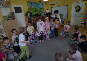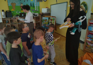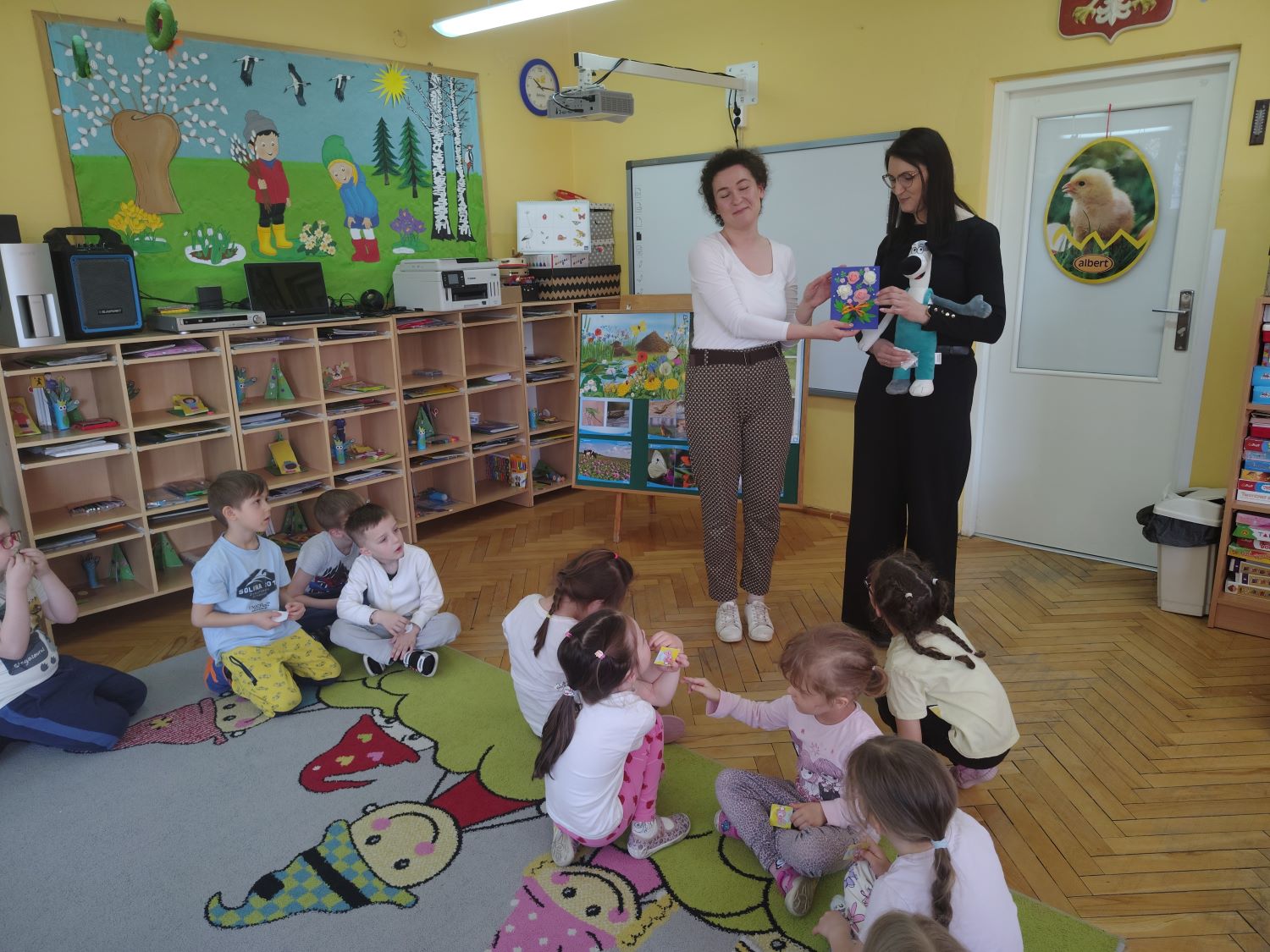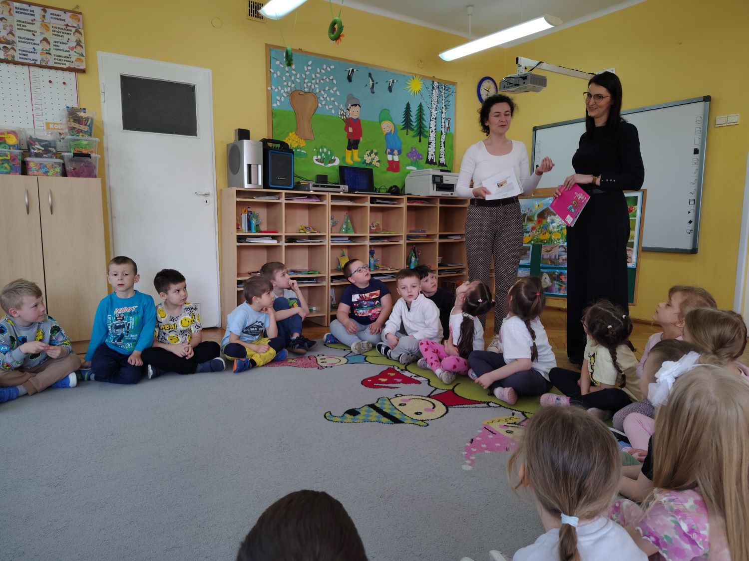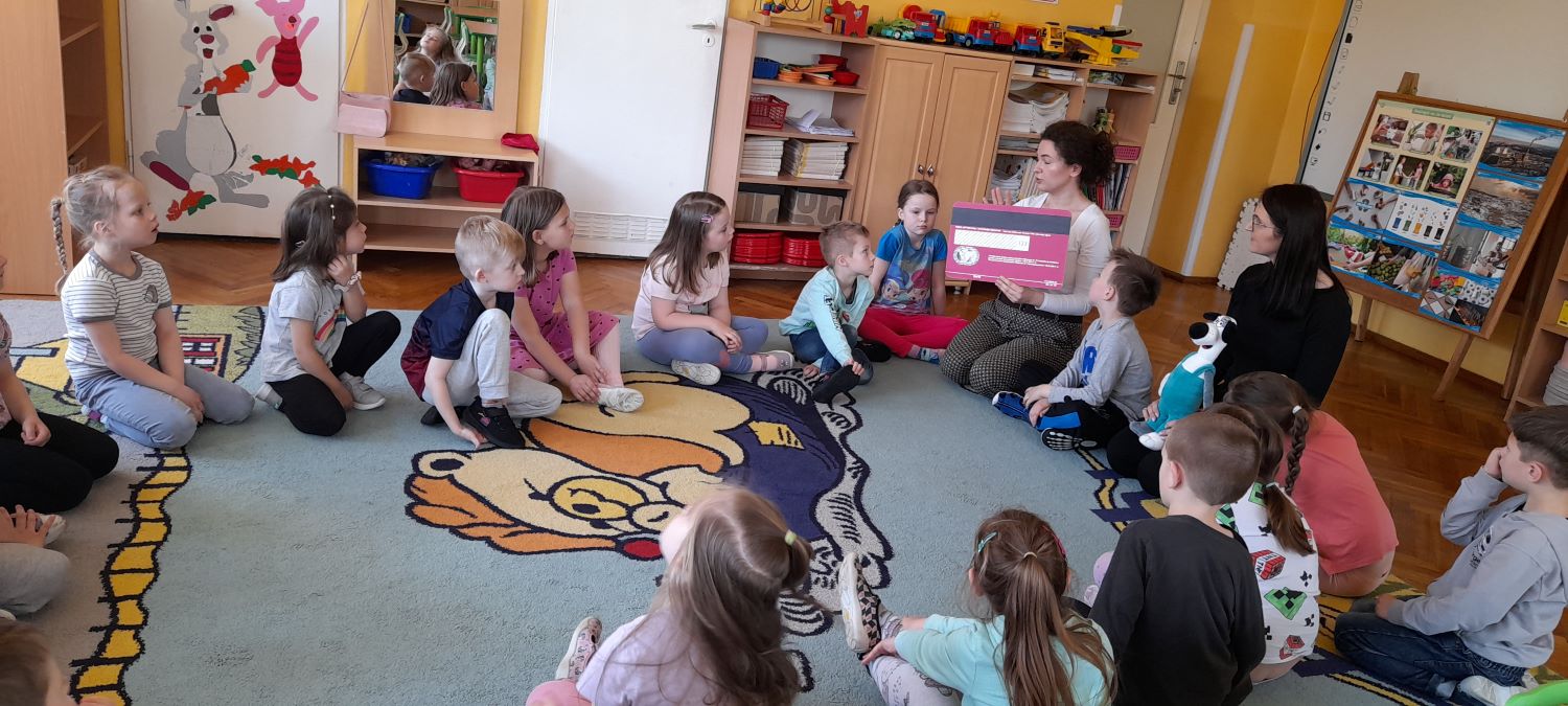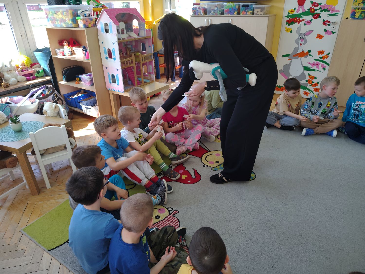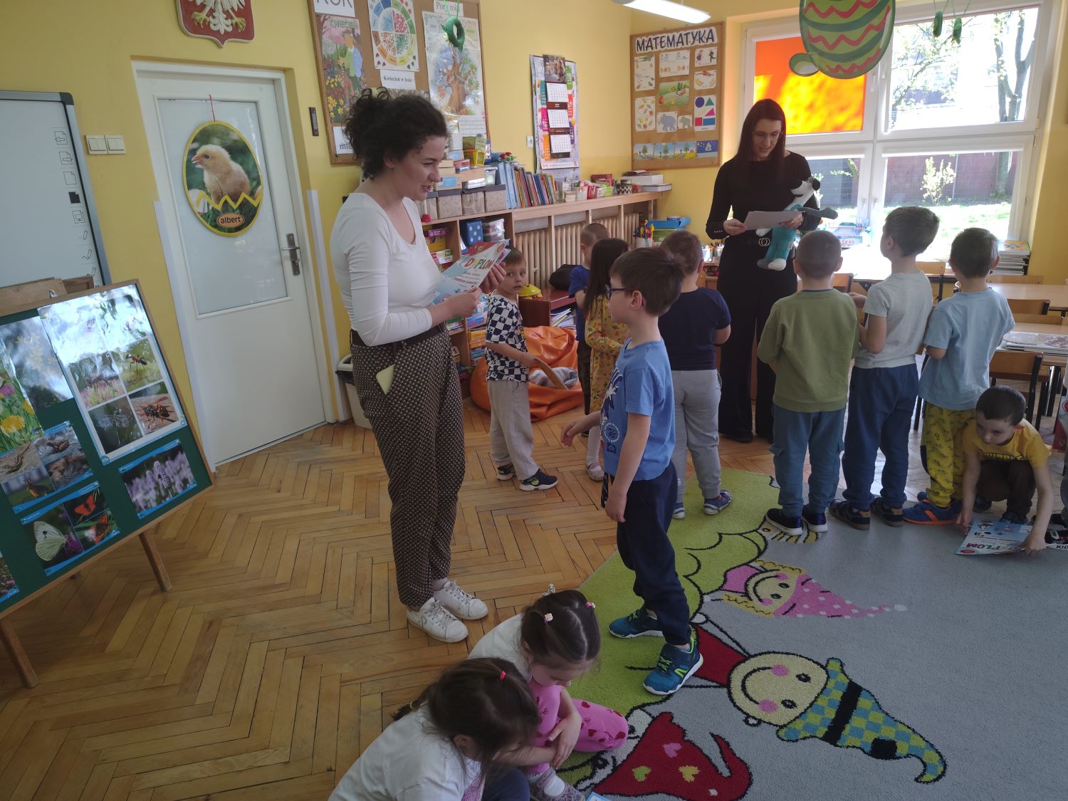 21.04.2026 r. - W naszym przedszkolu odbyły się warsztaty zatytułowane „Finansowy elementarz” w ramach Programu edukacyjnego Fundacji Banku Millennium. Miały one na celu poszerzenie wiedzy przedszkolaków na temat pieniędzy i sposobów posługiwania się nimi. Zajęcia w dwóch grupach, z dziećmi pięcioletnimi z grupy Krasnoludków i Żabek oraz z sześciolatkami z grupy Misiaczkówi Żabek, prowadziły bardzo sympatyczne przedstawicielki Banku Millenium: pani Marlena Urbaniak i pani Izabela Gandziarowska – Stępień. Spotkanie rozpoczęła Pani Iza od zagadki o pieniądzach i krótkiej rozmowy o różnych monetach i banknotach. Pani Marlena przeczytała dzieciom książeczkę pt. „Pan Sebastian i opowieść o Banku” a pani Iza ilustrowała ją śmieszną maskotką Pana Sebastiana. Książeczka opowiadała o różnych, nowoczesnych sposobach płacenia. Podczas omawiania jej treści dzieci wykazały się zaskakującą wiedzą o możliwości płacenia kartą, gotówką, telefonem czy przy pomocy zegarka. Pani Izabela zademonstrowała dużą poglądową kartę płatniczą i w przystępny sposób wyjaśniła na czym polega pobieranie pieniędzy z konta za pomocą karty i 4 cyfrowego PIN-u. Wspólnie z dziećmi omówiła zasady bezpiecznego korzystania z karty. Dzieciaki z zainteresowaniem obserwowały pokaz pani Izabeli z użyciem dużych modeli banknotów, dotyczący wpłat i wypłat z osobistego konta. Przedszkolaki wykazały się umiejętnością liczenia i dodawania. Następnie układały modele pokazowych pieniędzy w odpowiedniej kolejności według wysokości nominału i określały czym się różnią. Prowadząca wyjaśniła dzieciom na czym polega oryginalność banknotu i jakie znaki na banknocie pozwalają rozpoznać jego autentyczność. Dzieci z ciekawością obserwowały znaki wodne pokazywane przez panią Izę. Następnie zaproponowała przedszkolakom zabawę na spostrzegawczość: „Co się zmieniło, czego brakuje?” Dzieci rozpoznawały, które modele pieniędzy zostały zamienione lub schowane. Na koniec pani Izabela wyjaśniła na czym polega płacenie „Blikiem”. Zaprosiła dzieci do zabawy, w której mogły się wykazać znajomością różnych form płacenia. Na zakończenie wszyscy uczestnicy spotkania otrzymali od prowadzących pamiątkowe naklejki, dyplomy oraz książeczki, które utrwalą zdobytą na warsztatach wiedzę. Przedszkolaki sprawiły prowadzącym niespodziankę wręczając kolorową laurkę z podziękowaniami. Pani Iza i pani Marlena chętnie ustawiły się z dziećmi do pamiątkowego zdjęcia. Serdecznie dziękujemy za interesujące zajęcia, a nowe umiejętności przydadzą się przedszkolakom w codziennym życiu.