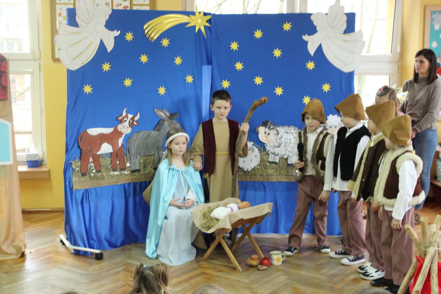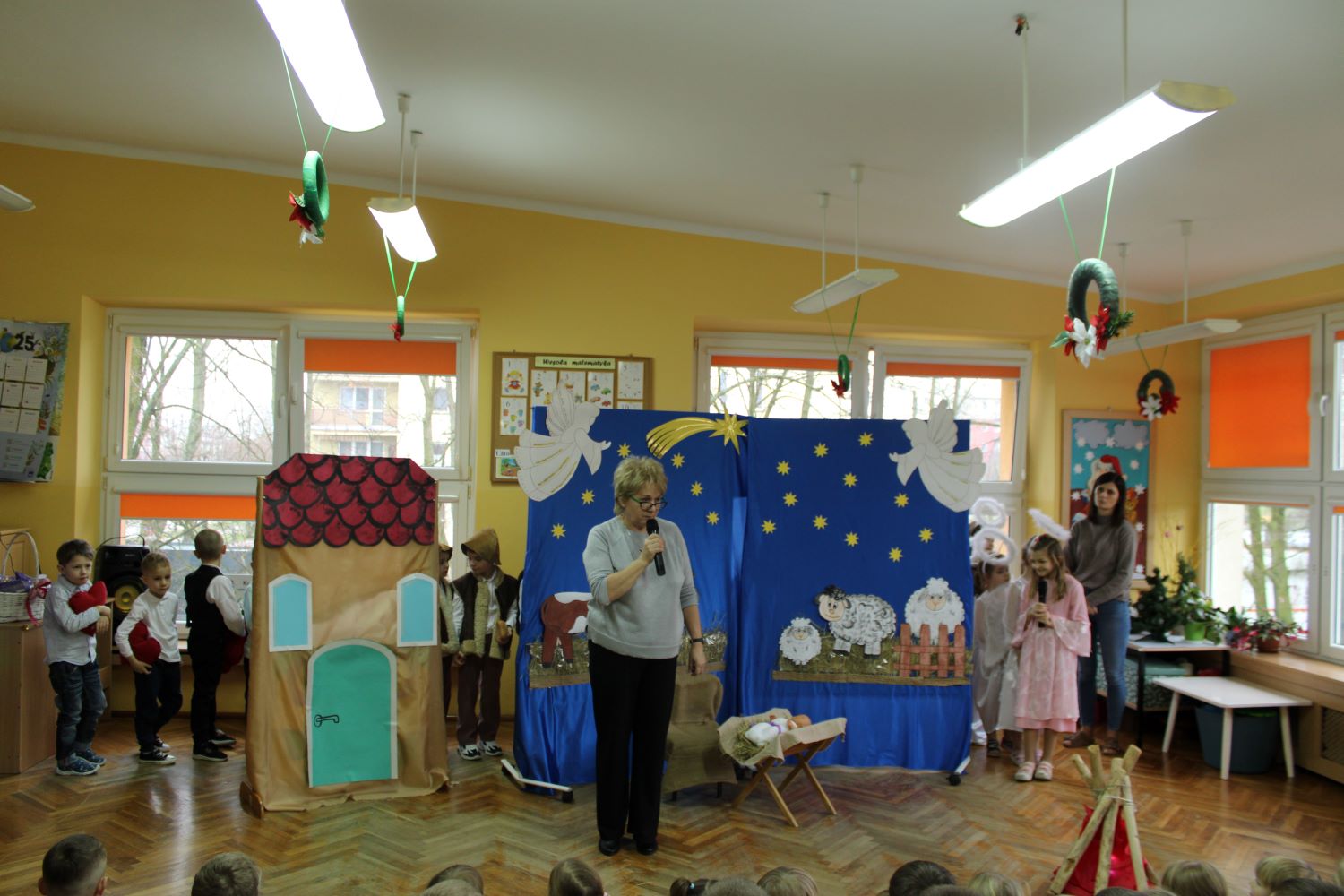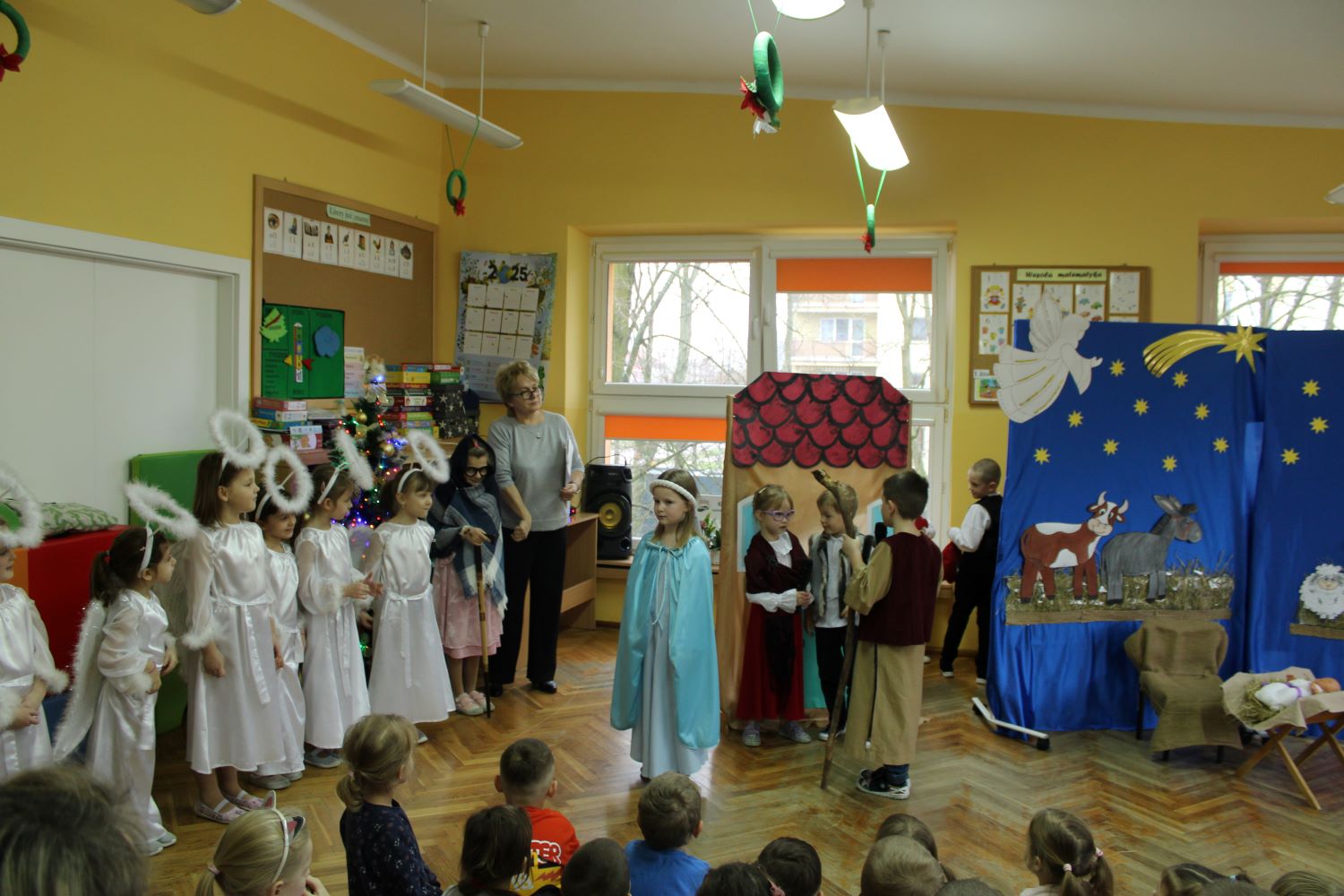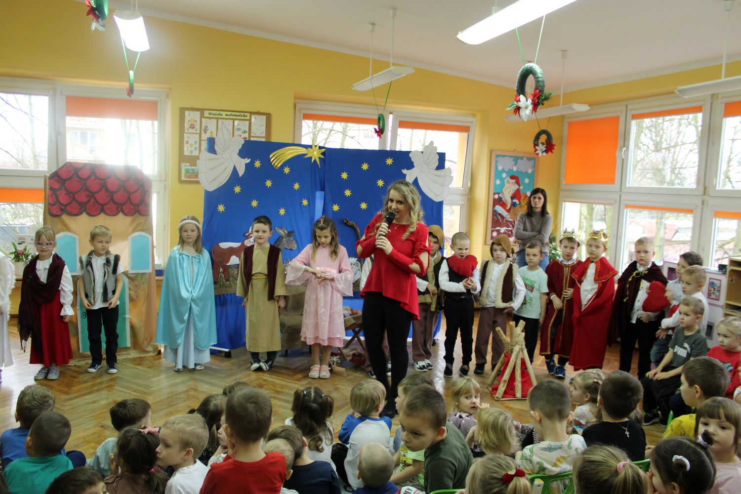 Dnia 15 grudnia okazji zbliżających się Świat Bożego Narodzenia dzieci z grupy „Misiaczki” wystawiły Jasełkę pt. „W Betlejem, w Betlejem wielka radość się dzieje”. Zaproszeni pracownicy przedszkola oraz przedszkolaki z zainteresowaniem śledziły przedstawioną przez małych aktorów historię narodzin Jezusa przeplataną kolędami, pastorałkami oraz tańcem aniołów i wspólnymi życzeniami. Występ Misiaczków wprowadził wszystkich w świąteczną atmosferę i został nagrodzony gromkimi brawami. Kończąc miłe spotkanie Pani Dyrektor Zofia Molenda - Kimla złożyła wszystkim zgromadzonym serdeczne życzenia i obdarowała dzieci słodką niespodzianką.