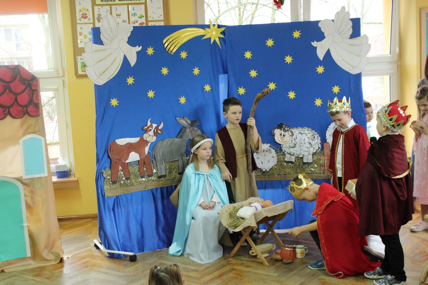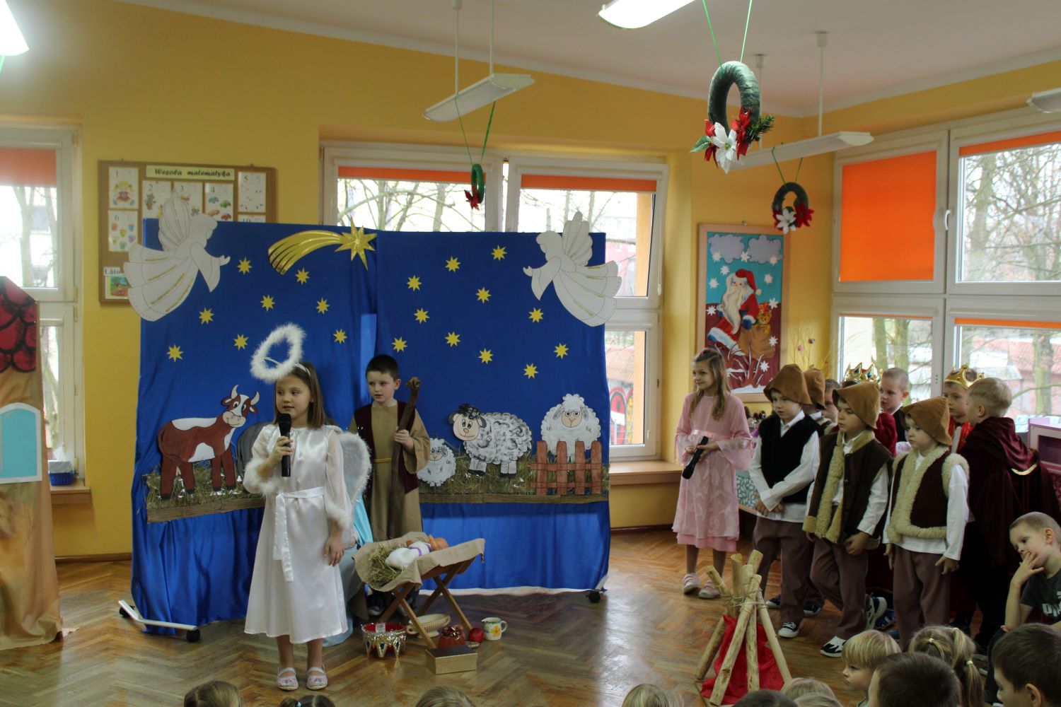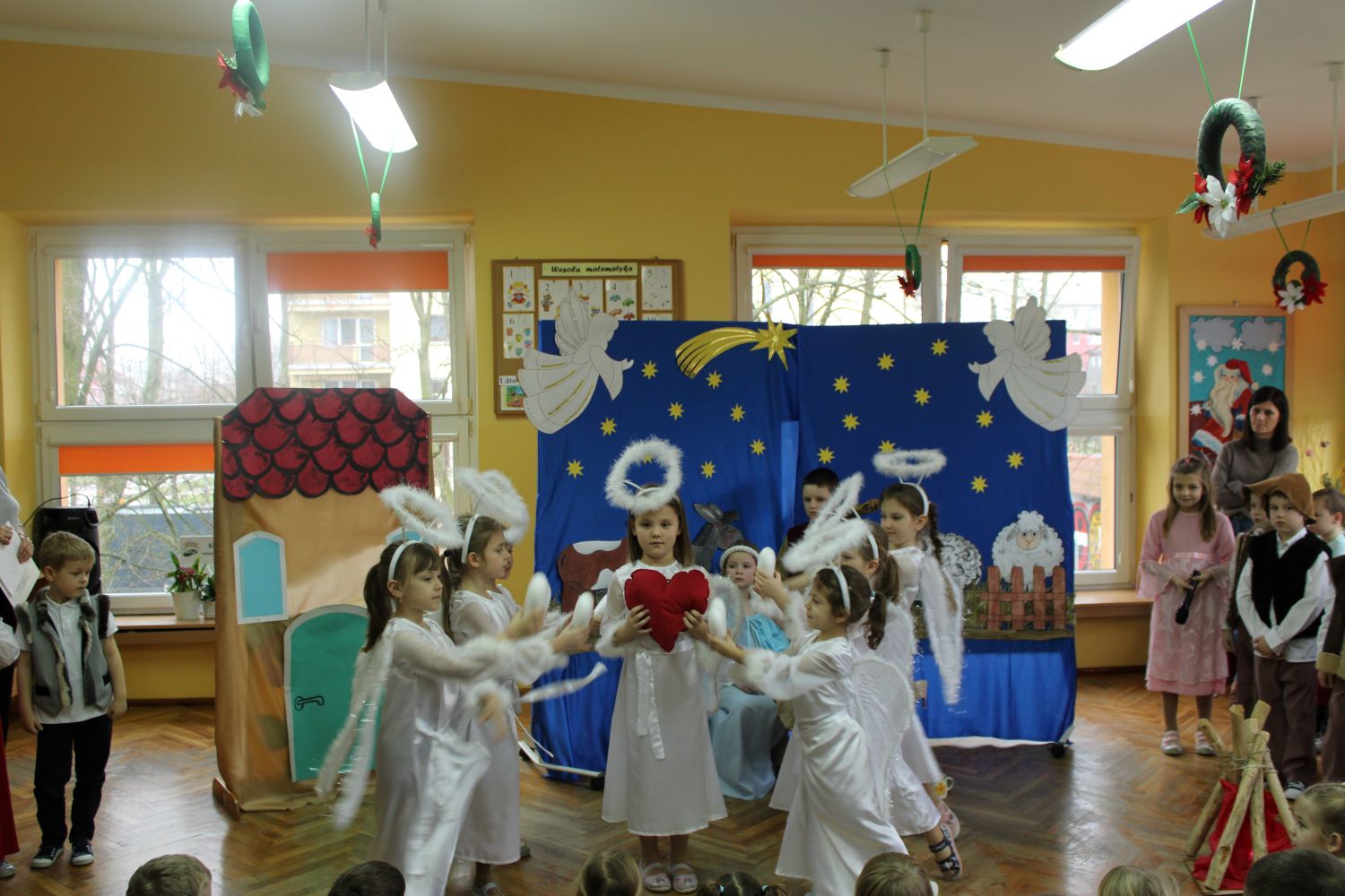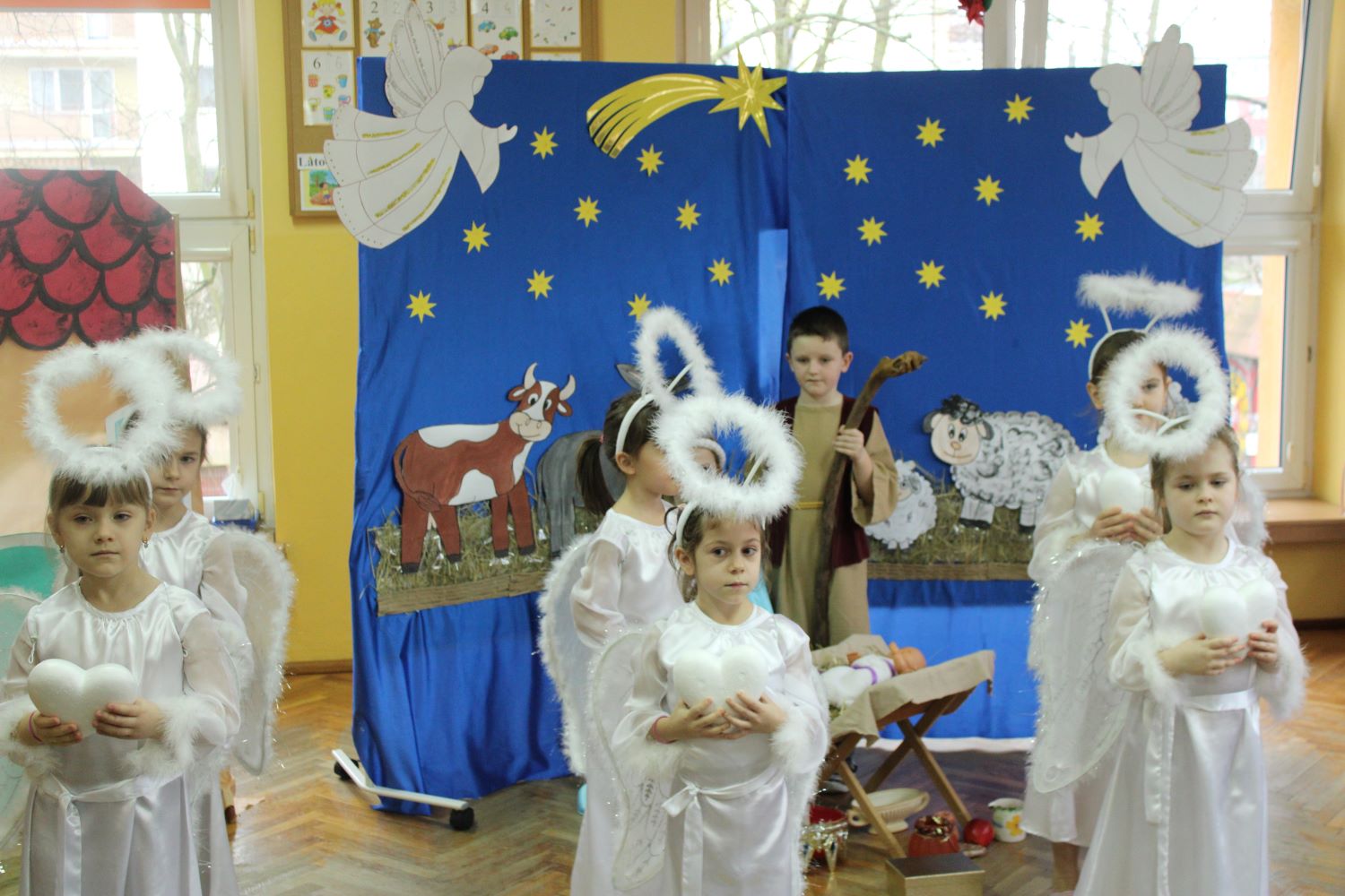 Dnia 15 grudnia okazji zbliżających się Świat Bożego Narodzenia dzieci z grupy „Misiaczki” wystawiły Jasełkę pt. „W Betlejem, w Betlejem wielka radość się dzieje”. Zaproszeni pracownicy przedszkola oraz przedszkolaki z zainteresowaniem śledziły przedstawioną przez małych aktorów historię narodzin Jezusa przeplataną kolędami, pastorałkami oraz tańcem aniołów i wspólnymi życzeniami. Występ Misiaczków wprowadził wszystkich w świąteczną atmosferę i został nagrodzony gromkimi brawami. Kończąc miłe spotkanie Pani Dyrektor Zofia Molenda - Kimla złożyła wszystkim zgromadzonym serdeczne życzenia i obdarowała dzieci słodką niespodzianką.