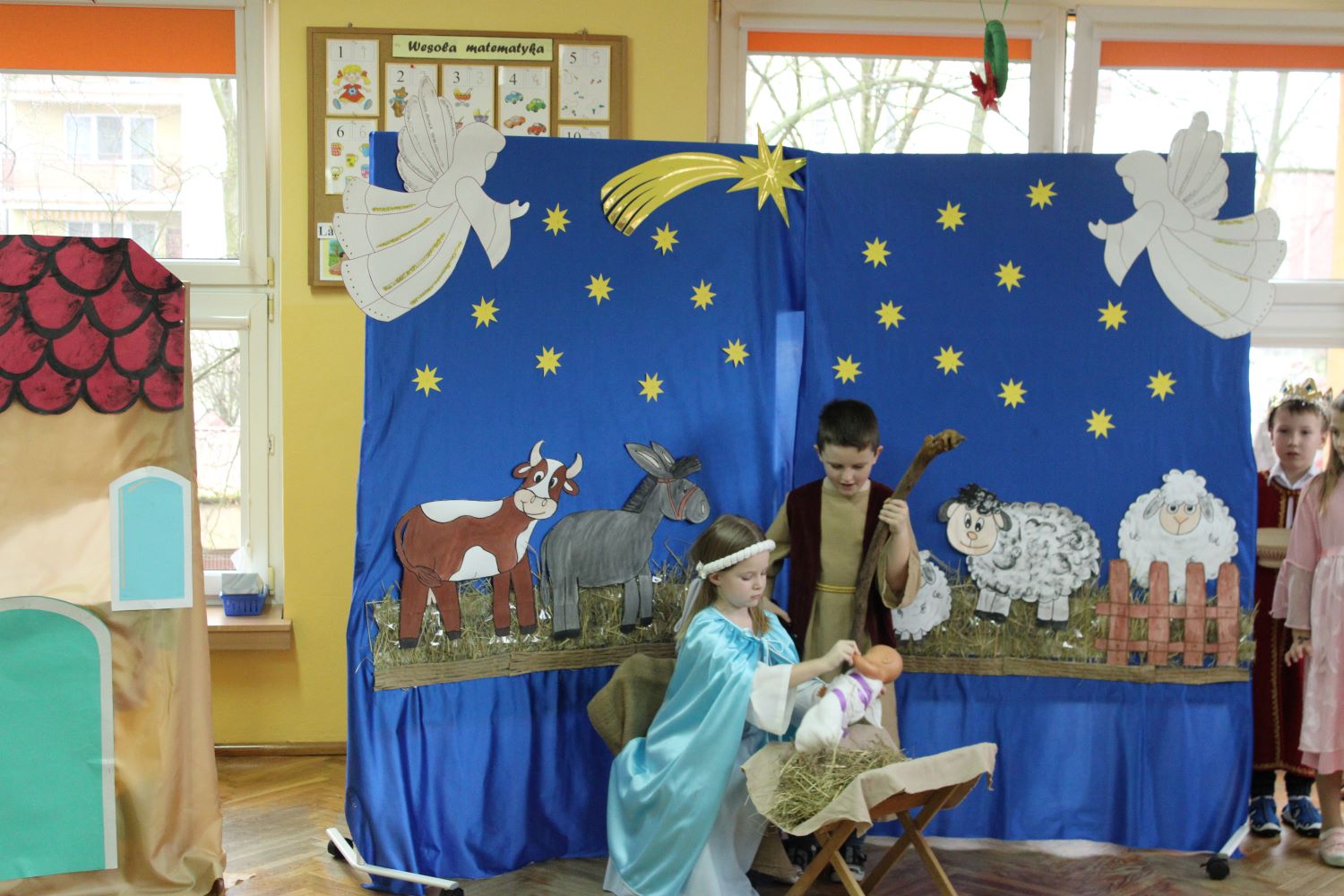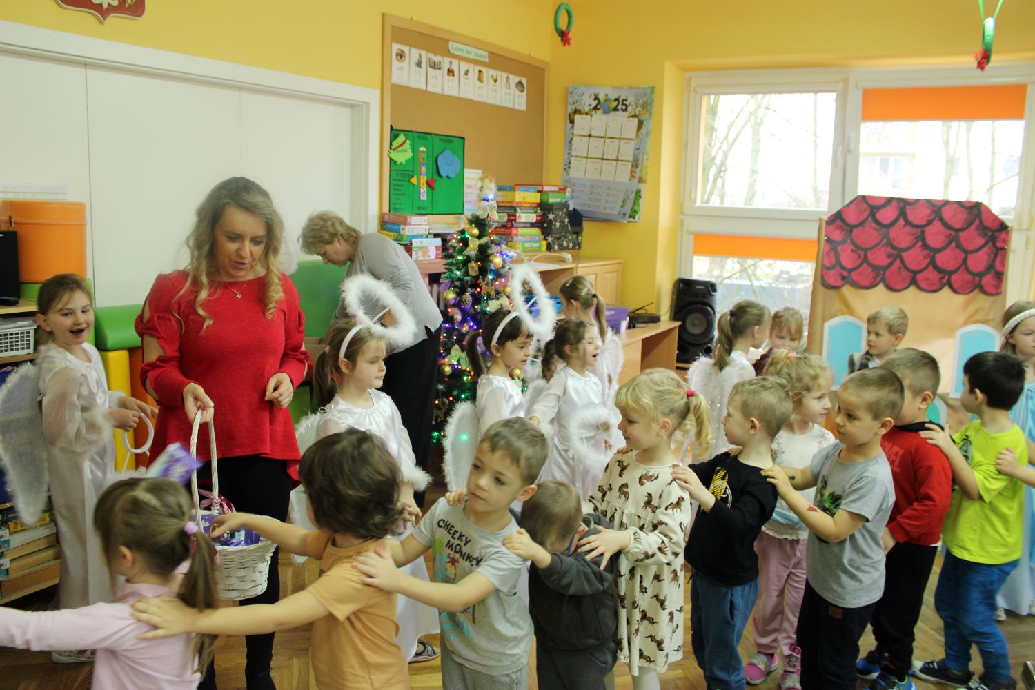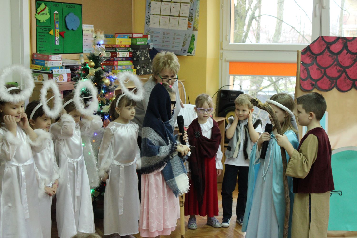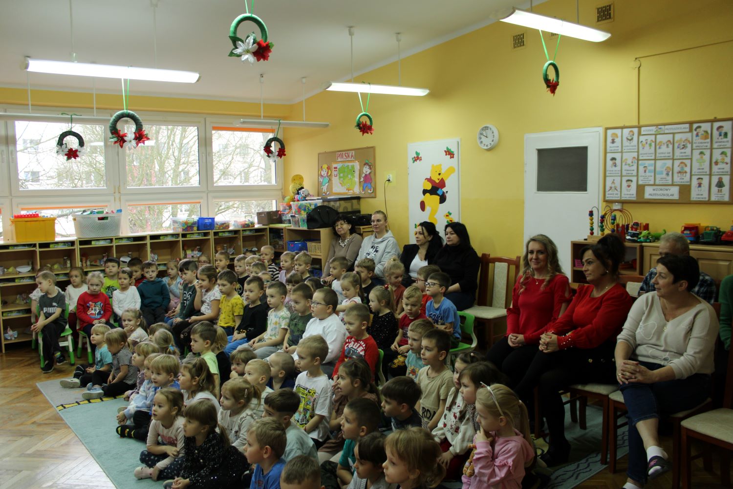 Dnia 15 grudnia okazji zbliżających się Świat Bożego Narodzenia dzieci z grupy „Misiaczki” wystawiły Jasełkę pt. „W Betlejem, w Betlejem wielka radość się dzieje”. Zaproszeni pracownicy przedszkola oraz przedszkolaki z zainteresowaniem śledziły przedstawioną przez małych aktorów historię narodzin Jezusa przeplataną kolędami, pastorałkami oraz tańcem aniołów i wspólnymi życzeniami. Występ Misiaczków wprowadził wszystkich w świąteczną atmosferę i został nagrodzony gromkimi brawami. Kończąc miłe spotkanie Pani Dyrektor Zofia Molenda - Kimla złożyła wszystkim zgromadzonym serdeczne życzenia i obdarowała dzieci słodką niespodzianką.