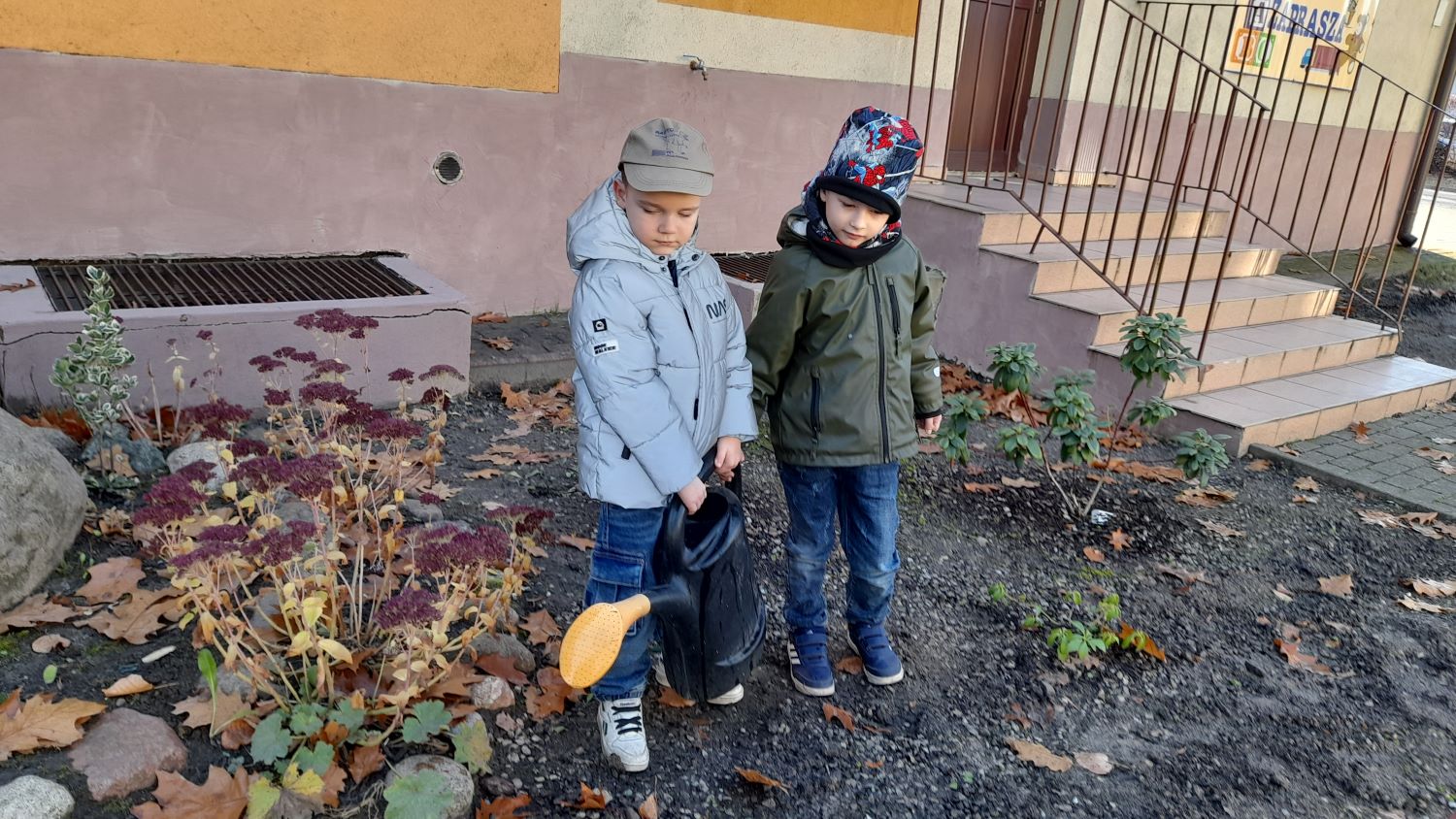 Upiększając ogród przedszkolny grupa „Misiaczków” po nadzorem Pani Ani sadziła cebulki tulipanów, ofiarowanych przez rodziców Wojtka. Efekty pracy dzieci będziemy mogli oglądać wiosną, kiedy kwiaty zakwitną.