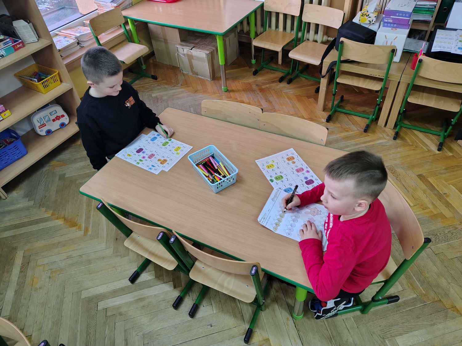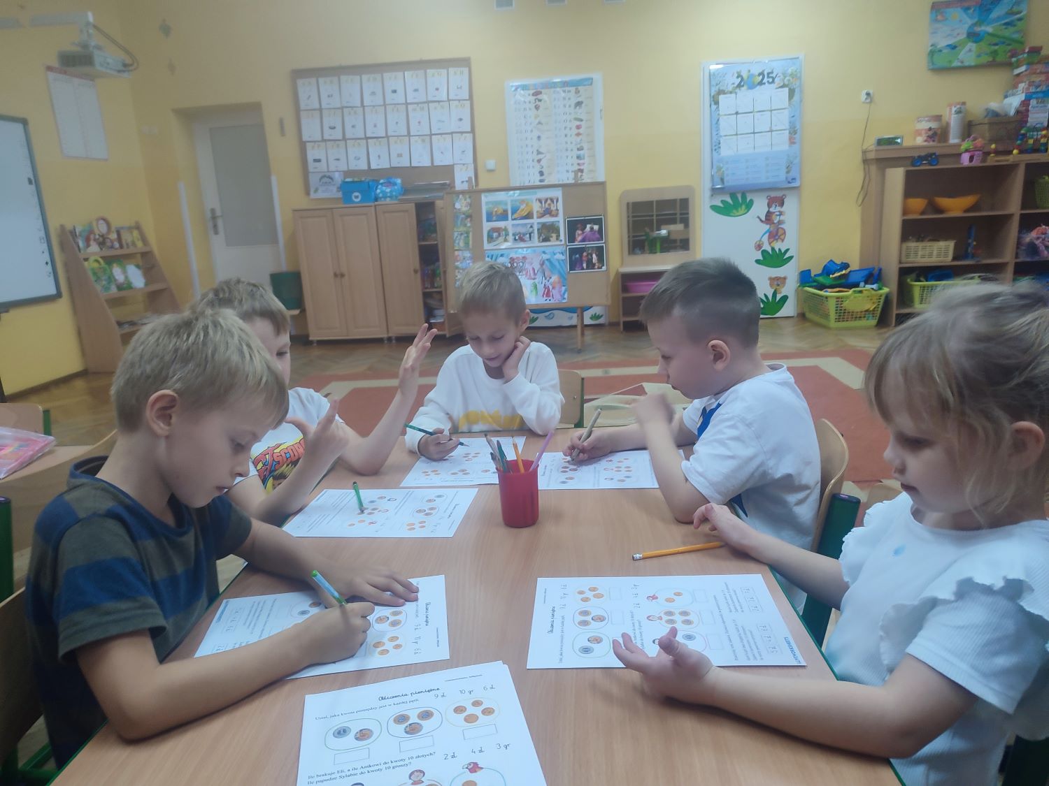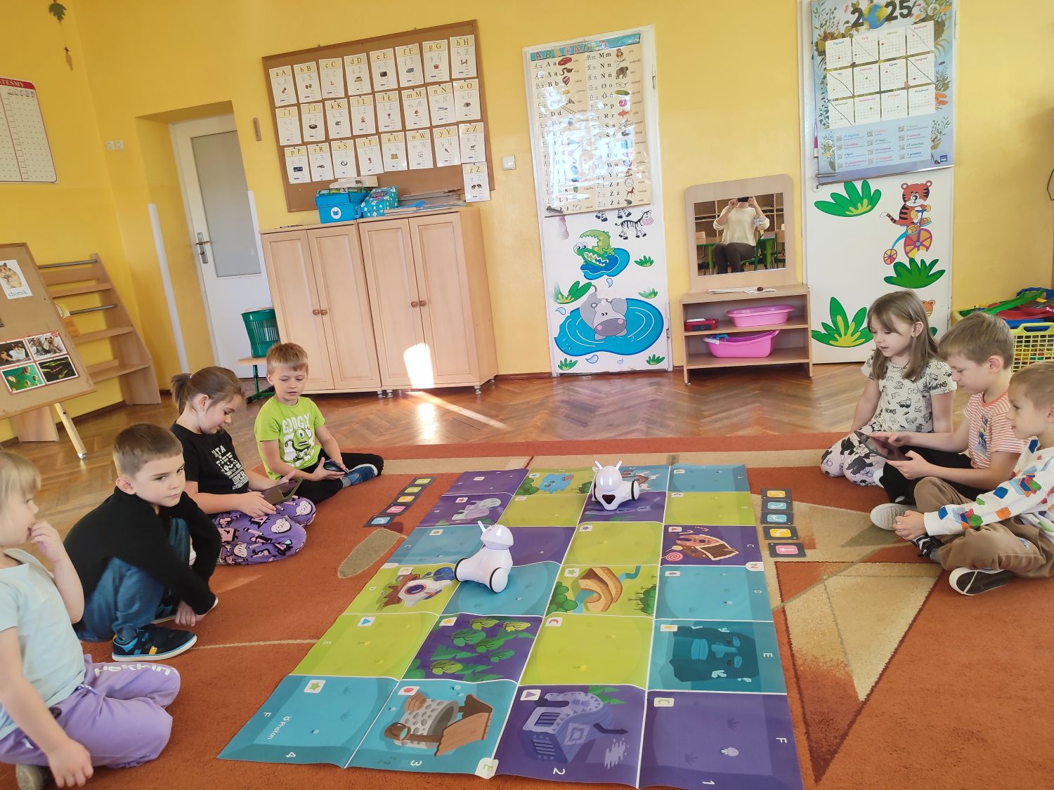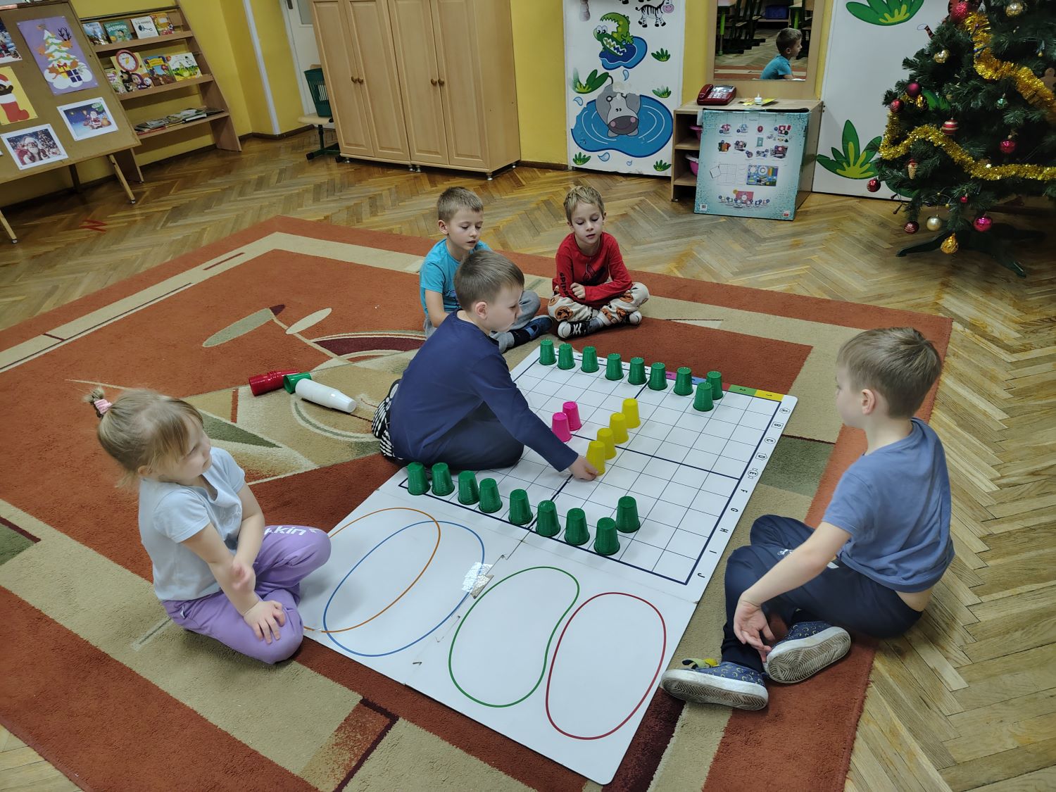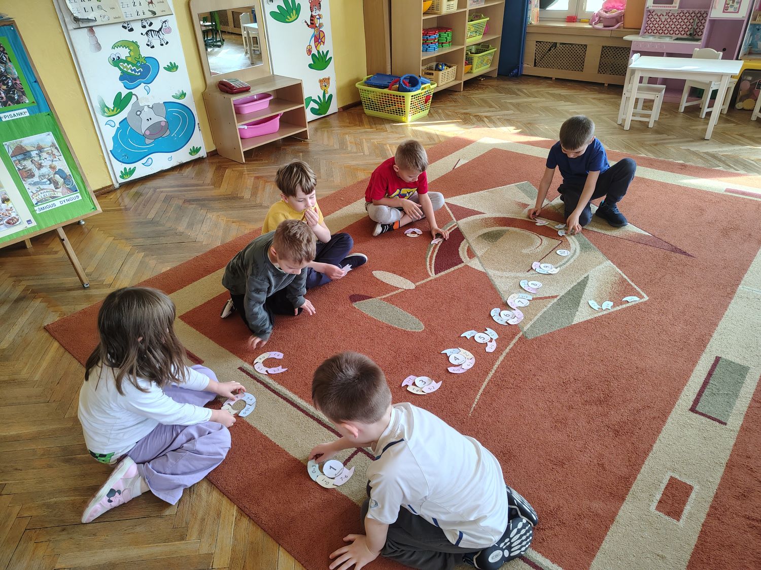 W bieżącym roku szkolnym swoją działalność wznowiło koło matematyczne „Przyjaciele matematyki”. Zajęcia prowadzi nauczycielka Ewelina Sychniak- Porzybut, w każdy poniedziałek od 15.30 do 16.00. Kółko przeznaczone jest dla dzieci 6 letnich zdolnych, zainteresowanych matematyką. Uczestniczą w nim dzieci z grup „Misiaczki ” i „Żabki”. Celem koła jest między innymi stwarzanie warunków do wszechstronnego i harmonijnego rozwoju osobowości, wspieranie dzieci w rozwoju uzdolnień, kształtowanie wyobraźni dziecięcej, rozbudzenie wiary dziecka we własne możliwości, stymulowanie ich rozwoju oraz twórczego i logicznego myślenia, wzbogacenie wiedzy matematycznej. Koło matematyczne stanowi rozszerzenie do programu przedszkolnego, na którym bazują nauczyciele. Działania koła to ćwiczenia, zadania, zabawy matematyczne, zabawy badawcze, gry matematyczne odtwarzane na tablicy interaktywnej, zadania z robotem edukacyjnym. Program koła jest zgodny z podstawą programową wychowania przedszkolnego zawartą w rozporządzeniu Ministra Edukacji Narodowej z dnia 14 lutego 2017 roku. Koło matematyczne stanowi rozszerzenie do programu przedszkolnego, na którym bazują nauczyciele. Ma charakter otwarty – jego treści mogą być rozszerzane w zależności od zainteresowań dzieci.