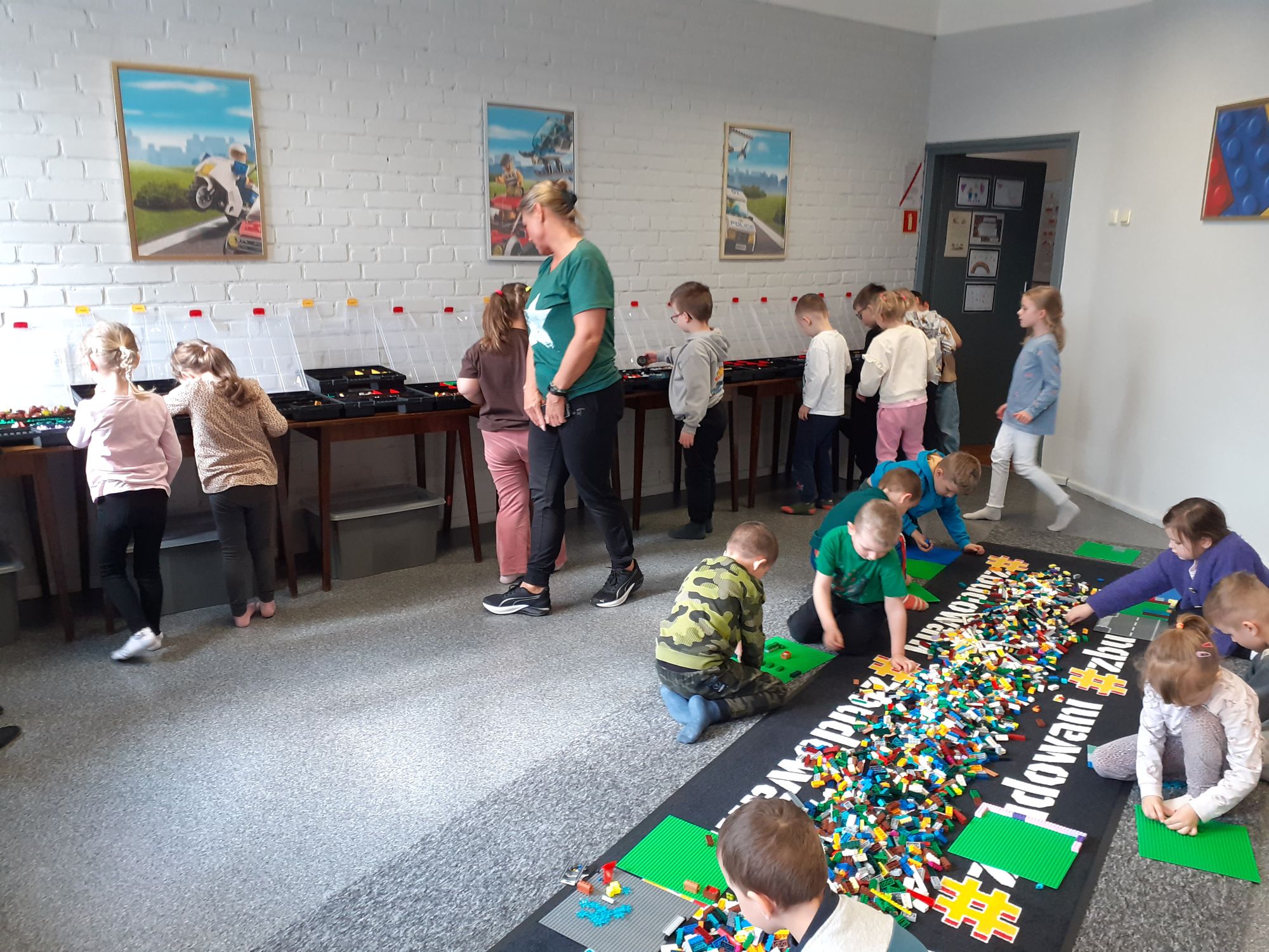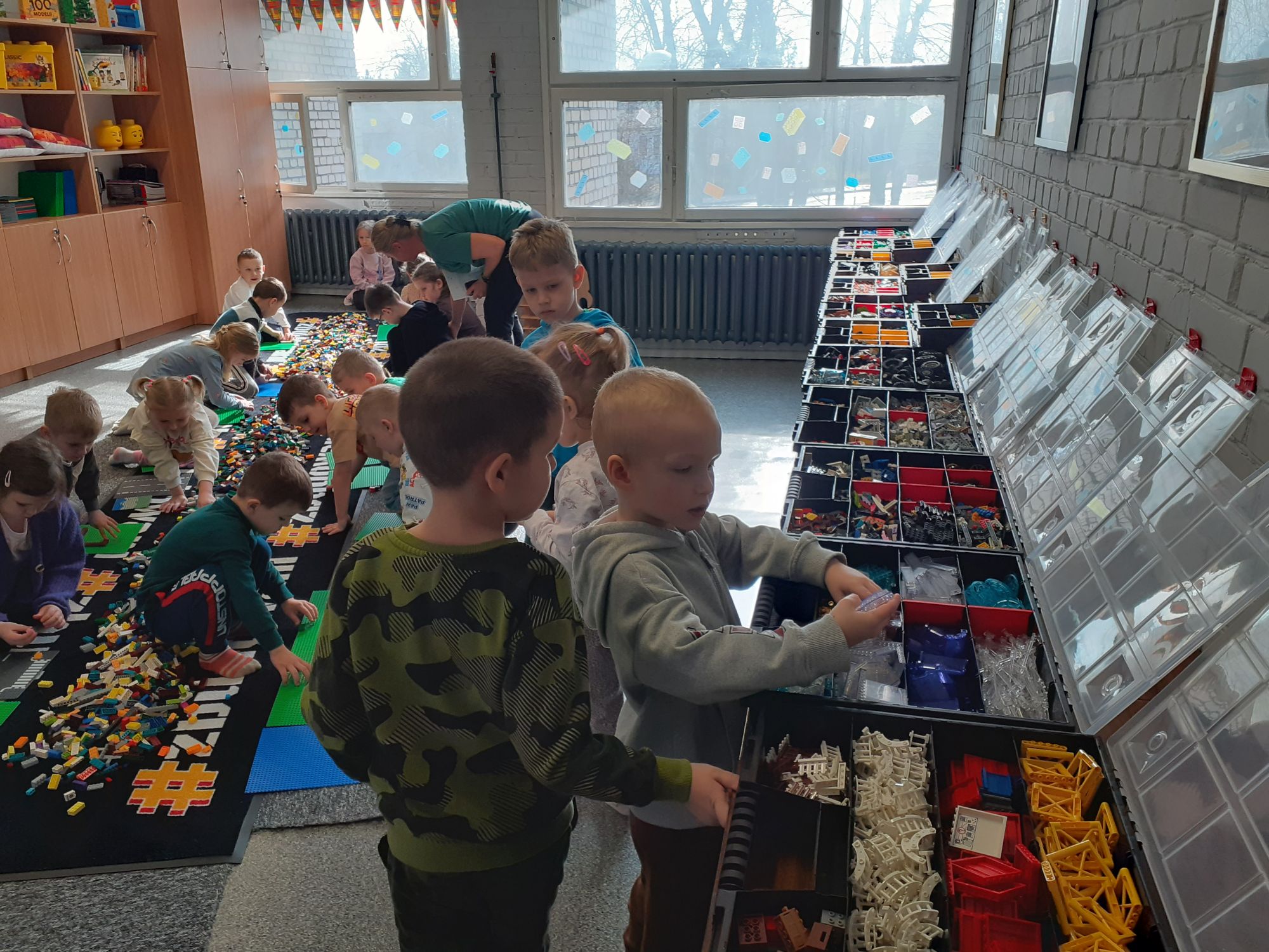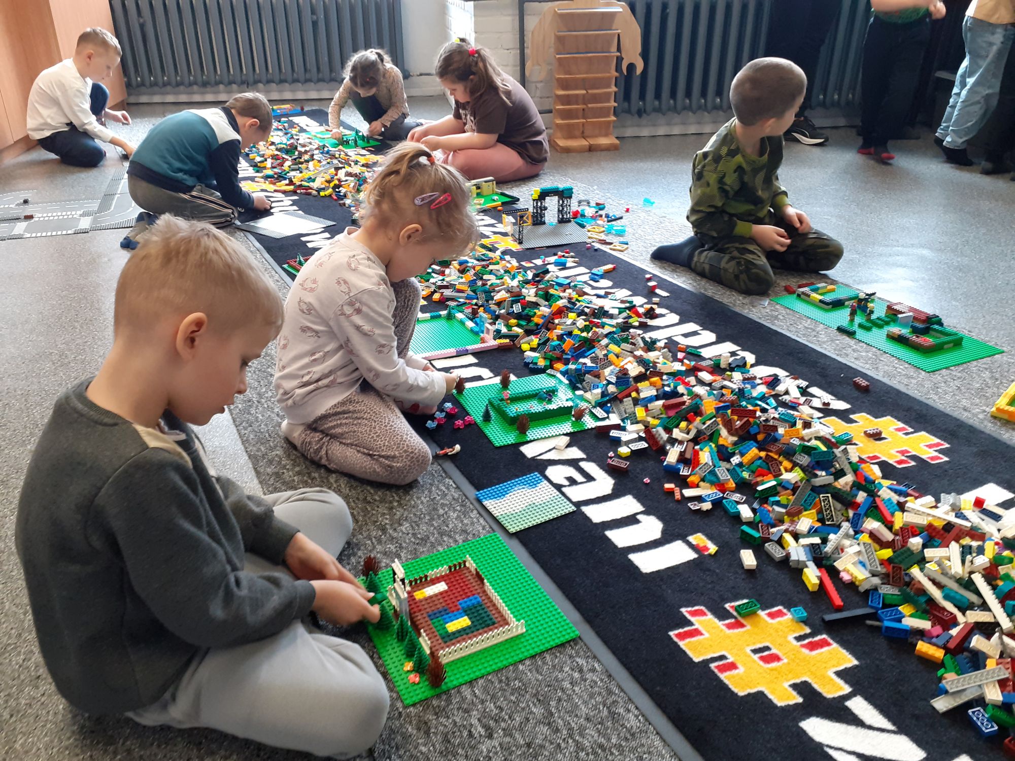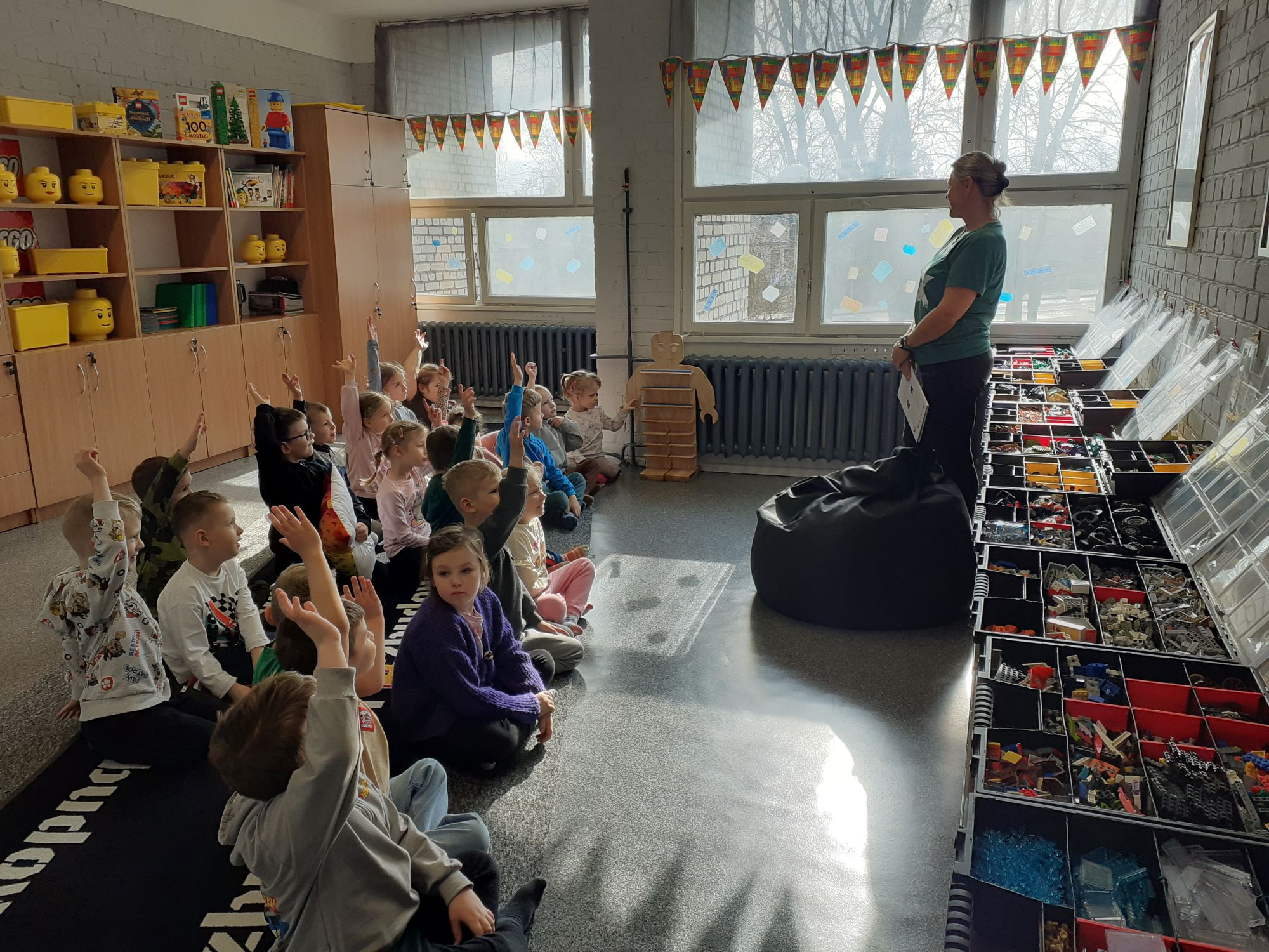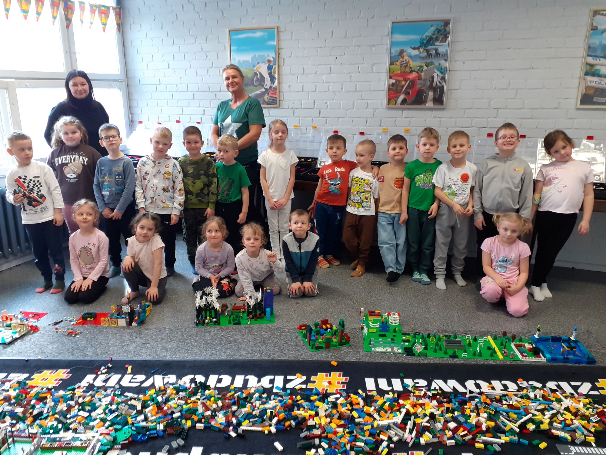17.03.2026 r. - „Krasnoludki” były bardzo podekscytowane wiadomością o planowanym wyjściu na warsztaty kreatywne z klockami LEGO pt. # zbudowani. Przedszkolaki zostały zaproszone przez autorkę tego projektu – panią Magdalenę Płosę z Biblioteki Wojskowej 32 BLT. Spotkanie w Klubie Garnizonowym rozpoczęło się od opowieści o realizacji własnych pomysłów, przeczytanej przez panią Magdę. Miała być ona inspiracją dla małych budowniczych w konstrukcyjnym szaleństwie. Od ilości i różnorodności klocków kręciło się w głowie. Pod czujnym okiem pani Magdaleny „Krasnoludki” ochoczo zabrały się do pracy. Przy wznoszeniu swoich konstrukcji dzieciaki wykazały się kreatywnością i zręcznością manualną. Wszystkie budowle były ciekawe, ale szczególne uznanie pani Magdy zdobyła Maja K., która otrzymała w nagrodę małą figurkę z klocków LEGO. Dzieci niechętnie opuszczały to szczególne, pełne inspiracji miejsce. Każde otrzymało pożegnalnego cukierka i zaproszenie na indywidualne wizyty w pracowni LEGO. Dziękujemy!