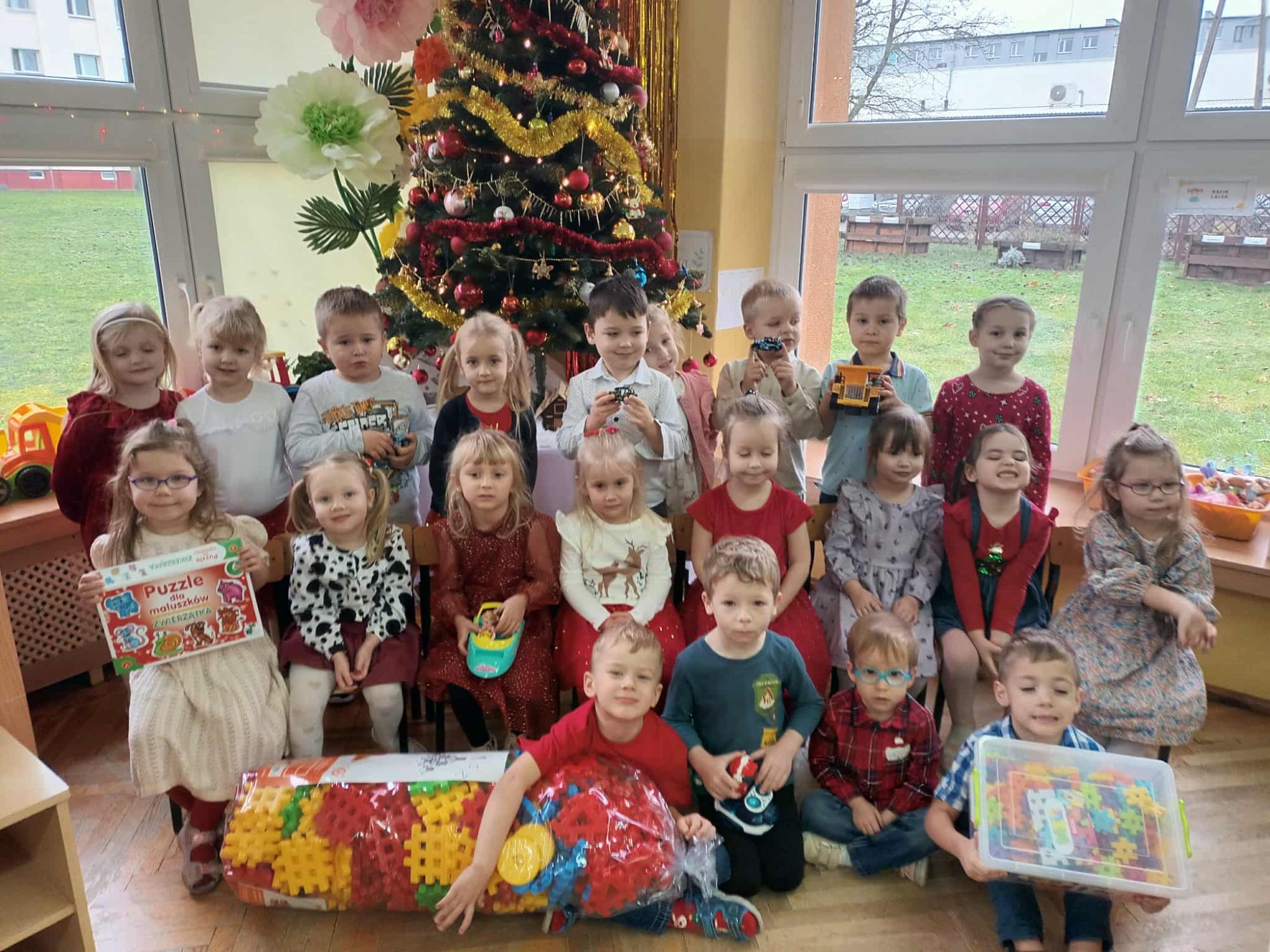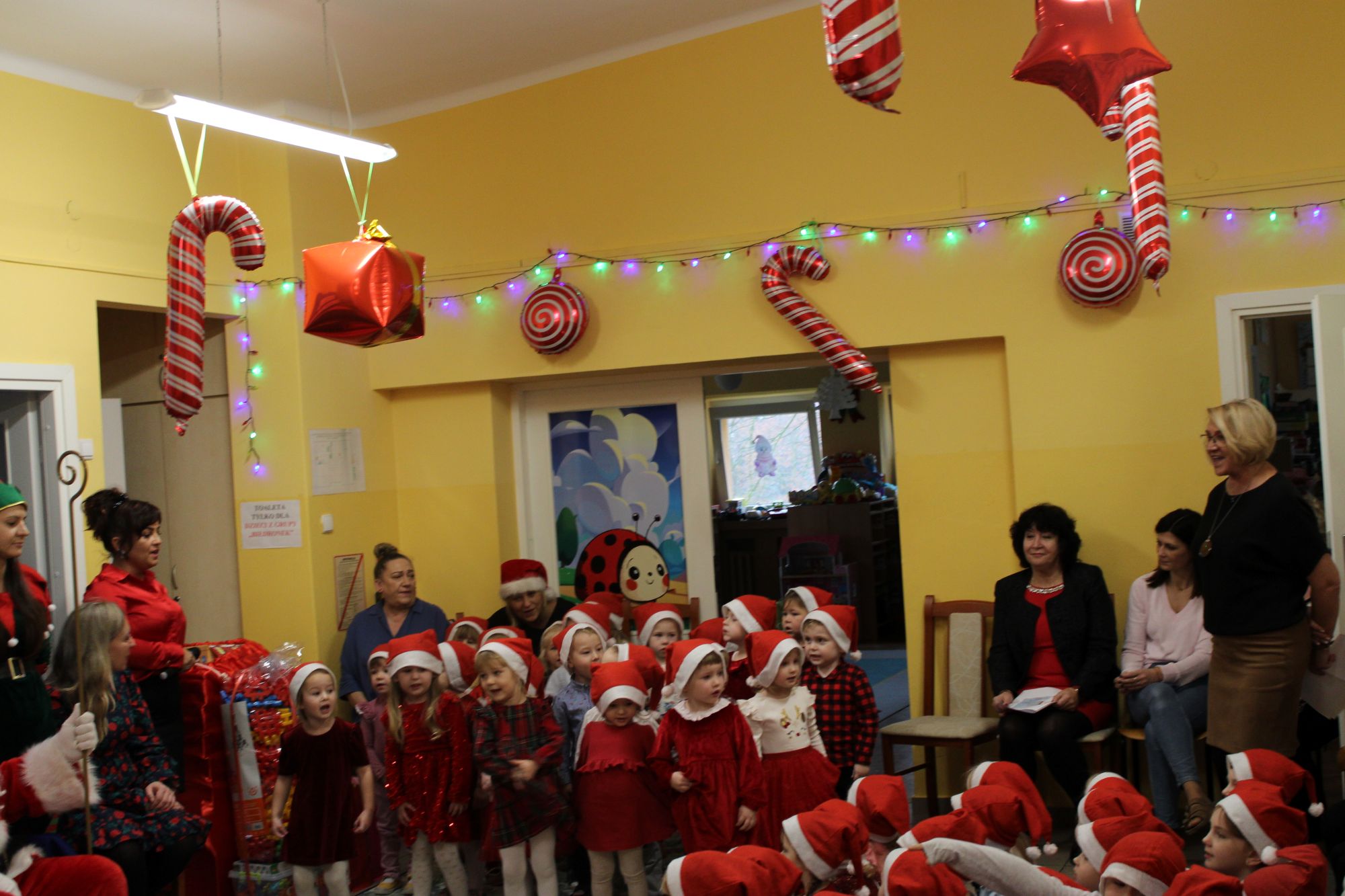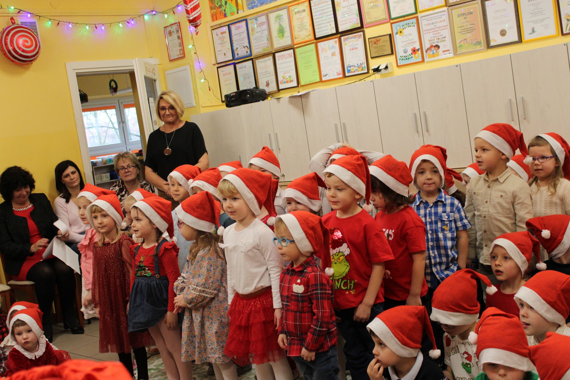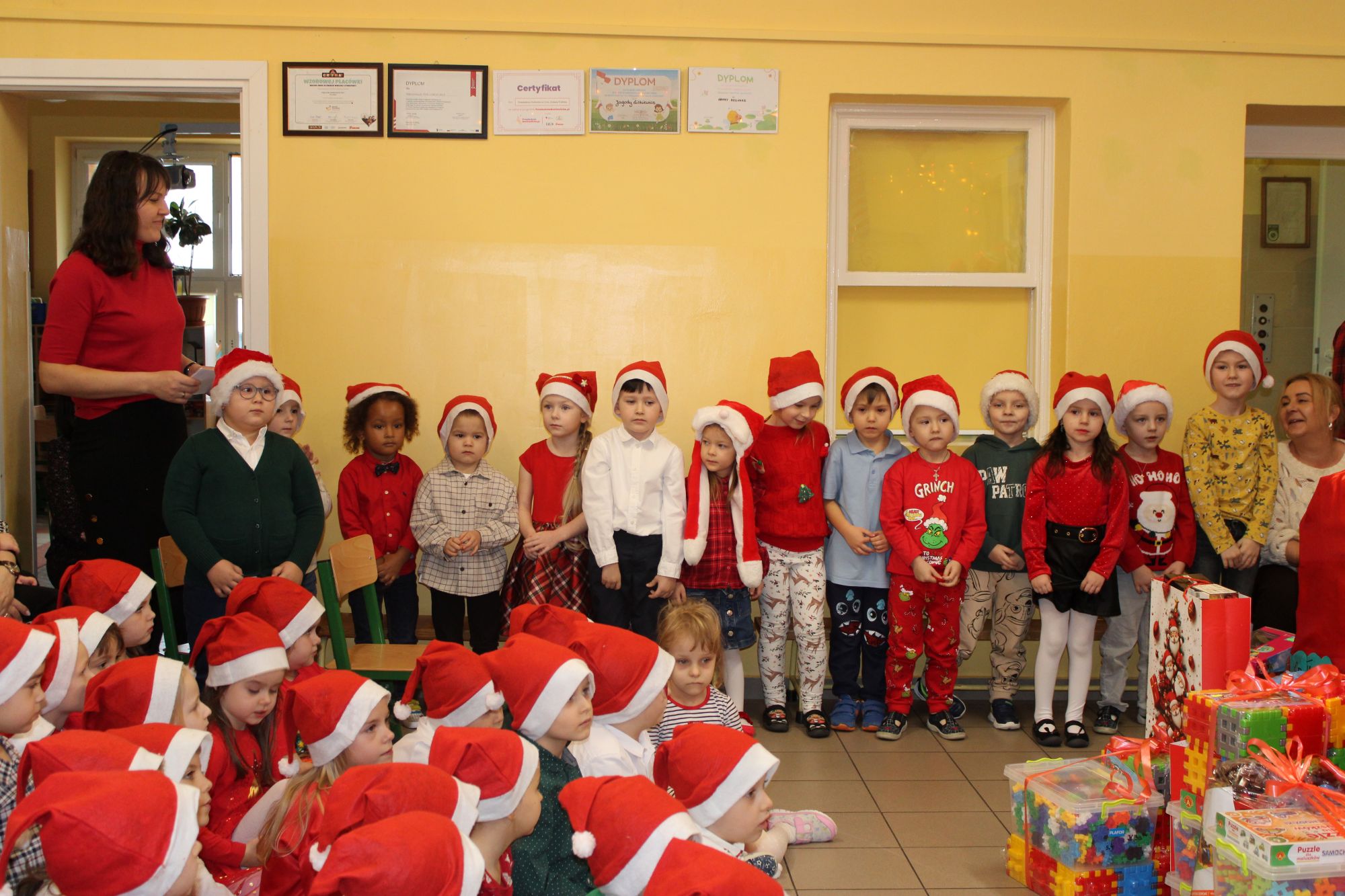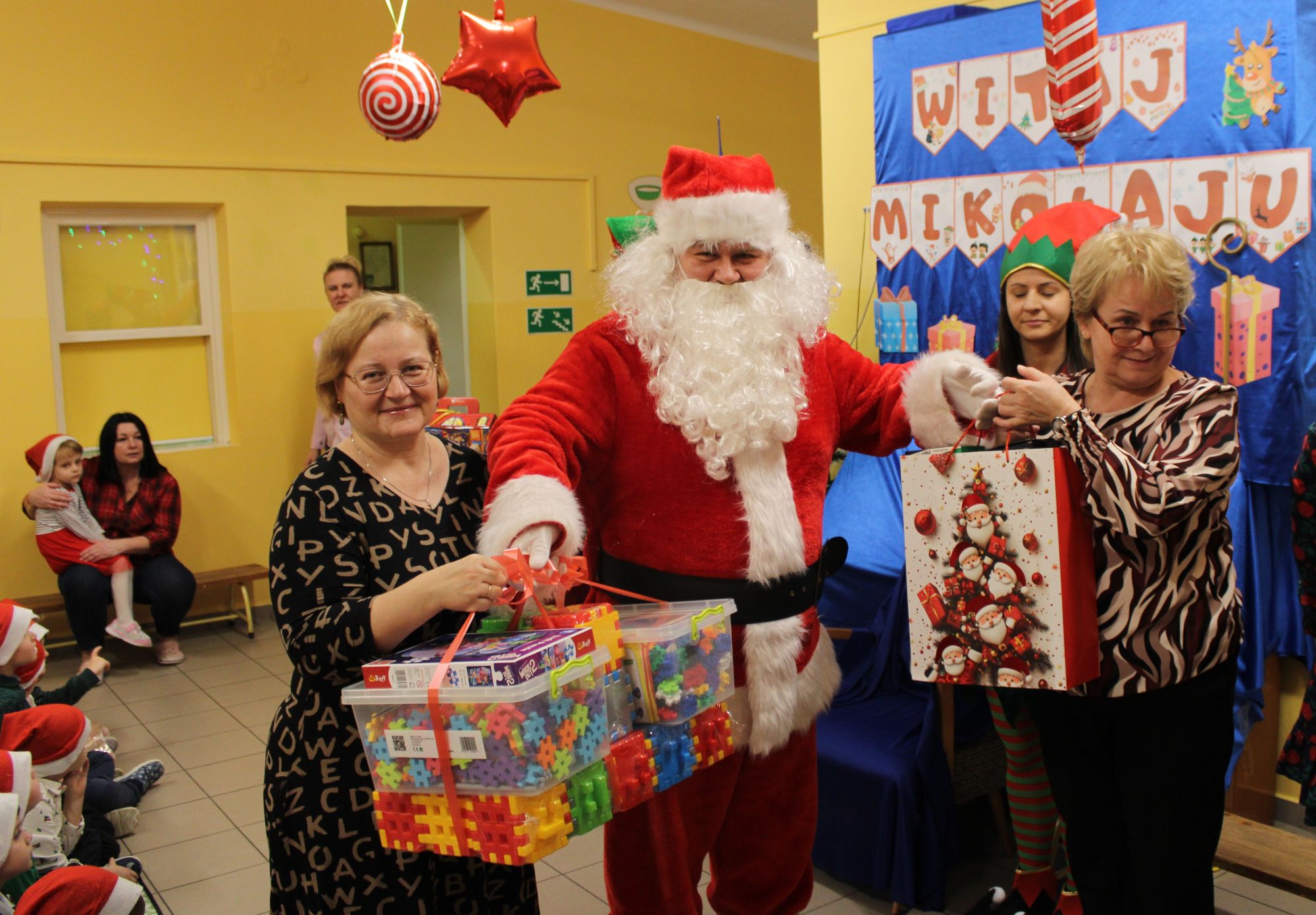 Grudzień to wyjątkowy, magiczny miesiąc, który wszystkim dzieciom kojarzy się z wyczekiwanymi odwiedzinami niezwykłego gościa – Świętego Mikołaja. W piątek 5 grudnia przedszkolaki czekały na niego już od rana. Mikołaj nie zawiódł dzieci i nie kazał długo na siebie czekać. Rozpoznały go po czerwonym ubraniu, długiej brodzie, wąsach oraz czapce. Dzieci nasłuchiwały dźwięku dzwoneczków, które słychać było już z daleka. Jego widok oraz worki pełne prezentów sprawił milusińskim ogromną radość. Mikołaj pojawił się w towarzystwie dwóch przemiłych elfów. Nasz gość przywitał się z przedszkolakami, po czym usiadł wygodnie w fotelu, aby z uśmiechem i radością wysłuchać wierszyków i piosenek przygotowanych przez dzieci specjalnie dla niego. W pięknie udekorowanym holu, w magicznym klimacie kolorowych świateł, nie zabrakło też wspólnych pamiątkowych zdjęć. Święty Mikołaj widząc tak grzeczne dzieci, postanowił je nagrodzić i każdemu wręczył prezent. Przedszkolaki również pomyślały o naszych wyjątkowych gościach. Starszaki w podziękowaniu za wizytę przygotowały laurki życząc im dużo zdrowia, siły oraz aby nie zapomnieli nas odwiedzić za rok. Tego dnia niespodzianek nie było końca. Mikołaj podarował każdej grupie mnóstwo nowych zabawek do sal.