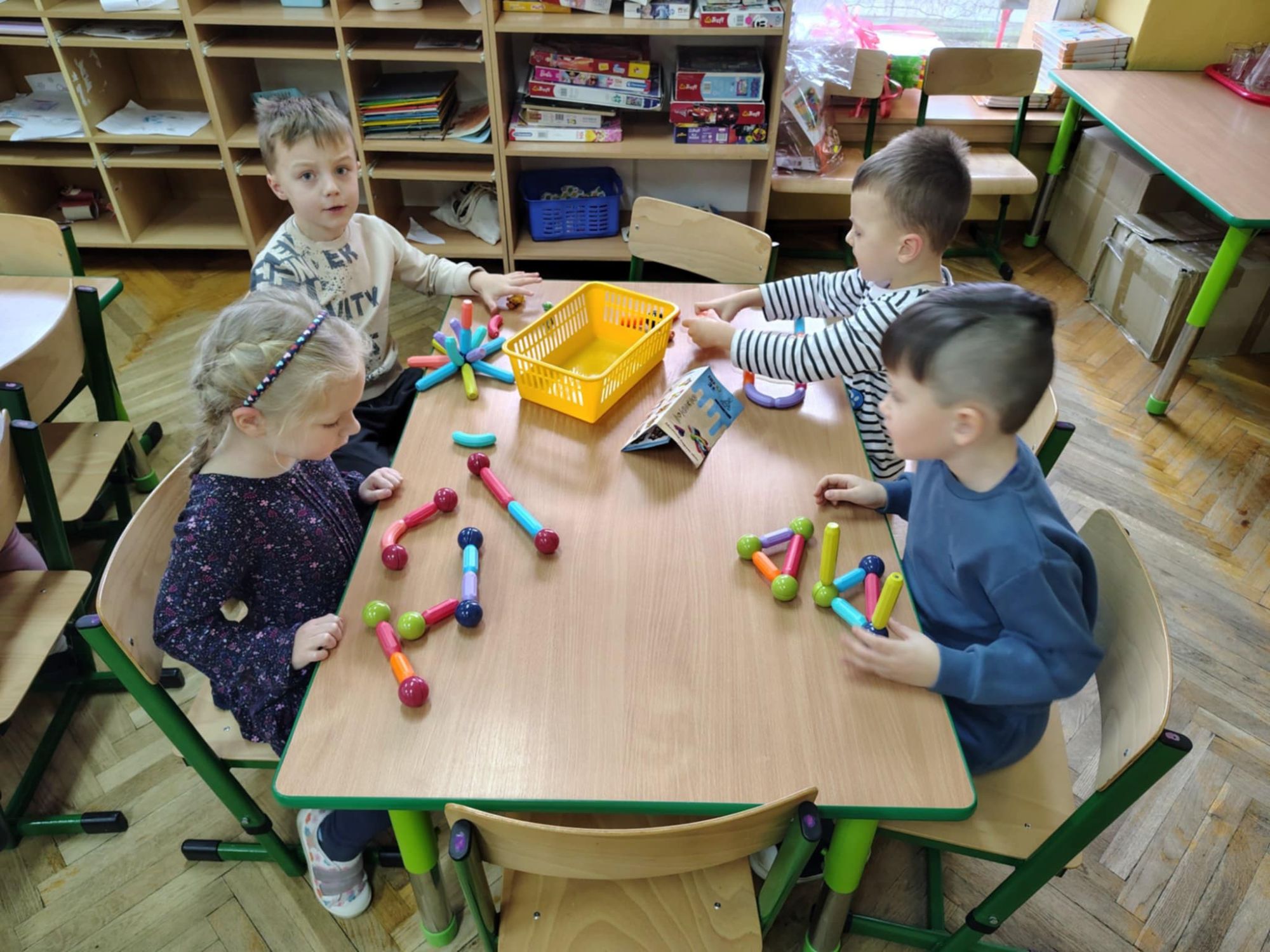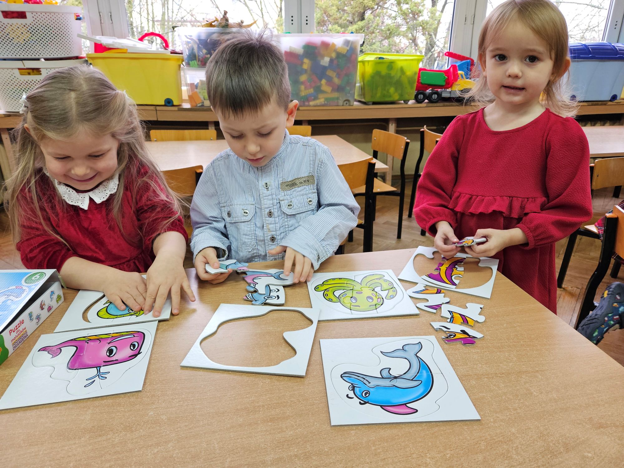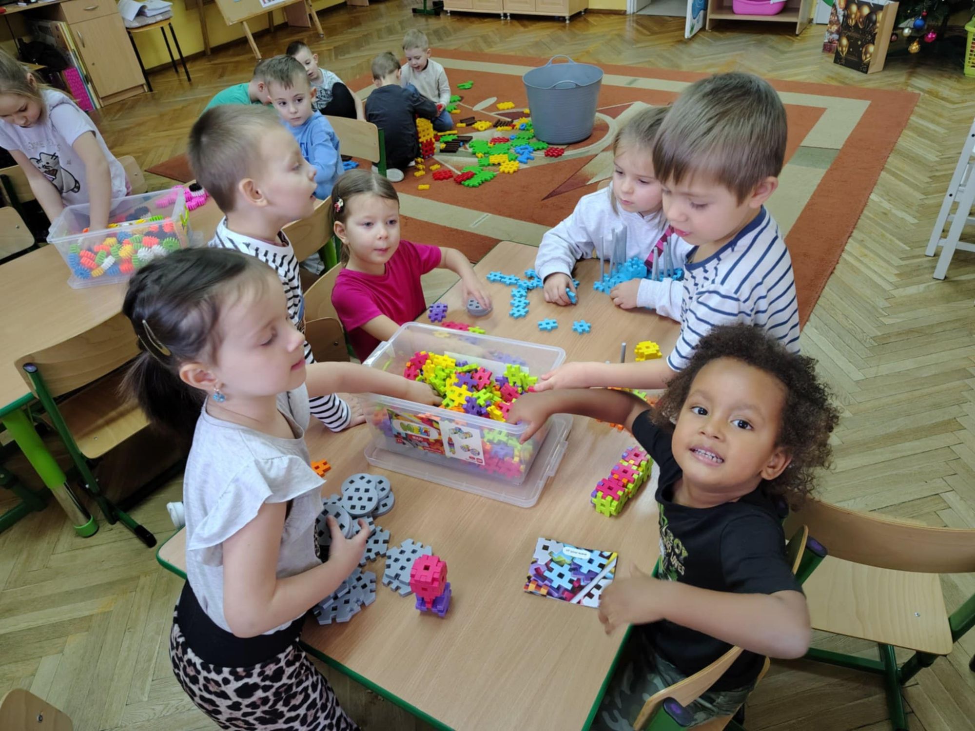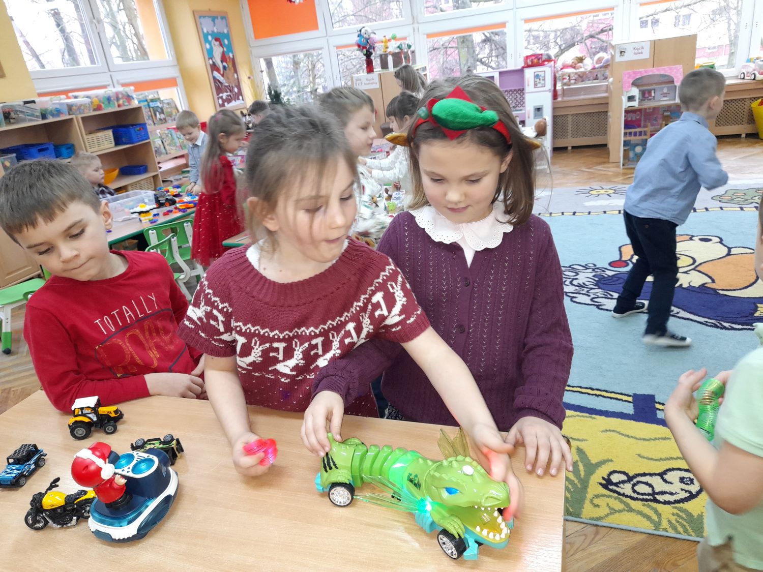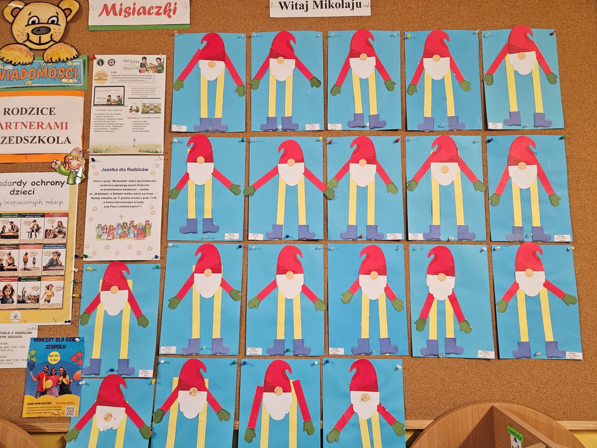 Grudzień to wyjątkowy, magiczny miesiąc, który wszystkim dzieciom kojarzy się z wyczekiwanymi odwiedzinami niezwykłego gościa – Świętego Mikołaja. W piątek 5 grudnia przedszkolaki czekały na niego już od rana. Mikołaj nie zawiódł dzieci i nie kazał długo na siebie czekać. Rozpoznały go po czerwonym ubraniu, długiej brodzie, wąsach oraz czapce. Dzieci nasłuchiwały dźwięku dzwoneczków, które słychać było już z daleka. Jego widok oraz worki pełne prezentów sprawił milusińskim ogromną radość. Mikołaj pojawił się w towarzystwie dwóch przemiłych elfów. Nasz gość przywitał się z przedszkolakami, po czym usiadł wygodnie w fotelu, aby z uśmiechem i radością wysłuchać wierszyków i piosenek przygotowanych przez dzieci specjalnie dla niego. W pięknie udekorowanym holu, w magicznym klimacie kolorowych świateł, nie zabrakło też wspólnych pamiątkowych zdjęć. Święty Mikołaj widząc tak grzeczne dzieci, postanowił je nagrodzić i każdemu wręczył prezent. Przedszkolaki również pomyślały o naszych wyjątkowych gościach. Starszaki w podziękowaniu za wizytę przygotowały laurki życząc im dużo zdrowia, siły oraz aby nie zapomnieli nas odwiedzić za rok. Tego dnia niespodzianek nie było końca. Mikołaj podarował każdej grupie mnóstwo nowych zabawek do sal.