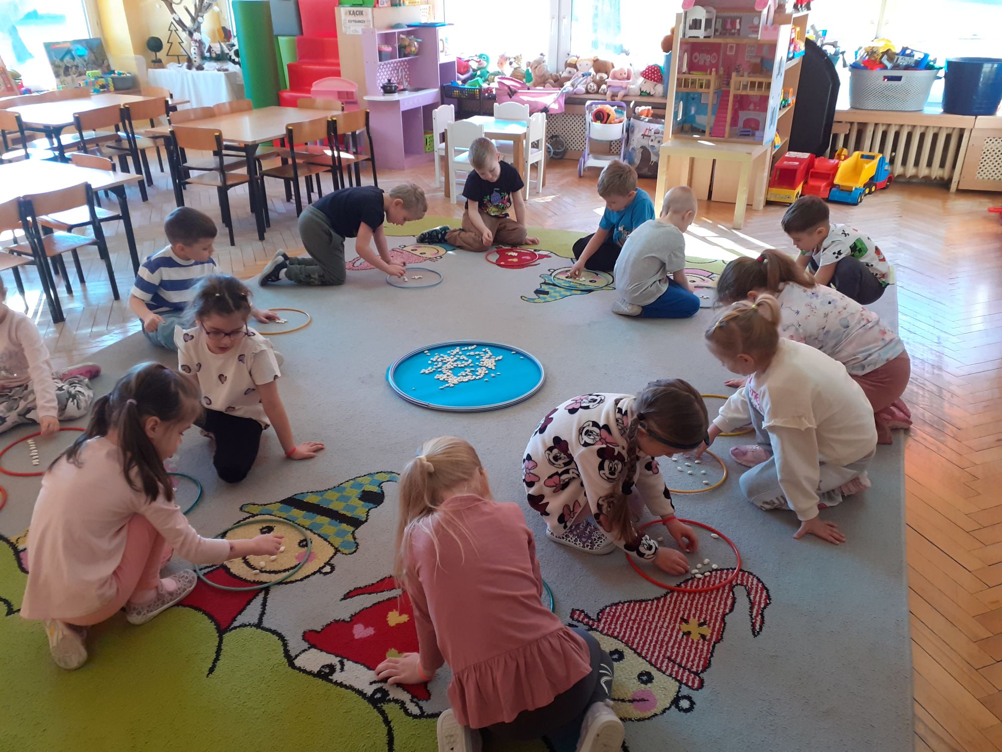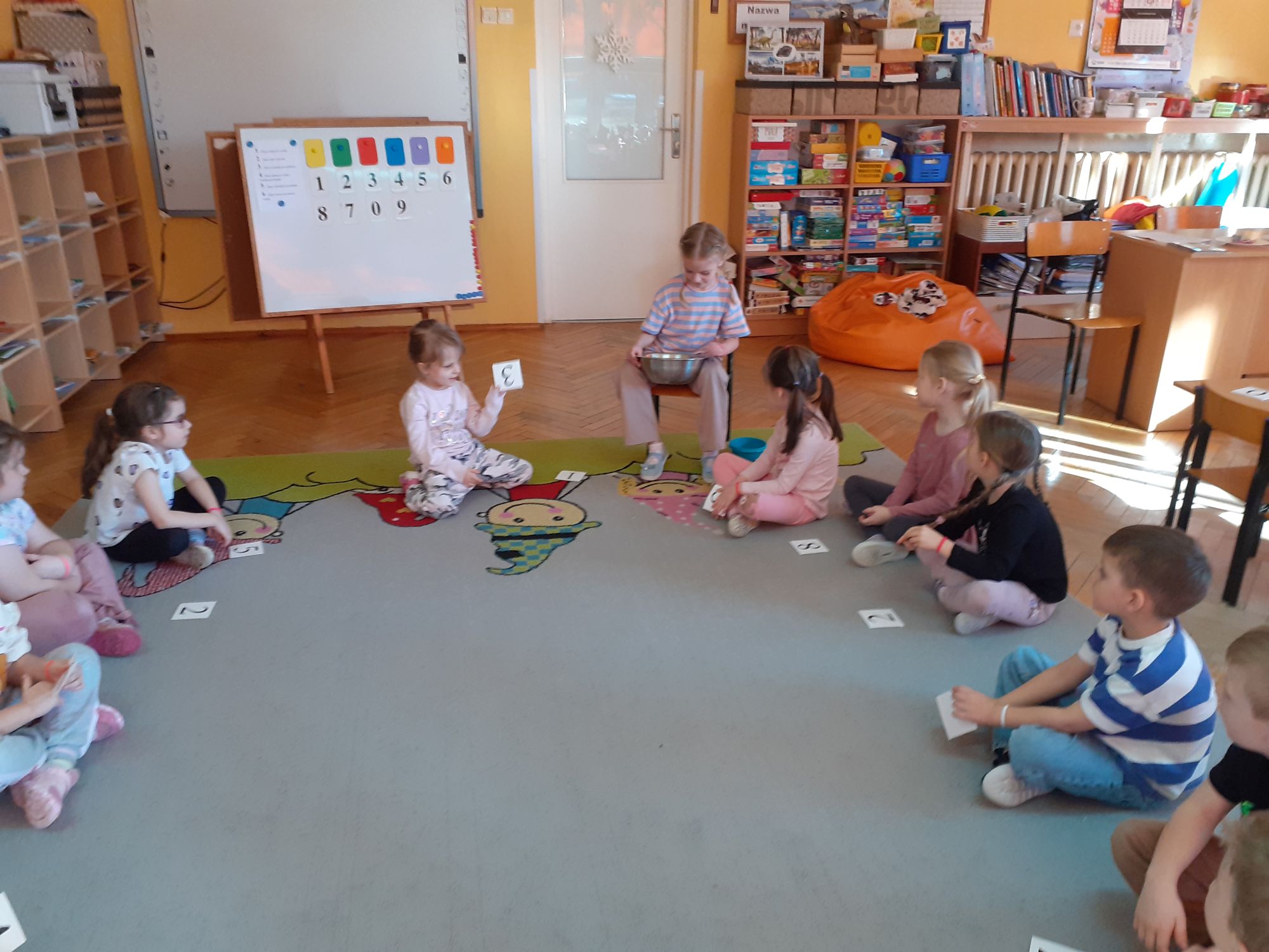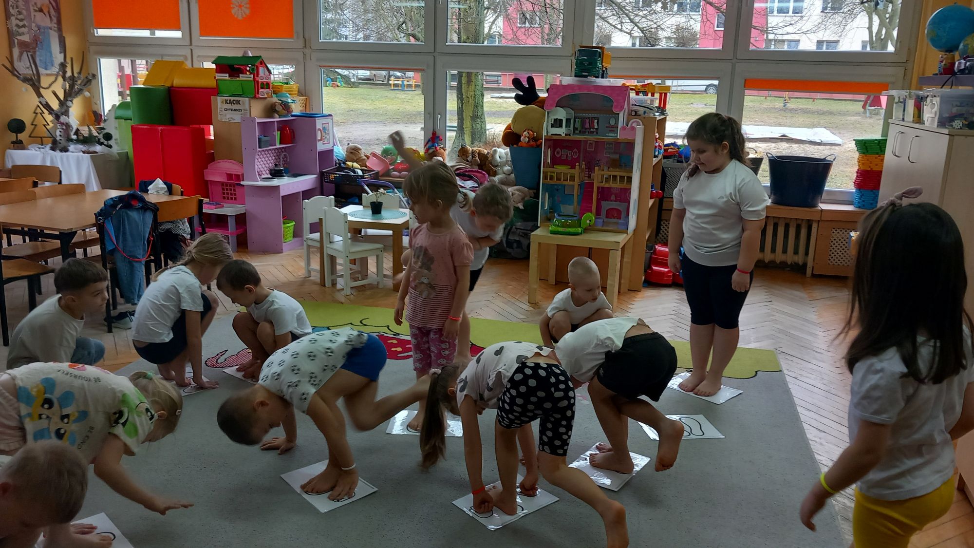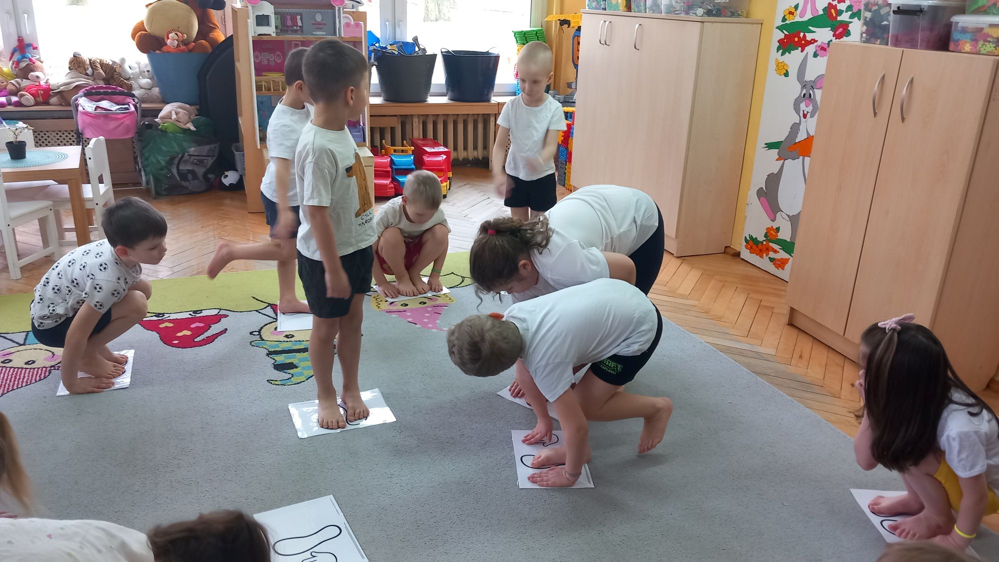 26.02.2026 r. - „Słyszę, liczę, podskakuję” to temat kolejnego zajęcia w ramach realizowanego w grupie „Krasnoludków” projektu - „Muzyczna matematyka”. Wszystkie przeprowadzone podczas zajęcia zabawy integrowały ruch i muzykę do utrwalania pojęć matematycznych. Dzieci sprawnie wykonywały zadania polegające na przeliczaniu, dobieraniu odpowiednich cyfr i kolorów czy rozróżnianiu kierunków w przestrzeni. Największą radość sprawiała im możliwość ilustrowania zadań ruchem przy rytmicznym podkładzie muzycznym.