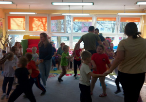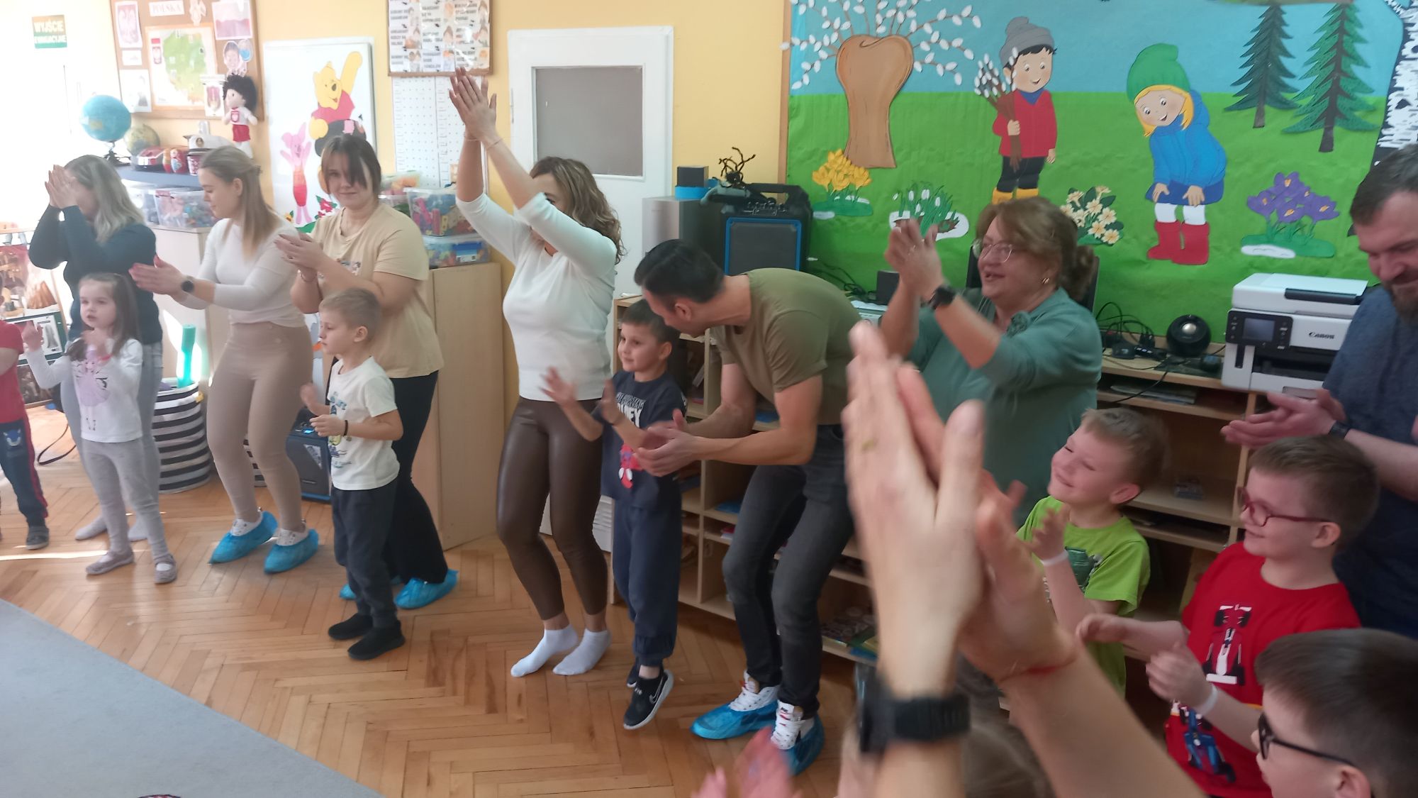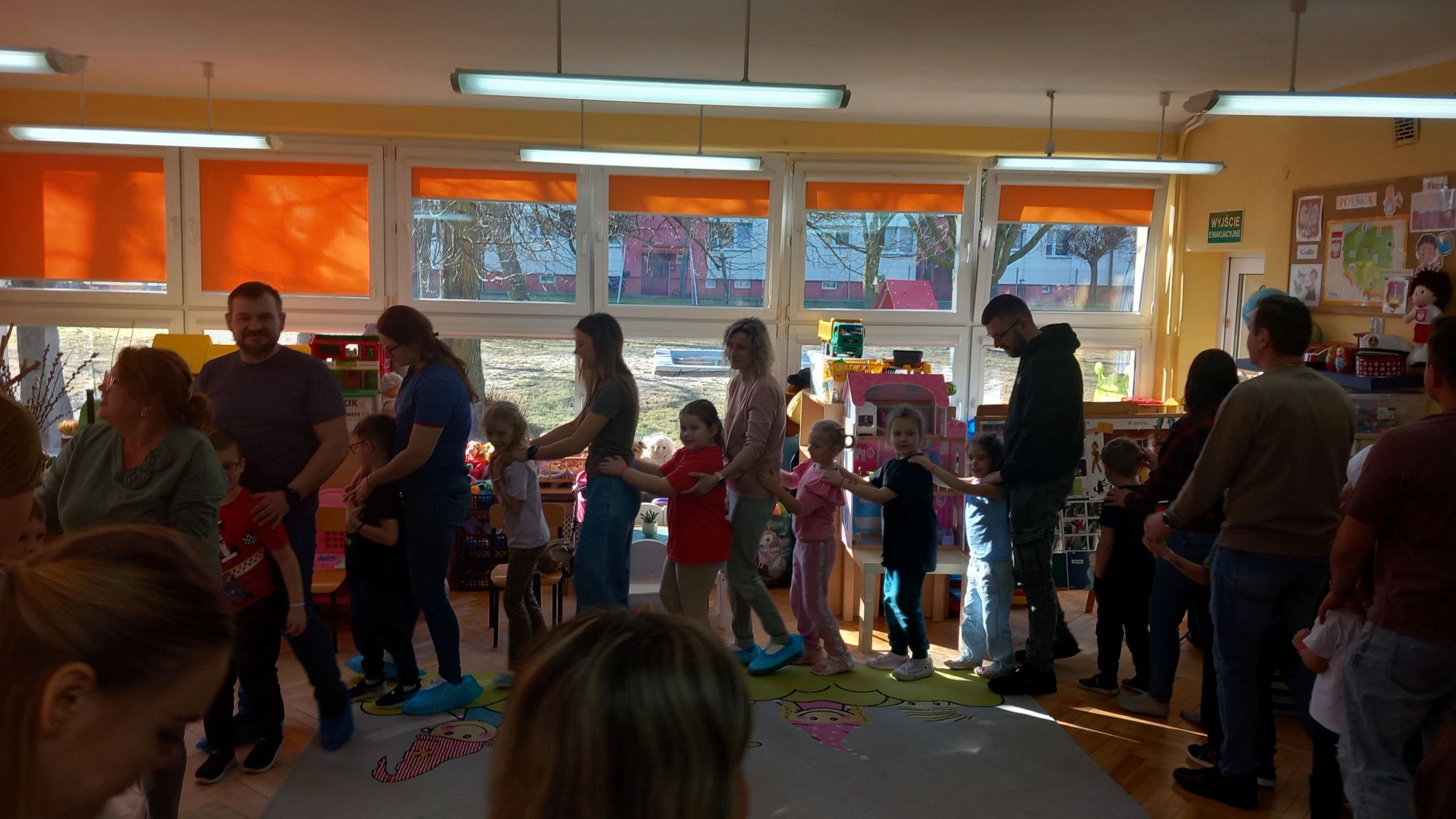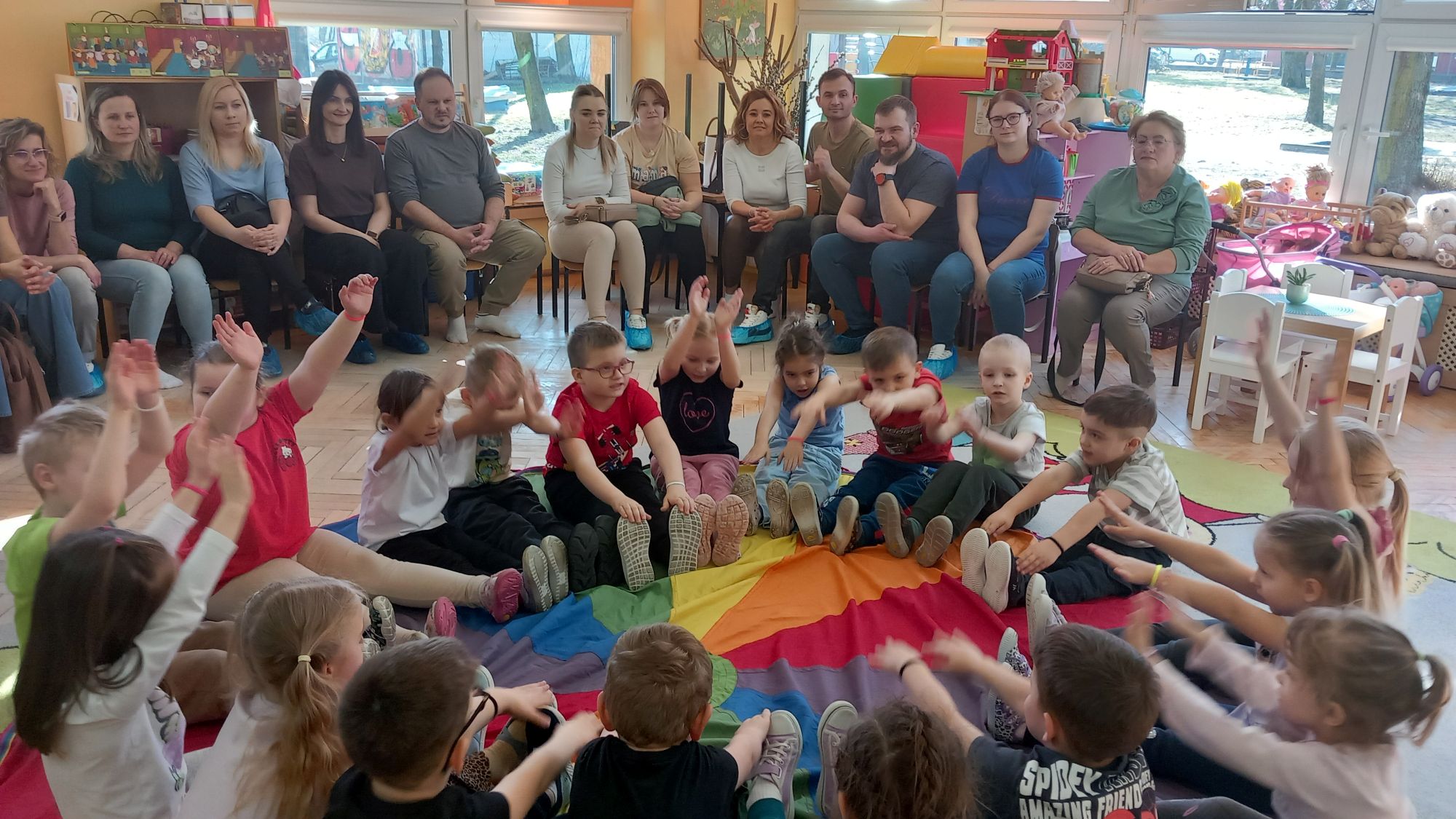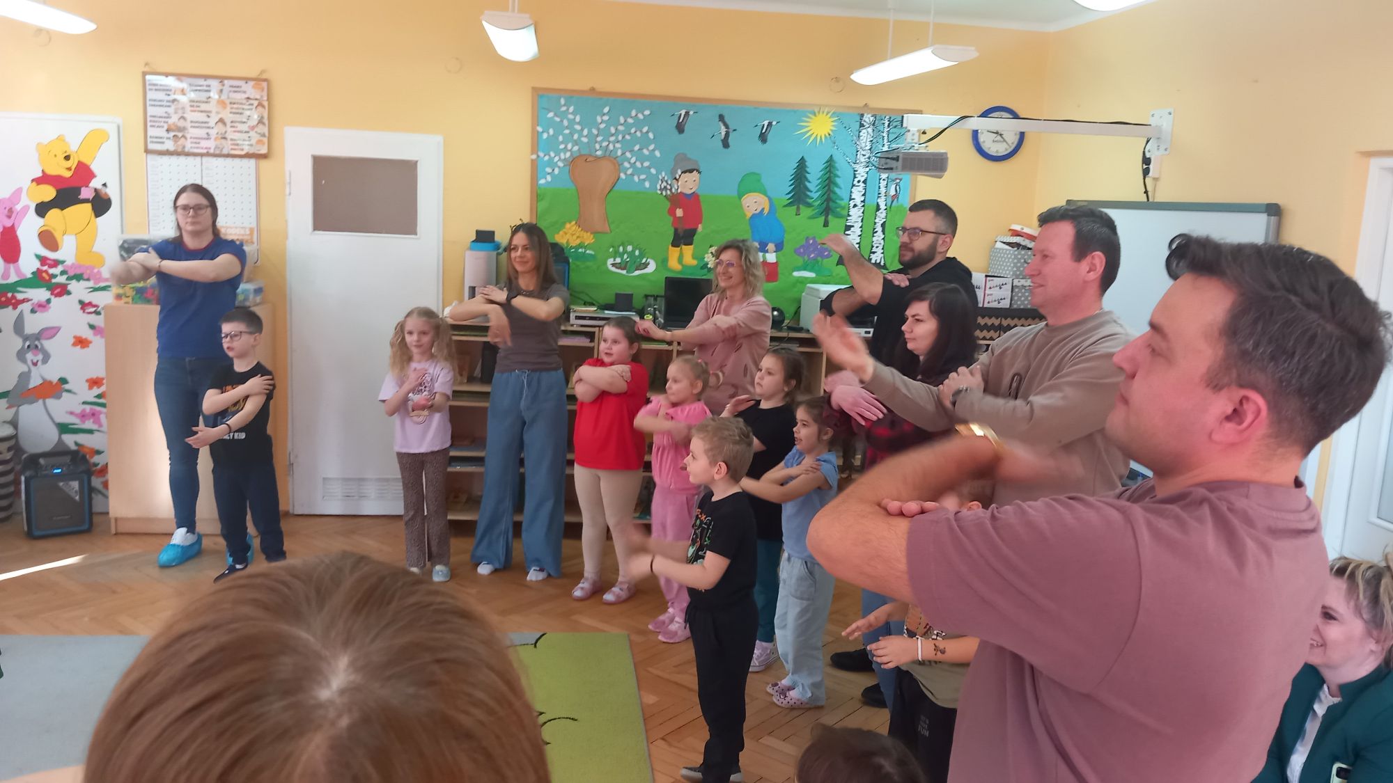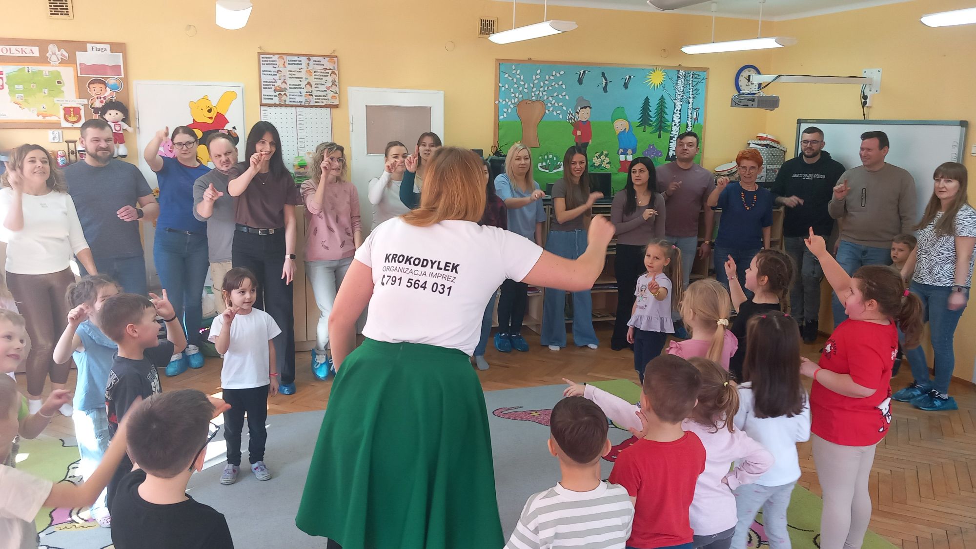 Podczas zajęcia przedszkolaki wspólnie z rodzicami świetnie się bawili, ale także utrwalały pojęcia i działania matematyczne. Dzieci zaprezentowały swoje umiejętności taneczne i matematyczne jednocześnie. Taniec jest pełen pojęć matematycznych: lewa-prawa, raz, dwa, trzy, tańczymy w kole, w parach. Wszystko to jest z muzyką, która daje radość przedszkolakom. Warsztaty przebiegły w miłej i radosnej atmosferze. Dzieci chętnie uczestniczyły w proponowanych aktywnościach, a rodzice aktywnie włączali się do wspólnej zabawy. Spotkanie było okazją do integracji oraz pokazania, że nauka matematyki może odbywać się poprzez muzykę, ruch i zabawę. Na pamiątkę warsztatów dzieci otrzymały o Firmy „ Krokodylek” piękne kubeczki i długopisy.