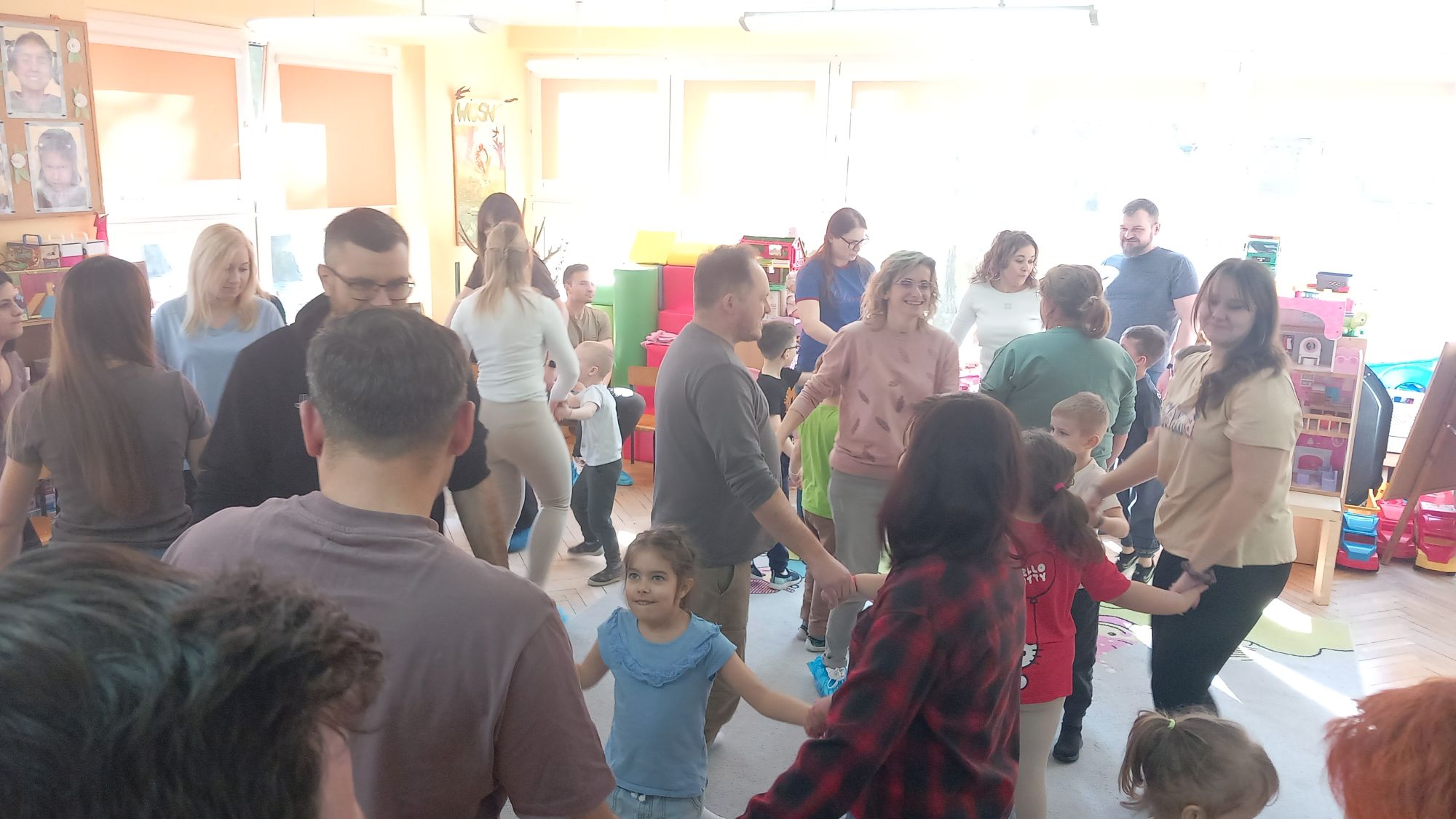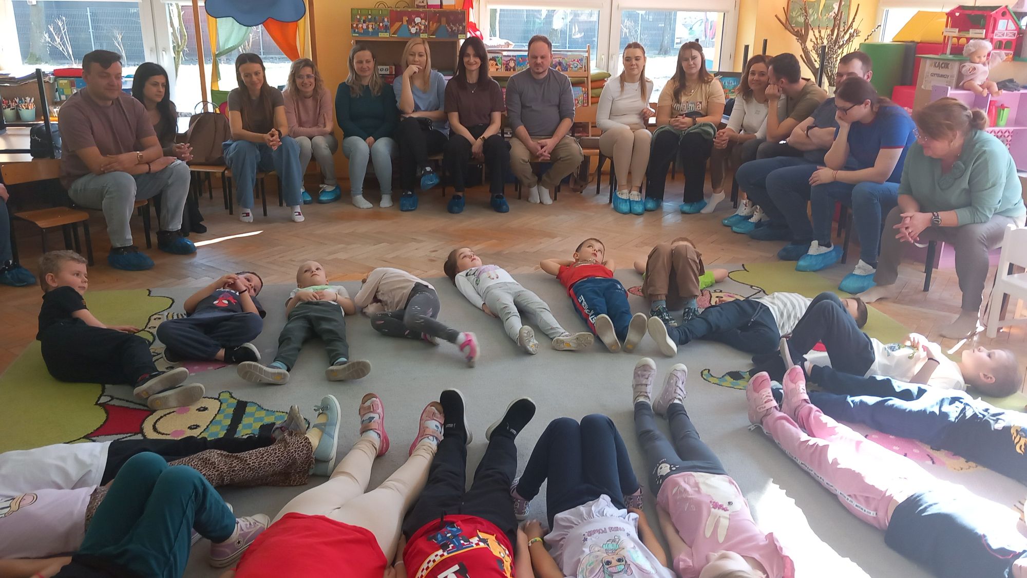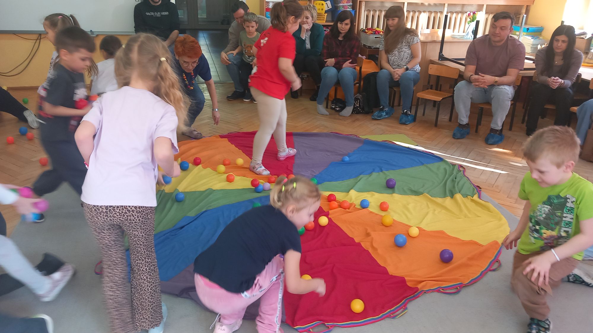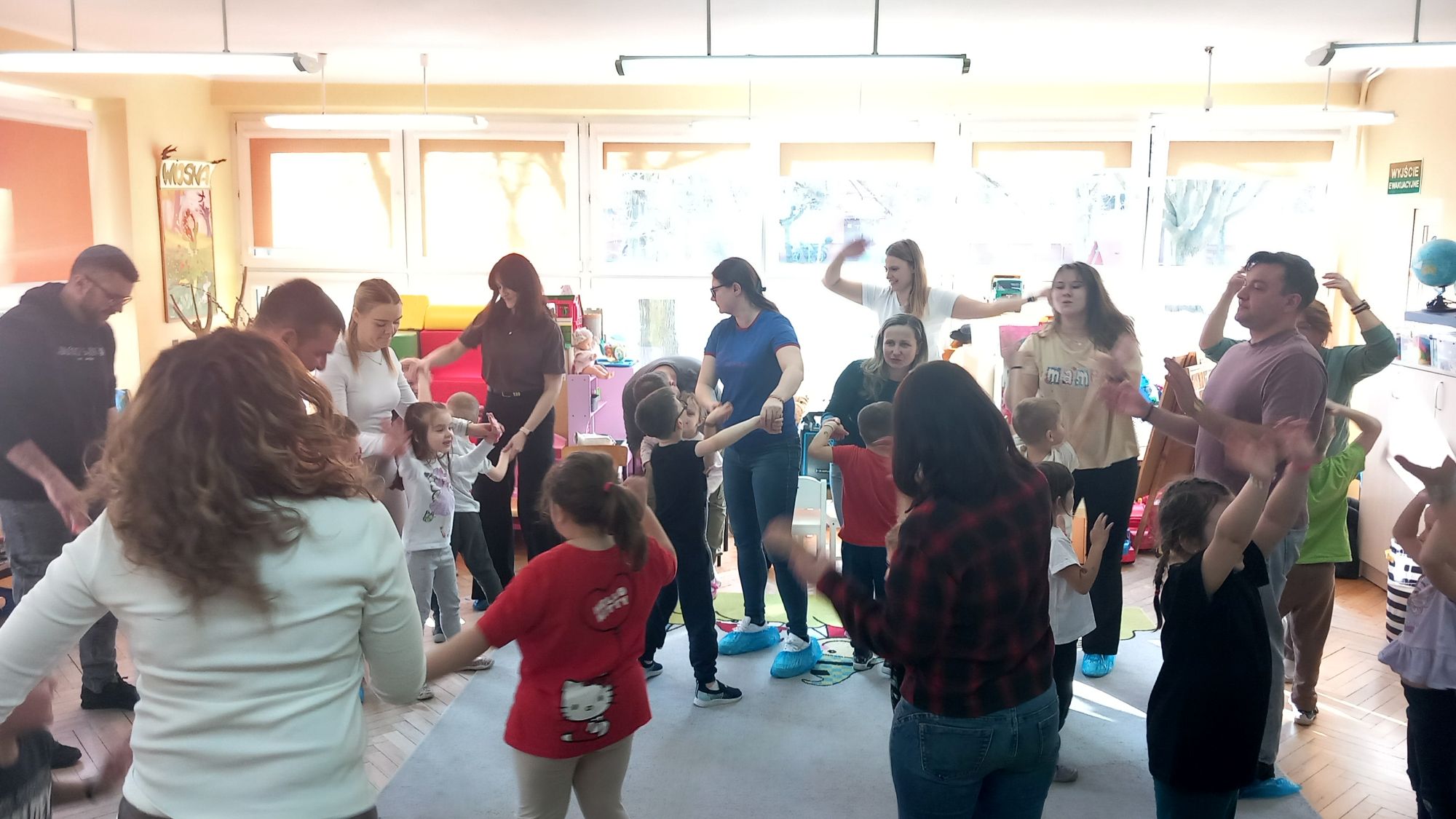 Warsztaty rozpoczęły się od powitania dzieci i rodziców oraz krótkiego wprowadzenia do tematu spotkania. Uczestnicy zostali zaproszeni do wspólnej „podróży” do krainy muzycznej matematyki. Pierwszym etapem była zabawa integracyjna przy muzyce, podczas której dzieci i rodzice poruszali się w rytm melodii oraz wykonywali proste polecenia ruchowe. Następnie uczestnicy brali udział w zabawach rytmicznych polegających na klaskaniu, tupaniu i liczeniu wykonanych ruchów.
