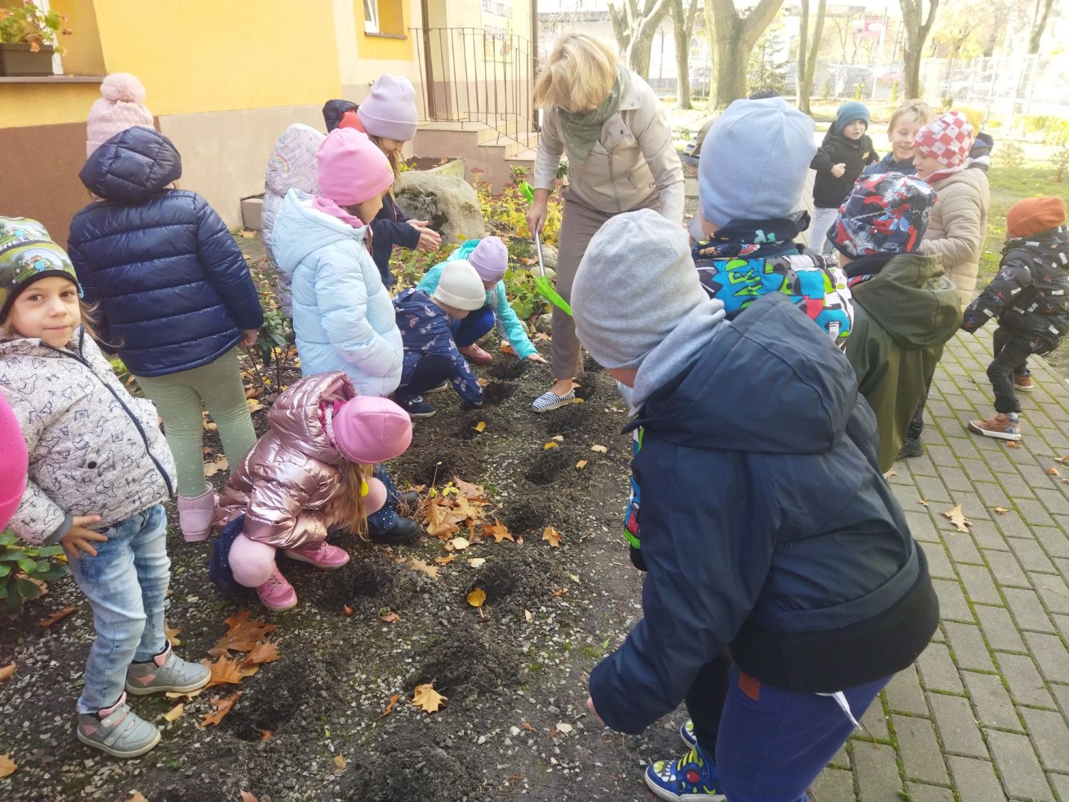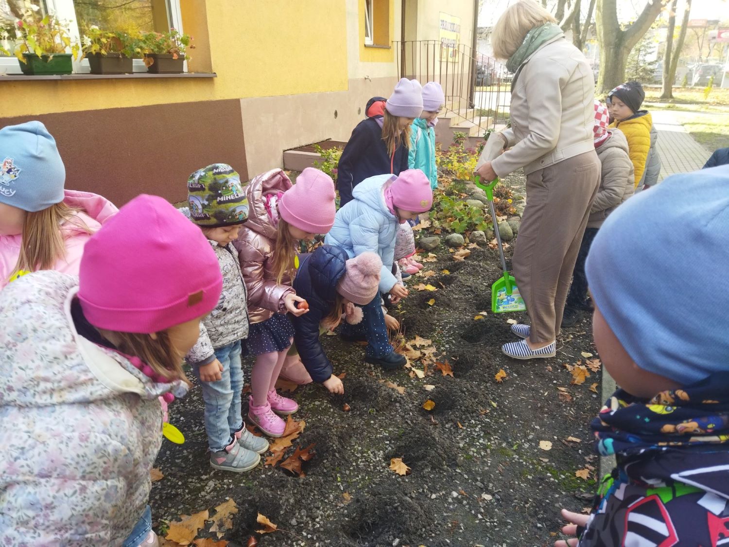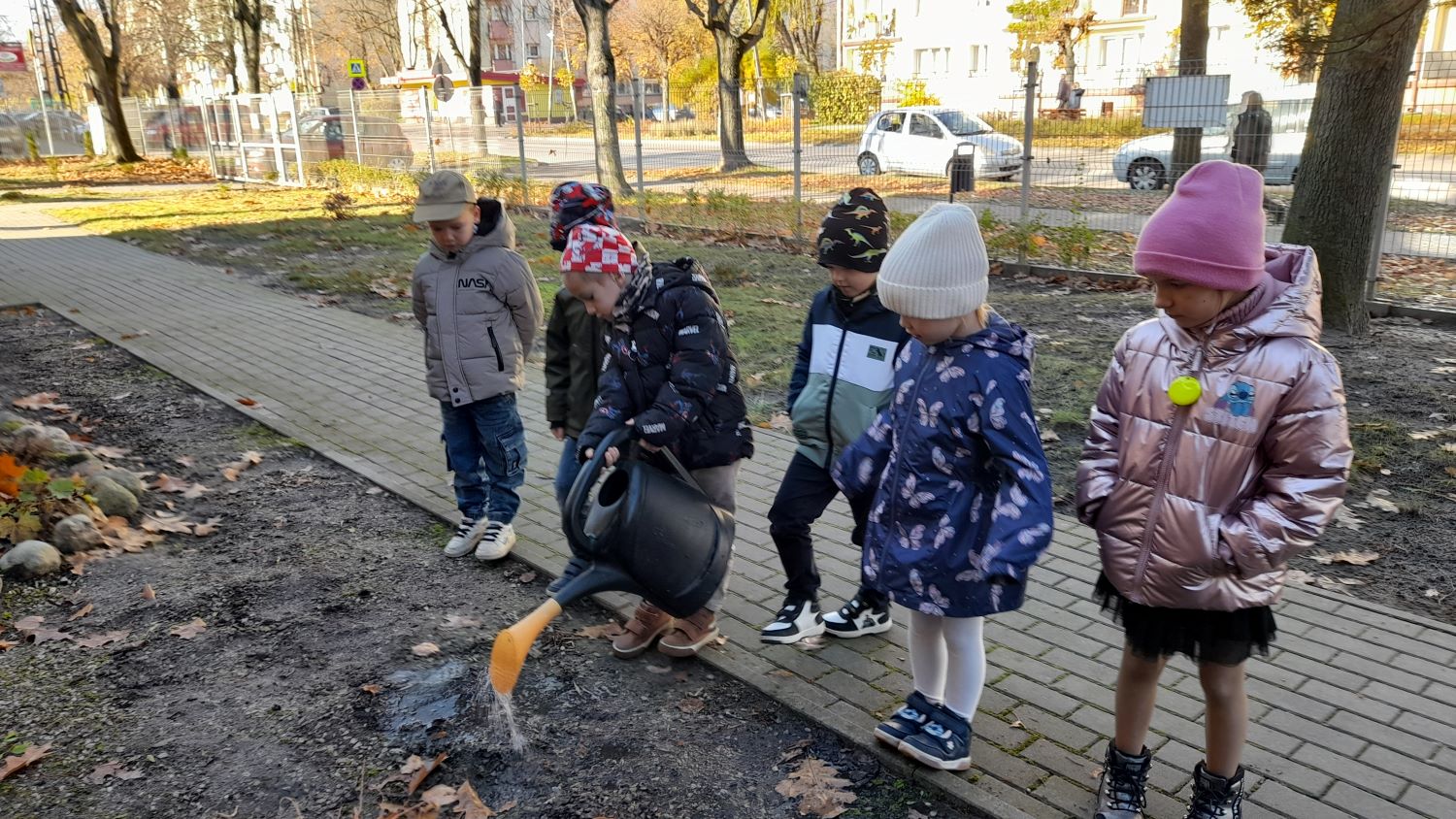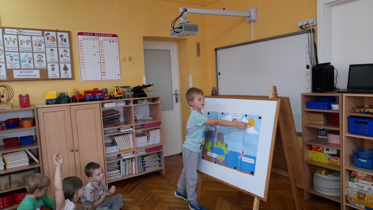 Podczas zabaw w sali dzieci ilustrowały ruchem gdzie można zobaczyć wodę, obserwowały schemat wędrówki wody w przyrodzie. 6-latki dowiedziały się również jakie są sposoby zatrzymywania wody w środowisku. Dzięki uprzejmości rodziców jednego z dzieci, 6-latki mogły własnoręcznie posadzić cebulki kwiatów przed naszym przedszkolem. Każde dziecko wie, że m. in. w taki sposóbmożemy pomagać przyrodzie, aby było więcej wody. Na koniec przedszkolaki utrwaliły poznane wiadomości, wypełniając przygotowane karty pracy.