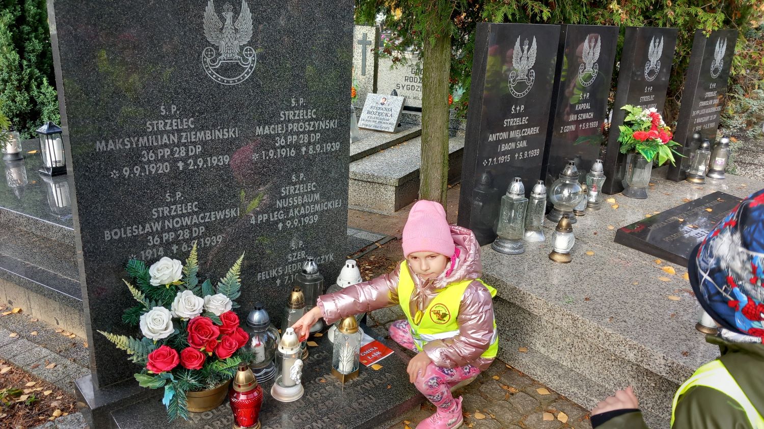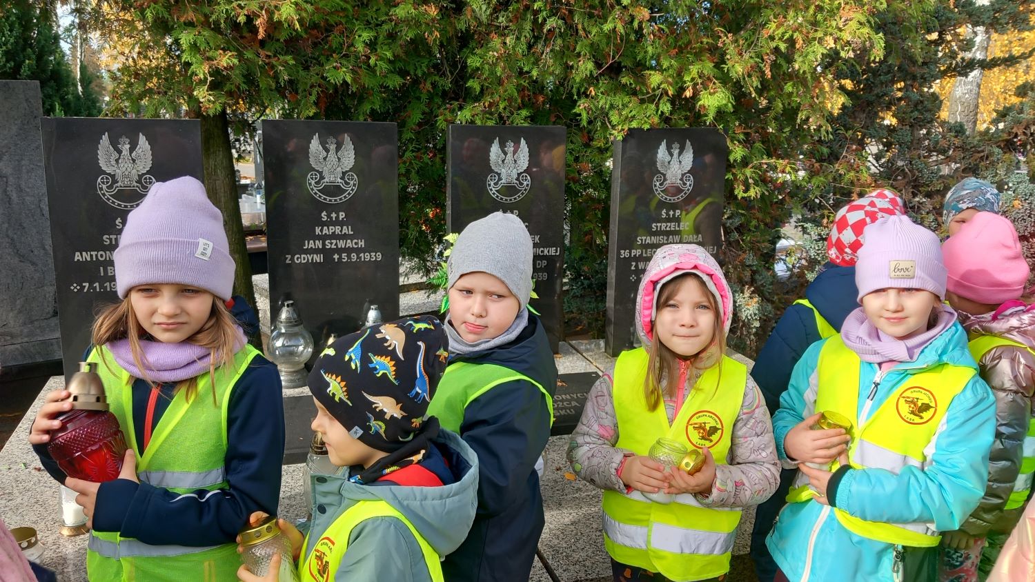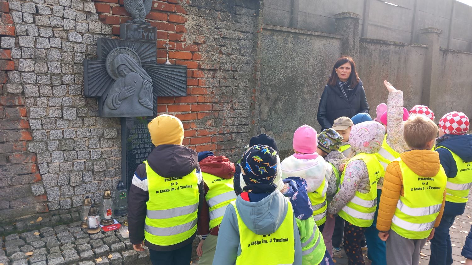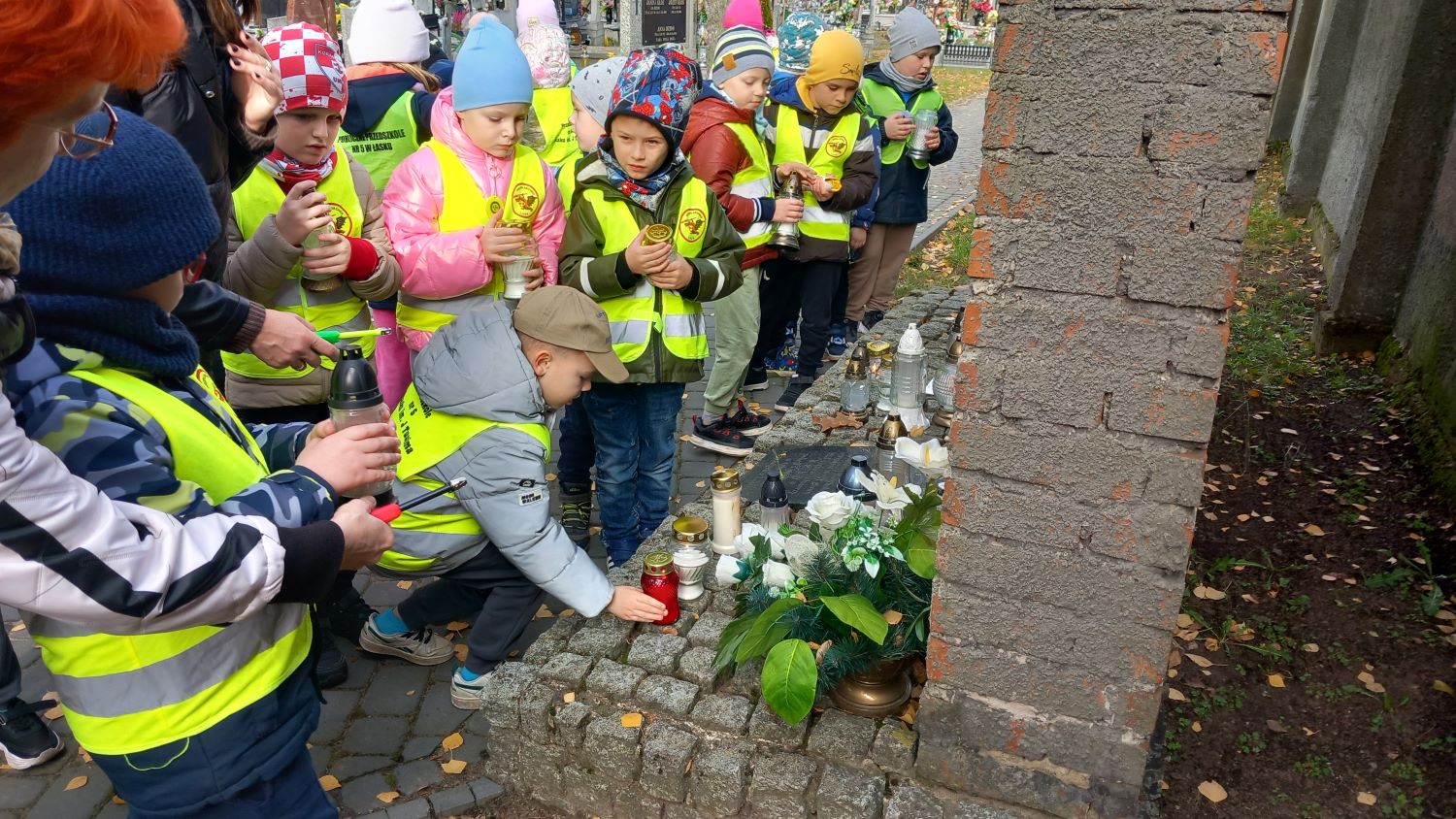 Święto Zmarłych, to czas, w którym odwiedzamy groby i wspominamy tych, którzy od nas odeszli. Kultywując polską tradycję w czwartek 30.10.2025 r. przedszkolaki z grupy „ Krasnoludków” i „ Misiaczków” udały się na Cmentarz parafii Niepokalanego Poczęcia NMP w Łasku. Podczas pobytu na cmentarzu przedszkolaki mogły w ciszy i zadumie posłuchać opowieści na temat przeszłości naszej ojczyzny i zapalić znicze na Grobie Nieznanego Żołnierza oraz oddać hołd poległym, którzy walczyli w obronie naszej ojczyzny. Dzieci dowiedziały się jak należy zachowywać się na cmentarzu, by nie zakłócać spokoju zmarłych i osób odwiedzających to miejsce. Spacer alejkami cmentarza był dla dzieci ogromnym przeżyciem, szły skupione i bardzo zaciekawione. To była jedna z ważniejszych lekcji wychowania rodzinnego, obywatelskiego i patriotycznego, która z pewnością pozostanie w pamięci dzieci.