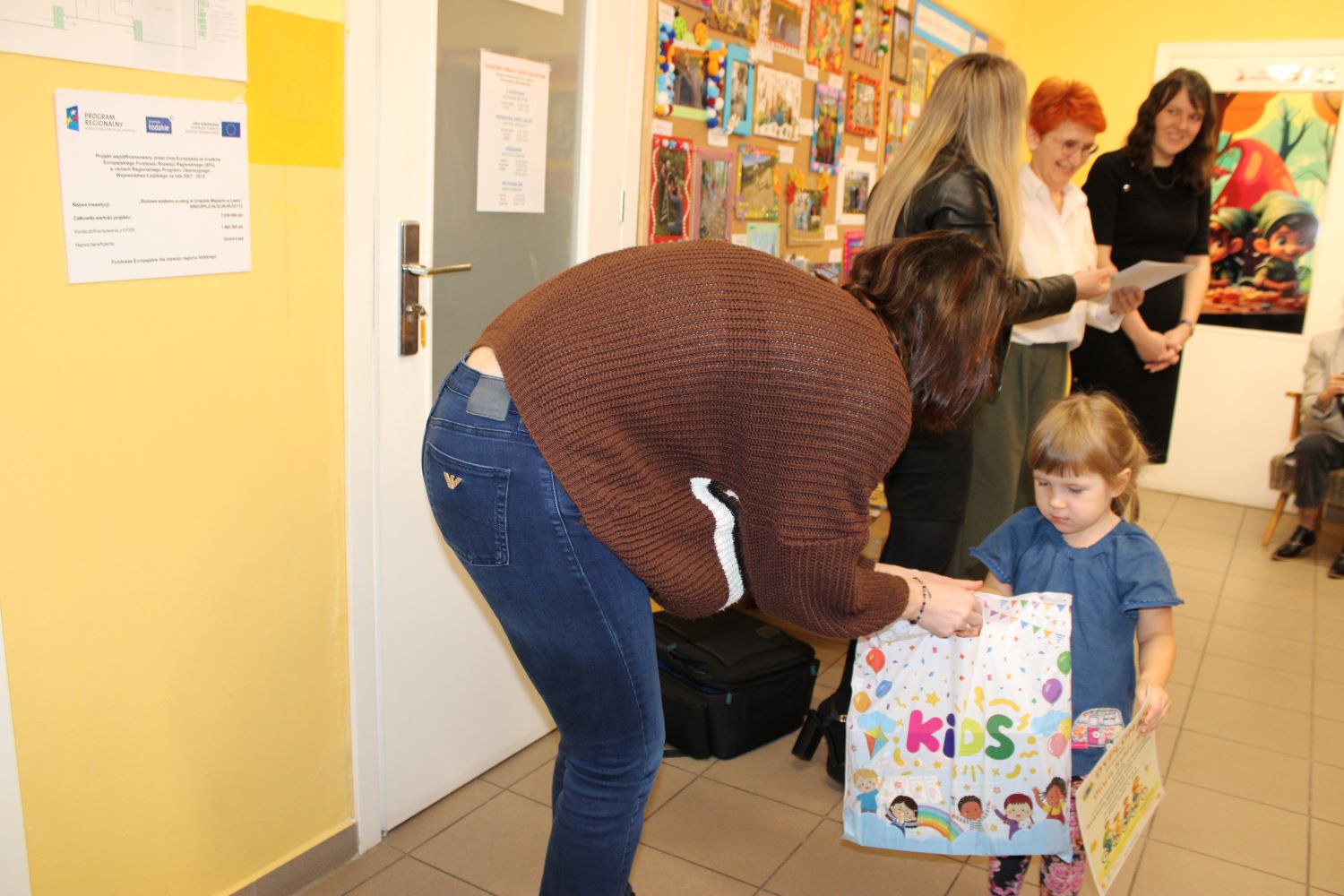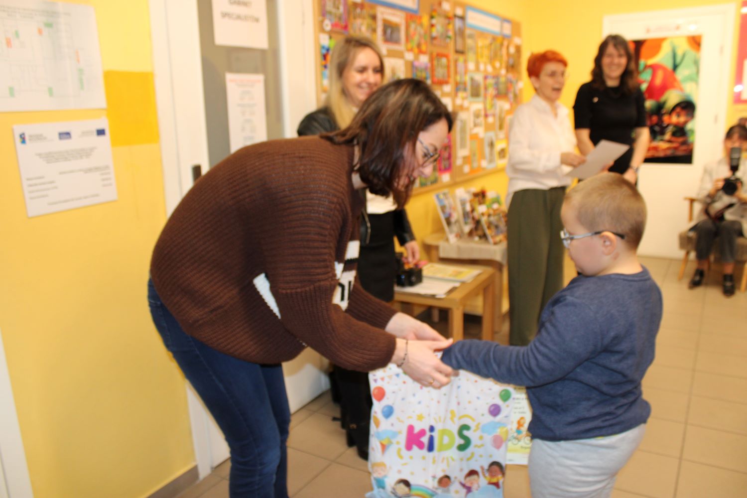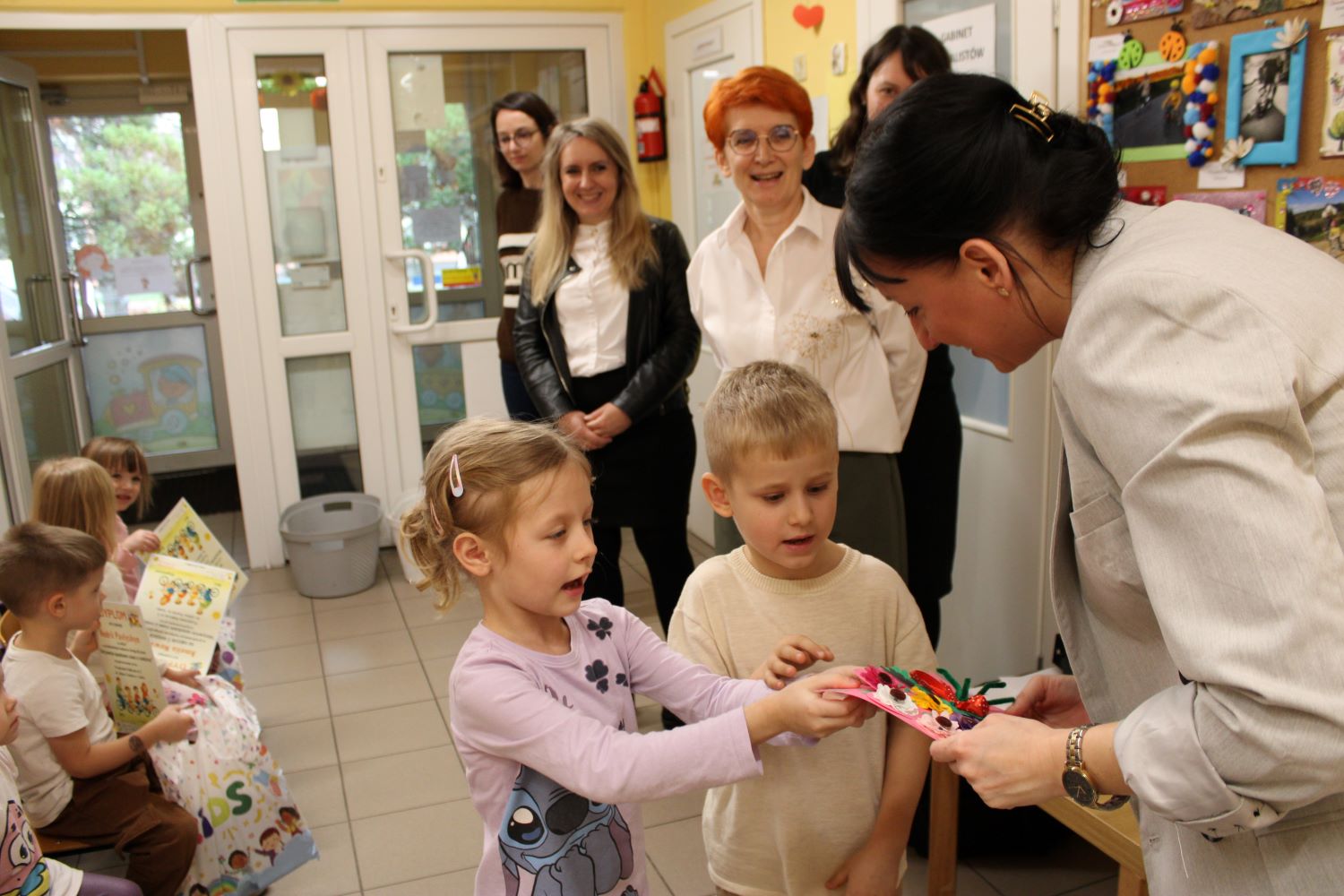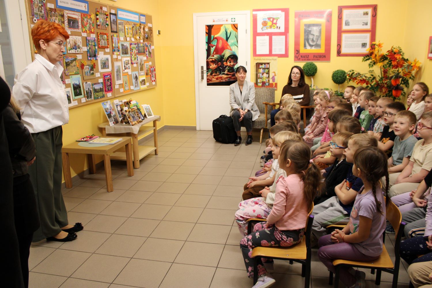 oraz 5 wyróżnień, które otrzymali : Paweł Felcenloben z „Krasnoludków”, Lena Żero ze „Słoneczek”, Fabian Kasprzak z „Żabek”, Kasjan Brzeziński z „Misiaczków” i Alicja Strzopa z „Biedronek”. Wszyscy uczestnicy konkursu, niezależnie od zajętego miejsca, zostali nagrodzeni dyplomami i nagrodami ufundowanymi przez Radę Rodziców i Dyrektora Przedszkola. Każde dziecko otrzymało książkę „101 zabaw” z łamigłówkami, mini kolorowankę, kredki oraz słodkości. Wręczenia nagród dokonały trzy panie, przedstawicielka Rady Rodziców – pani Agata Okrasa, pani dyrektor – Zofia Molenda – Kimla i pani Agnieszka z grupy „Krasnoludków”. Gościem specjalnym rozstrzygnięcia naszego konkursu była pani fotograf - Aneta Nawrocka ze studia fotograficznego „fotoGrafik” na ulicy Kościuszki. Pani Aneta przybliżyła przedszkolakom zawód fotografa. Pokazała zdjęcia wykonywane na sesjach fotograficznych i do dokumentów, różne rodzaje aparatów fotograficznych, od tych najstarszych po nowoczesną lustrzankę. Dzieci z zainteresowaniem oglądały aparaty z czasów ich dziadków i pradziadków oraz dzieliły się swoimi spostrzeżeniami. Odpowiadając na pytania pani dyrektor nasz gość podzielił się z nami swoją wiedzą i pasją do fotografii. Na koniec spotkania pani fotograf zrobiła wszystkim uczestnikom profesjonalne zdjęcie zbiorowe. Bardzo dziękujemy pani Anecie i pani Agacie z Rady Rodziców za przybycie i poświęcony czas. Serdeczne podziękowania i gratulacje kierujemy również do rodziców, którzy wraz ze swoimi pociechami wzięli udział w naszym konkursie. Zachęcamy do wspólnych aktywności z całą rodziną i zapraszamy do udziału w innych przedszkolnych działaniach.