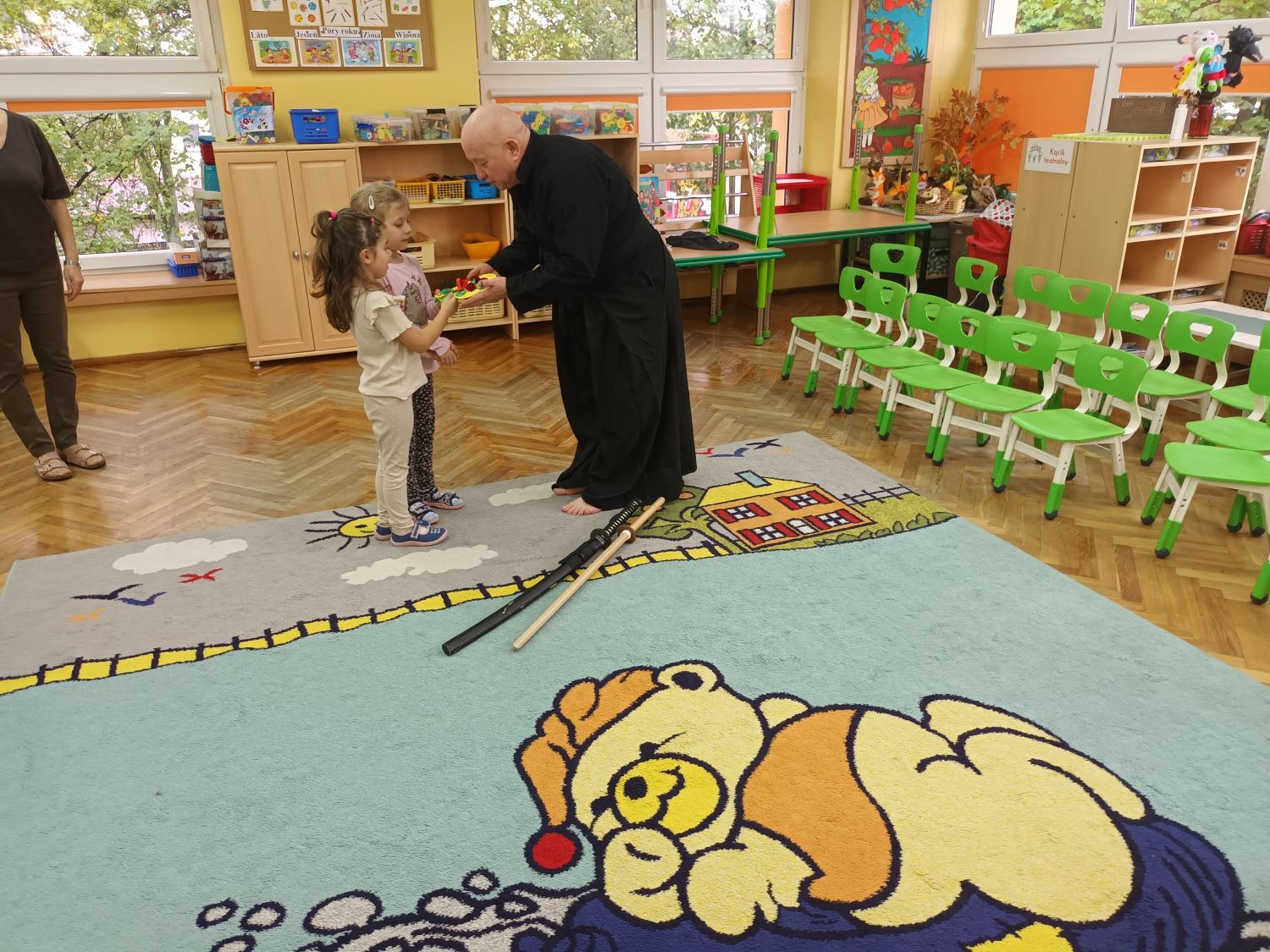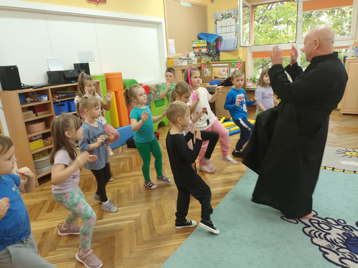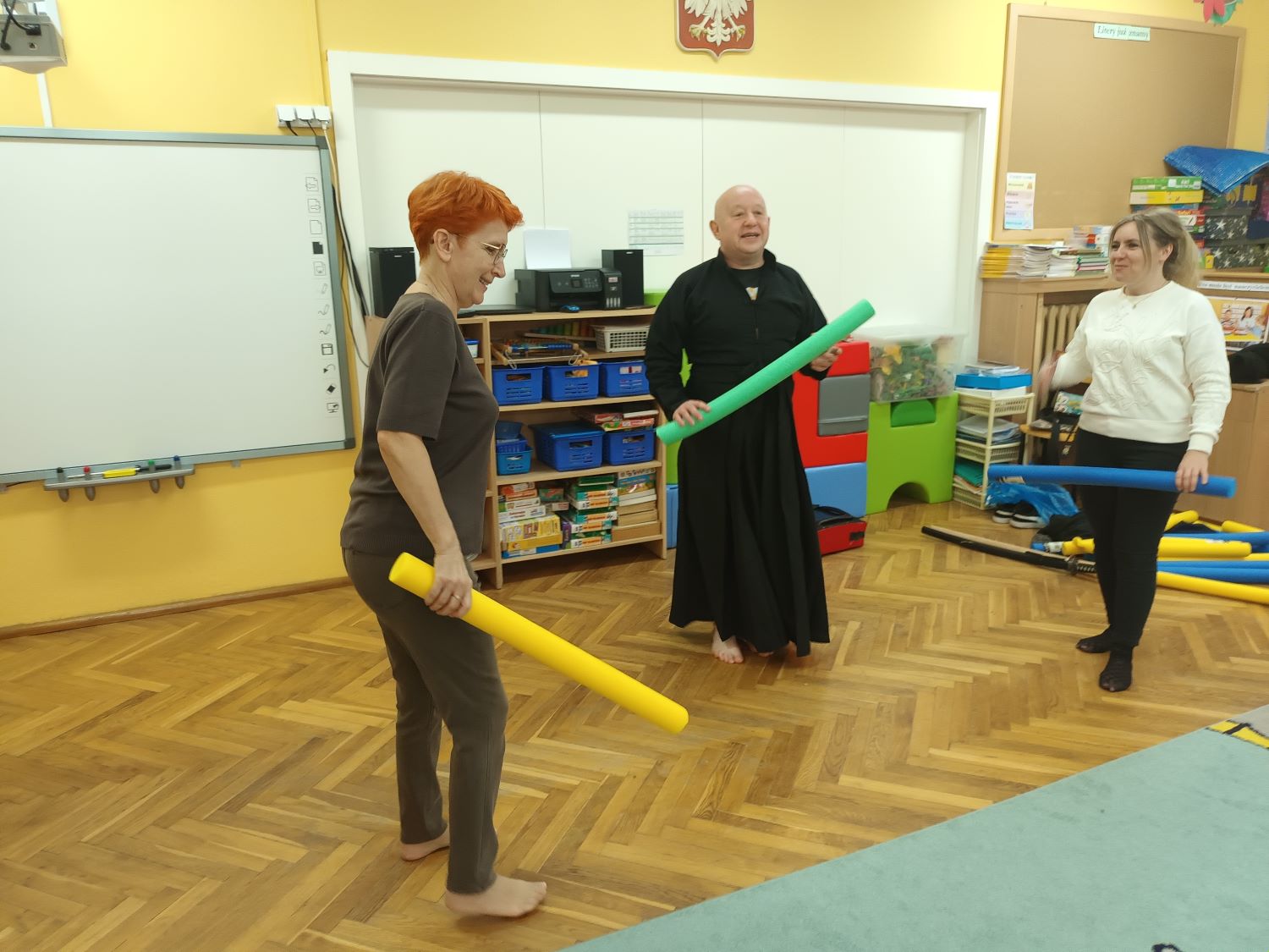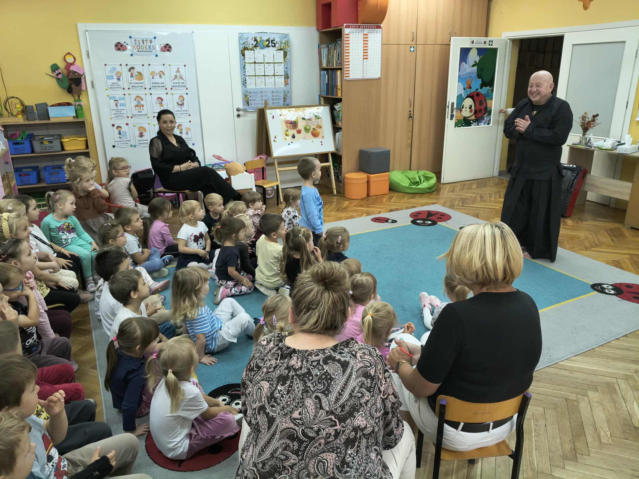 Dzisiaj, 7 października gościliśmy w naszym przedszkolu Pana Pawła Bartosika. To doświadczony instruktor i trener nauk technik wschodnich sztuk walk : karate, kyokushin, muay thai, grappling, krav maga. Elementy tych sztuk walk dzieci z zainteresowaniem obserwowały , a nawet ,,uprawiały” to rzemiosło wojenne pod okiem Pana Pawła. Przedszkolaki dowiedziały się również, że posiadanie takich umiejętności to jeden z najlepszych sposobów na obranę własną czy obronę słabszych. Poznały nazewnictwo i broń, którą posługują się Samurajowie. Pan Paweł zachęcał dzieci do skorzystania z oferty nauki technik wschodnich sztuk walki w Klubach na terenie naszego miasta, w których odbywają się treningi dla osób lubiących sport, prowadzonych przez doświadczonych instruktorów.