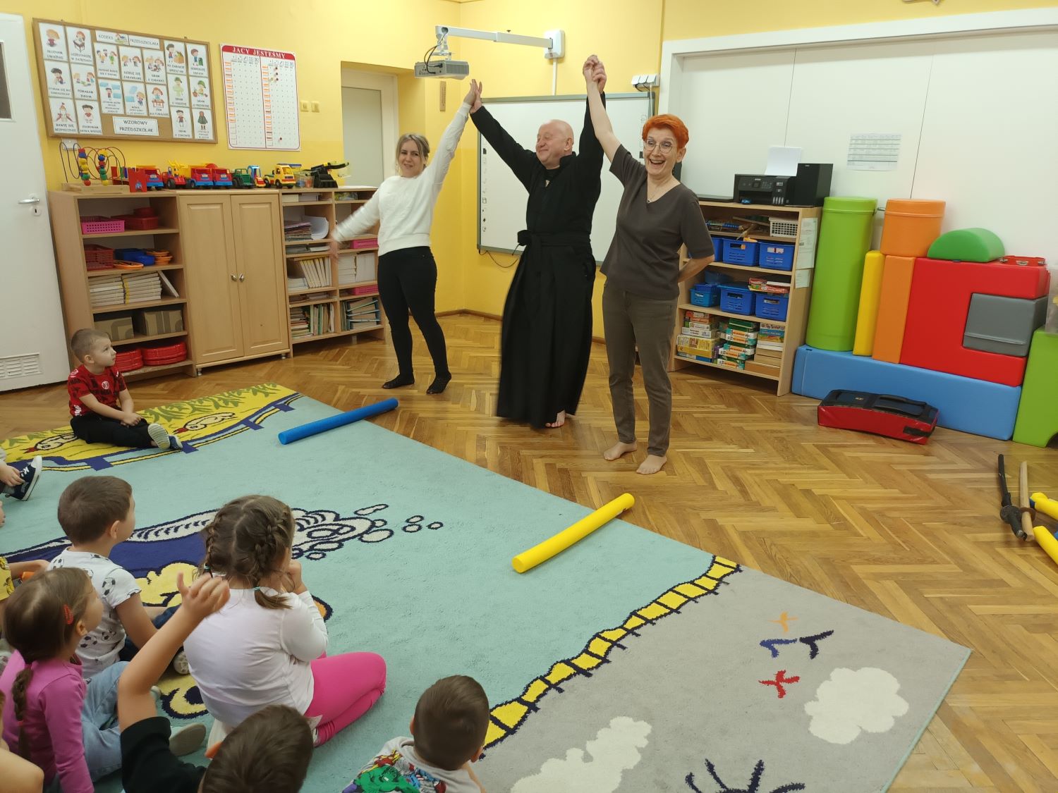 Przedszkolaki aktywnie uczestniczyły w spotkaniu a ciekawymi ćwiczeniami na pewno zostały zachęcone do uprawiania sportu i aktywności ruchowej.