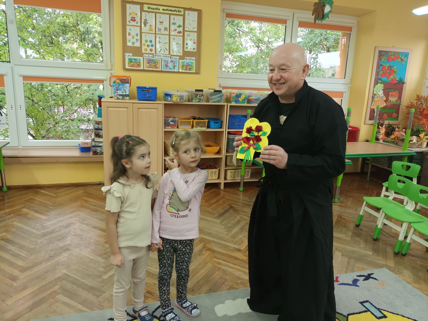 W podziękowaniu za miłe spotkanie, dzieci z grupy ,,Krasnoludków” wręczyły pamiątkową laurkę.