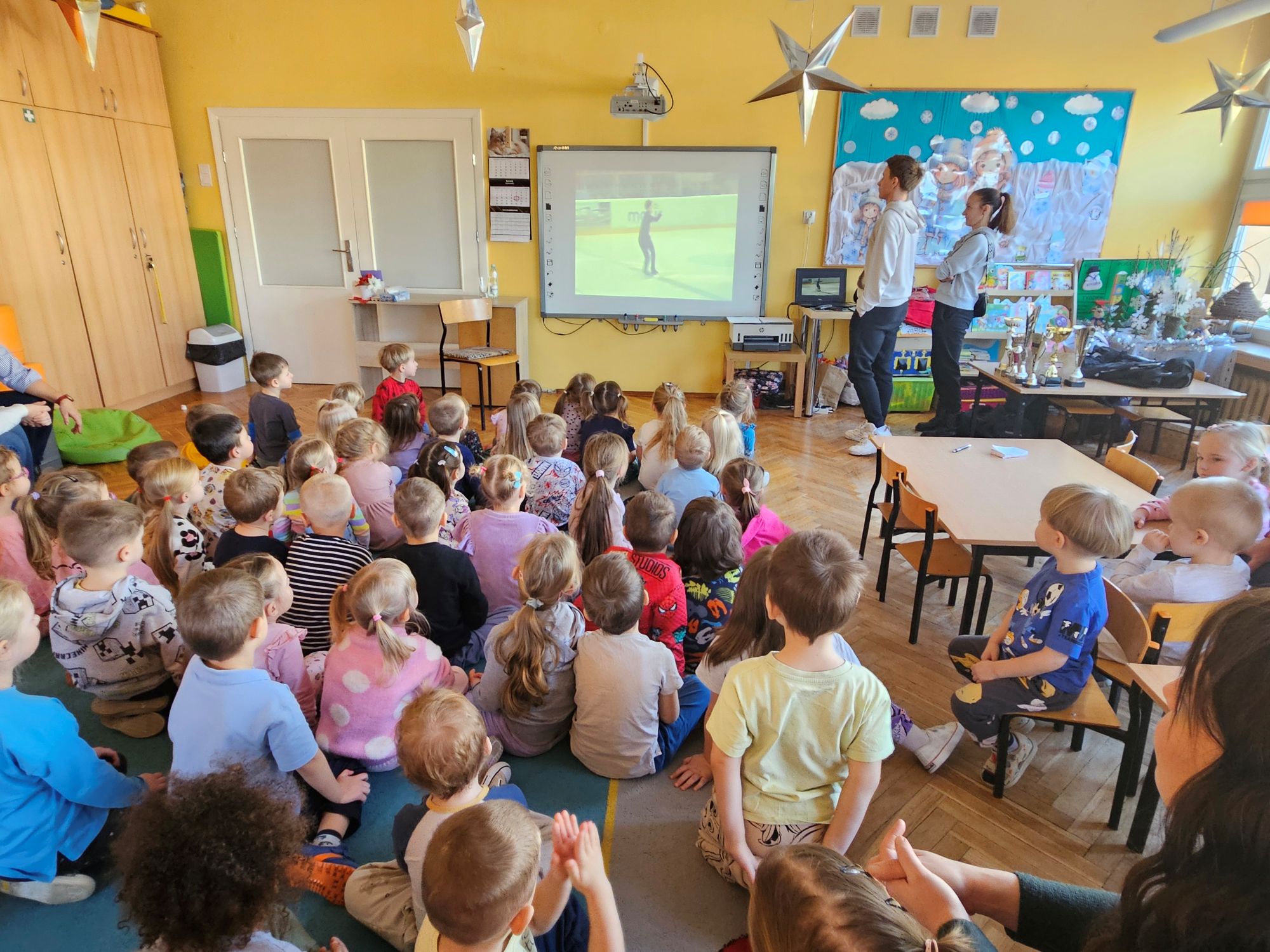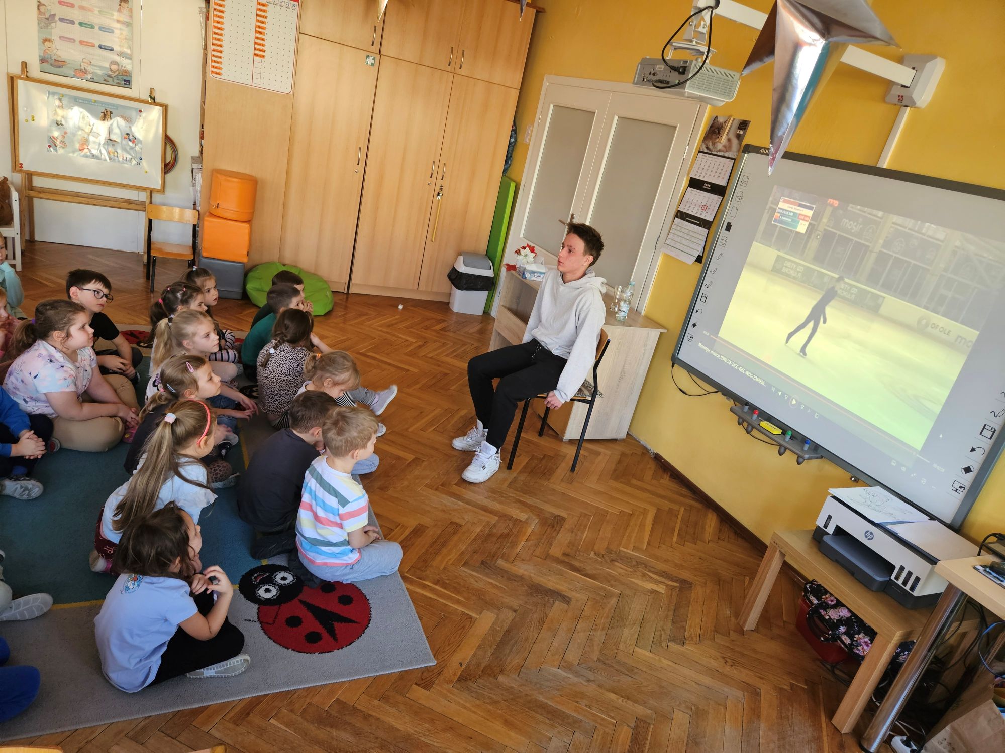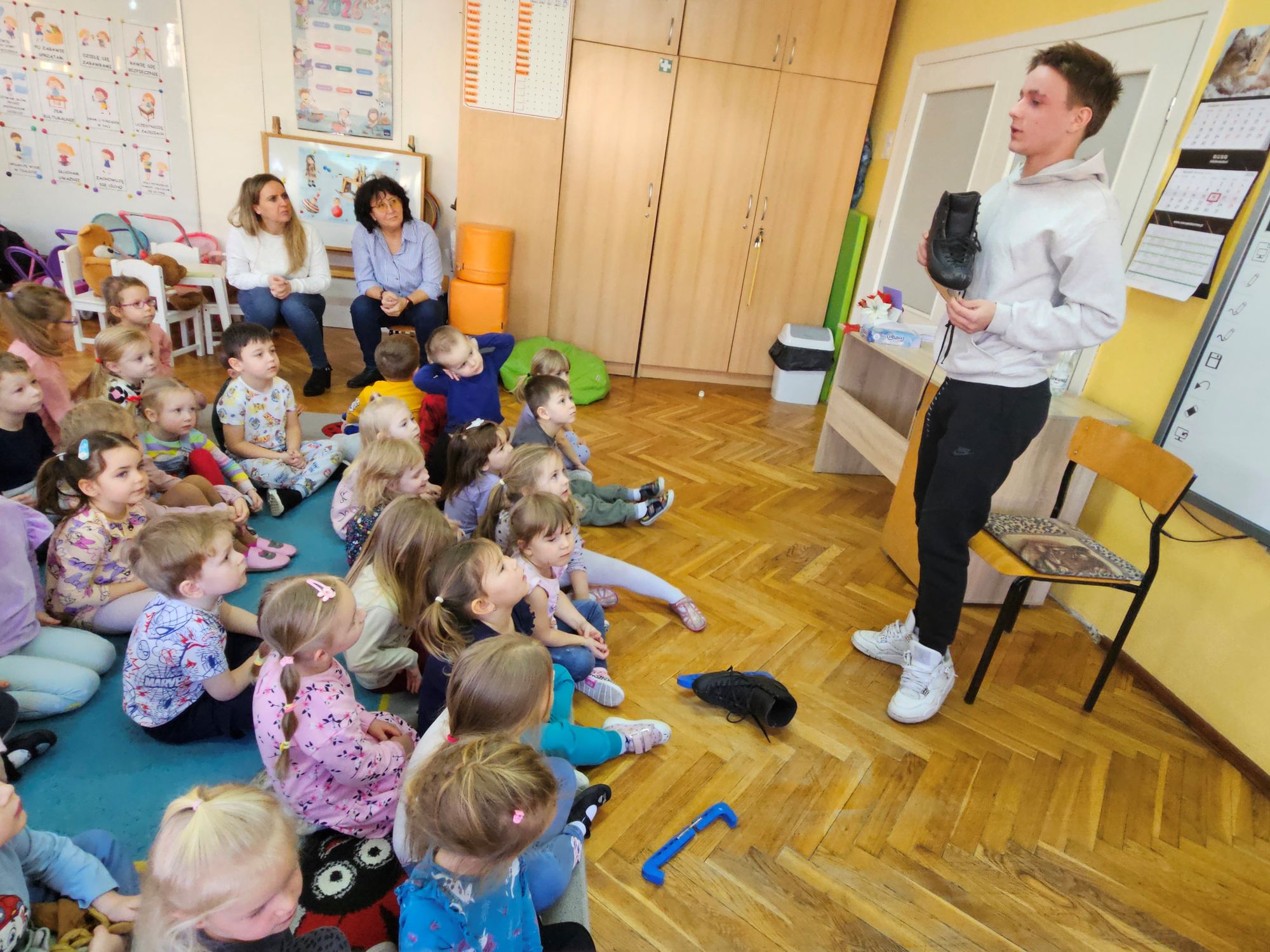 Wizyta zaproszonego sportowca miała na celu zachęcenie przedszkolaków do rozpoczęcia nauki jazdy na łyżwach lub chociażby na rolkach, aby zdrowo i aktywnie spędzać wolny czas.