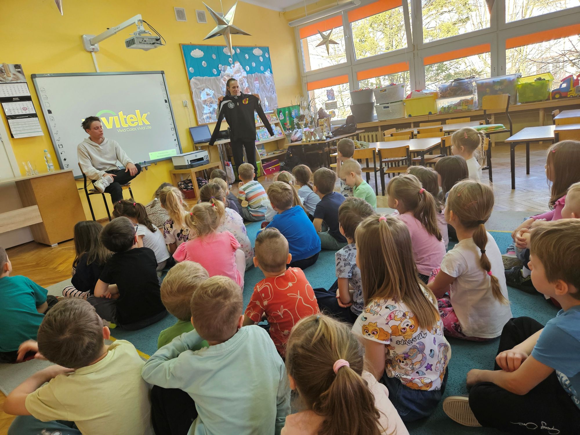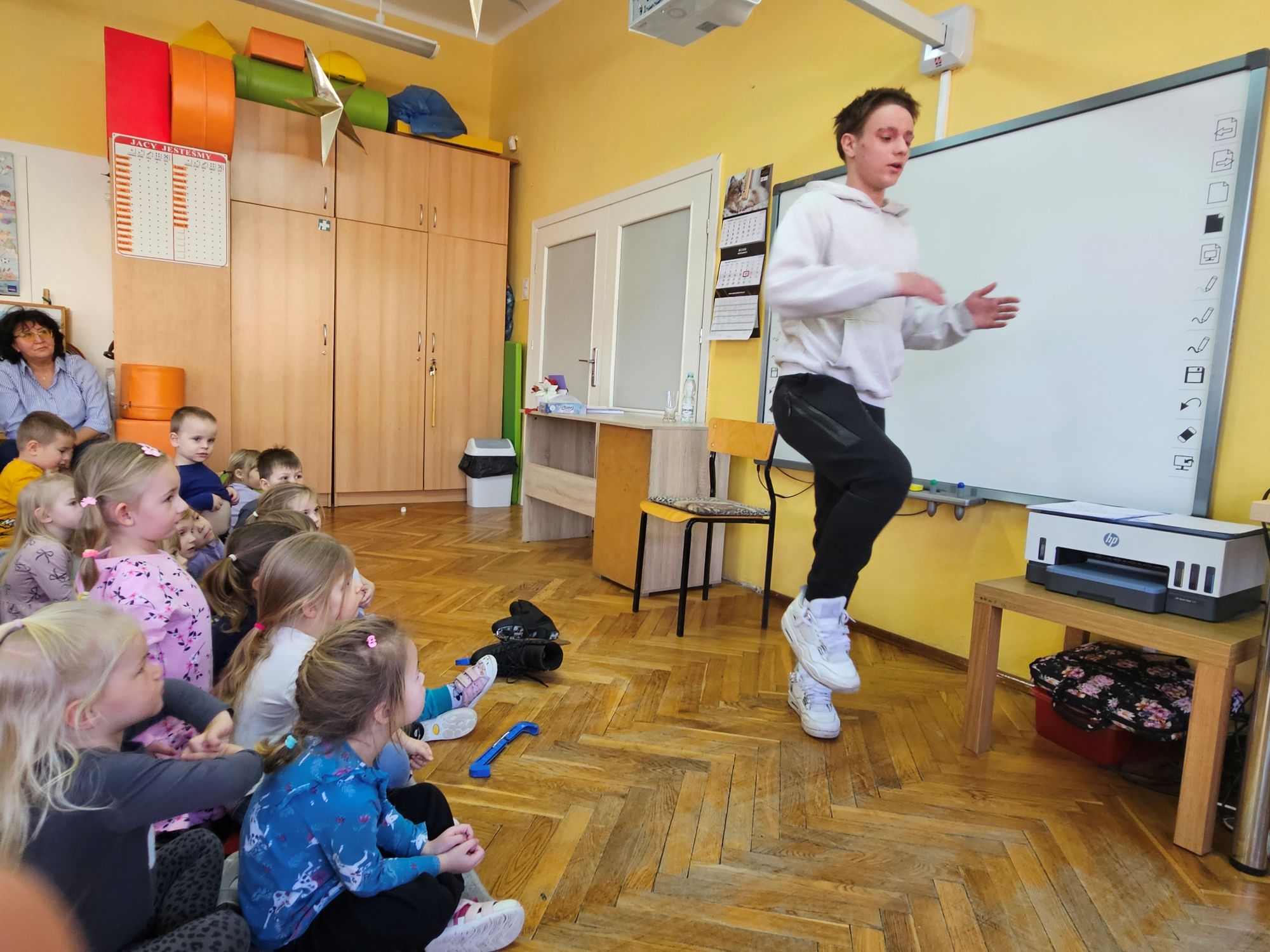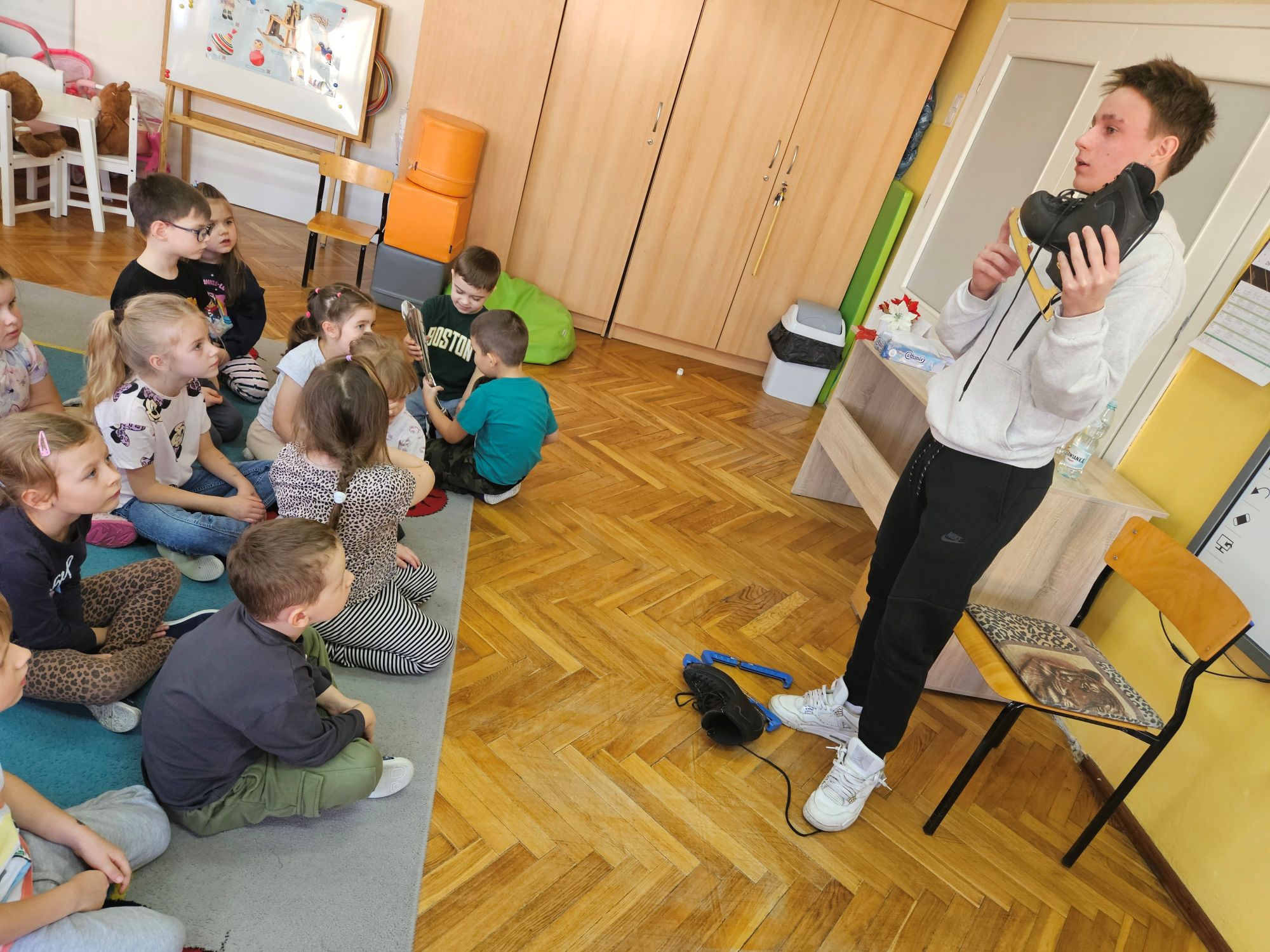 Wizyta zaproszonego sportowca miała na celu zachęcenie przedszkolaków do rozpoczęcia nauki jazdy na łyżwach lub chociażby na rolkach, aby zdrowo i aktywnie spędzać wolny czas.