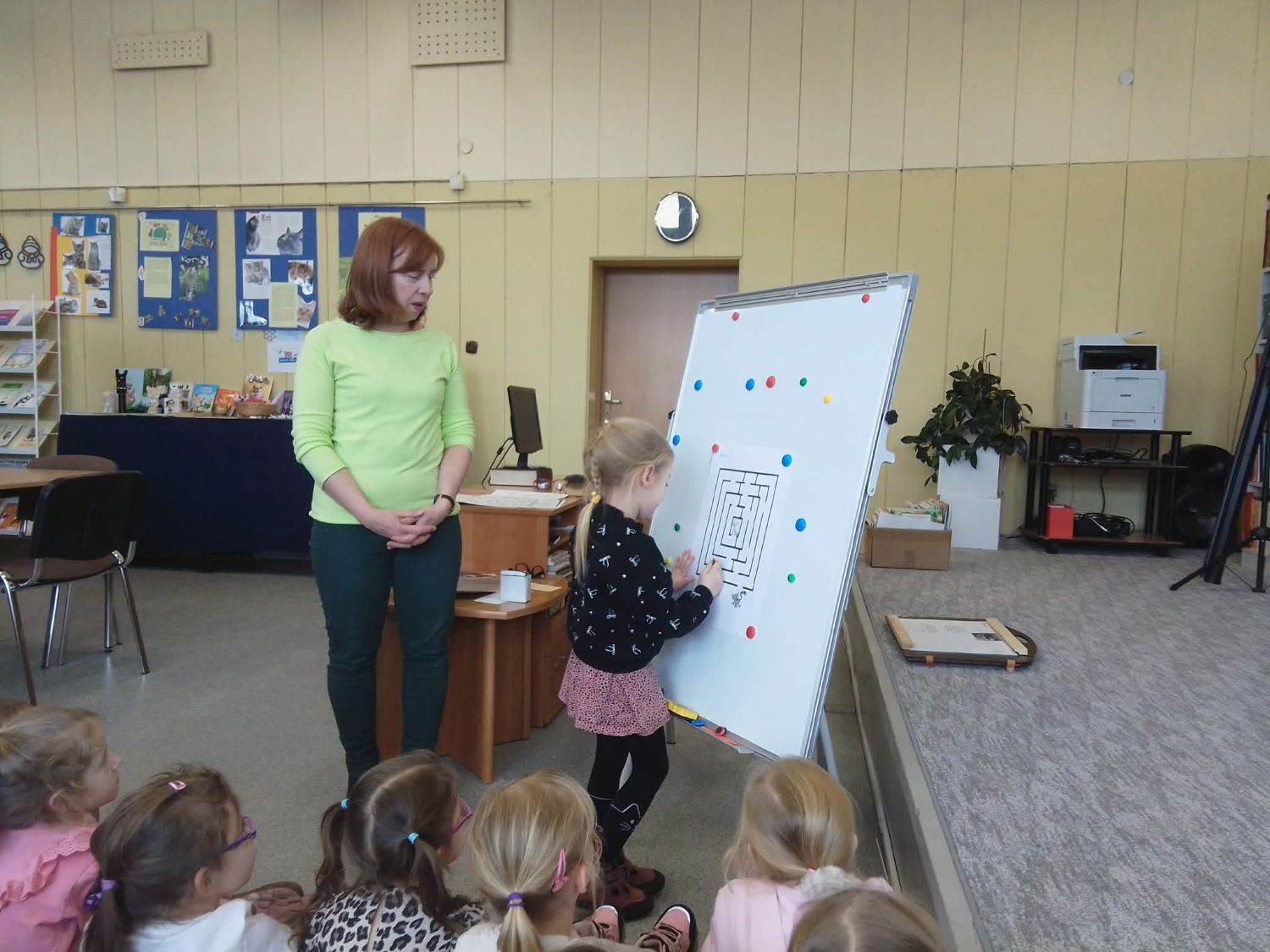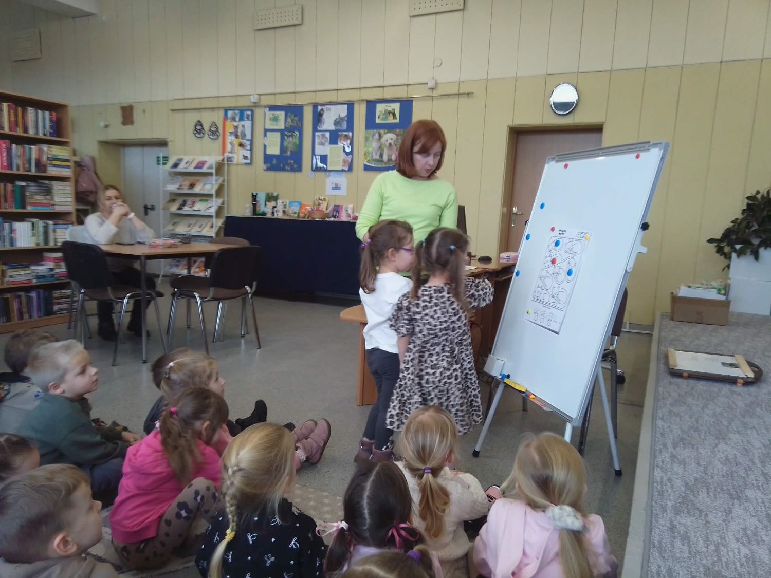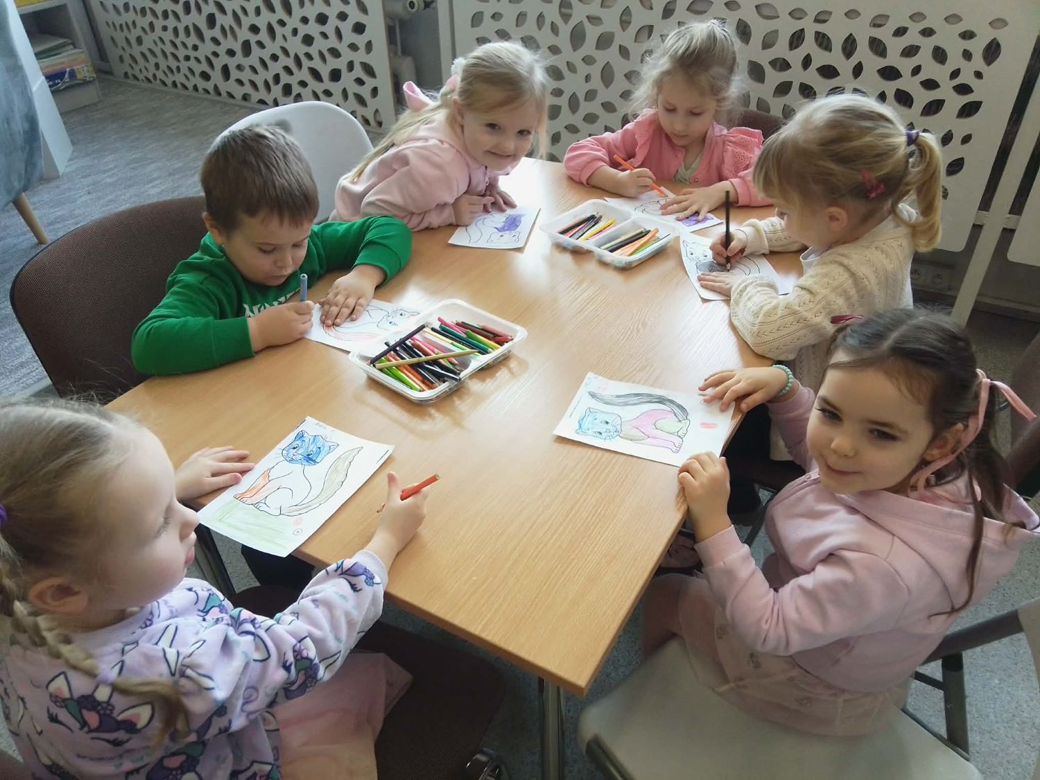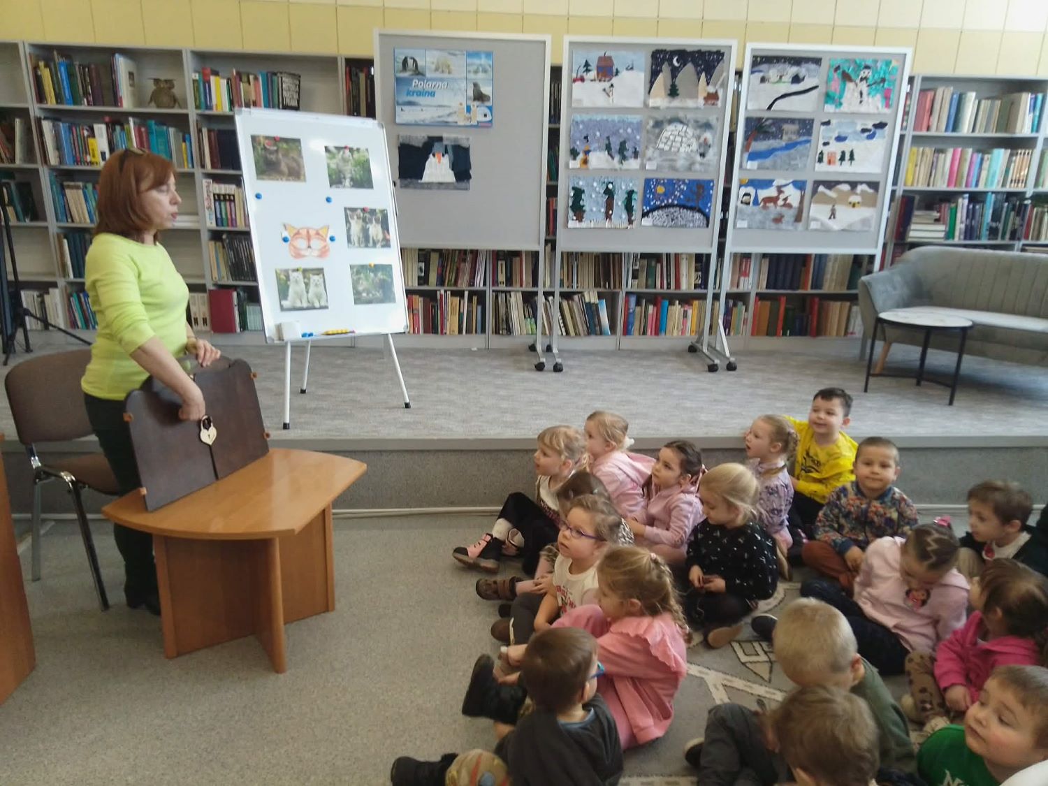 20.02.2026r –Grupa „Słoneczka” odwiedziła Bibliotekę Pedagogiczną w Łasku, by uczcić Dzień Kota. Dzieci wysłuchały wiersza” autorstwa Beaty Gabrat pt. „Kotka Psotka”, obejrzały go za pomocą kart narracyjnych teatrzyku kamishibai . Dzieci poznały jeden dzień z życia małej kotki, której przytrafiają się zabawne sytuacje. Po krótkiej rozmowie o zwyczajach i różnorodności tych zwierząt, przedszkolaki przystąpiły do wykonania zadań, które przygotowała dla nich pani Ilona. Na pamiątkę zabrały ze sobą stworzone przez siebie ilustracje do wiersza.