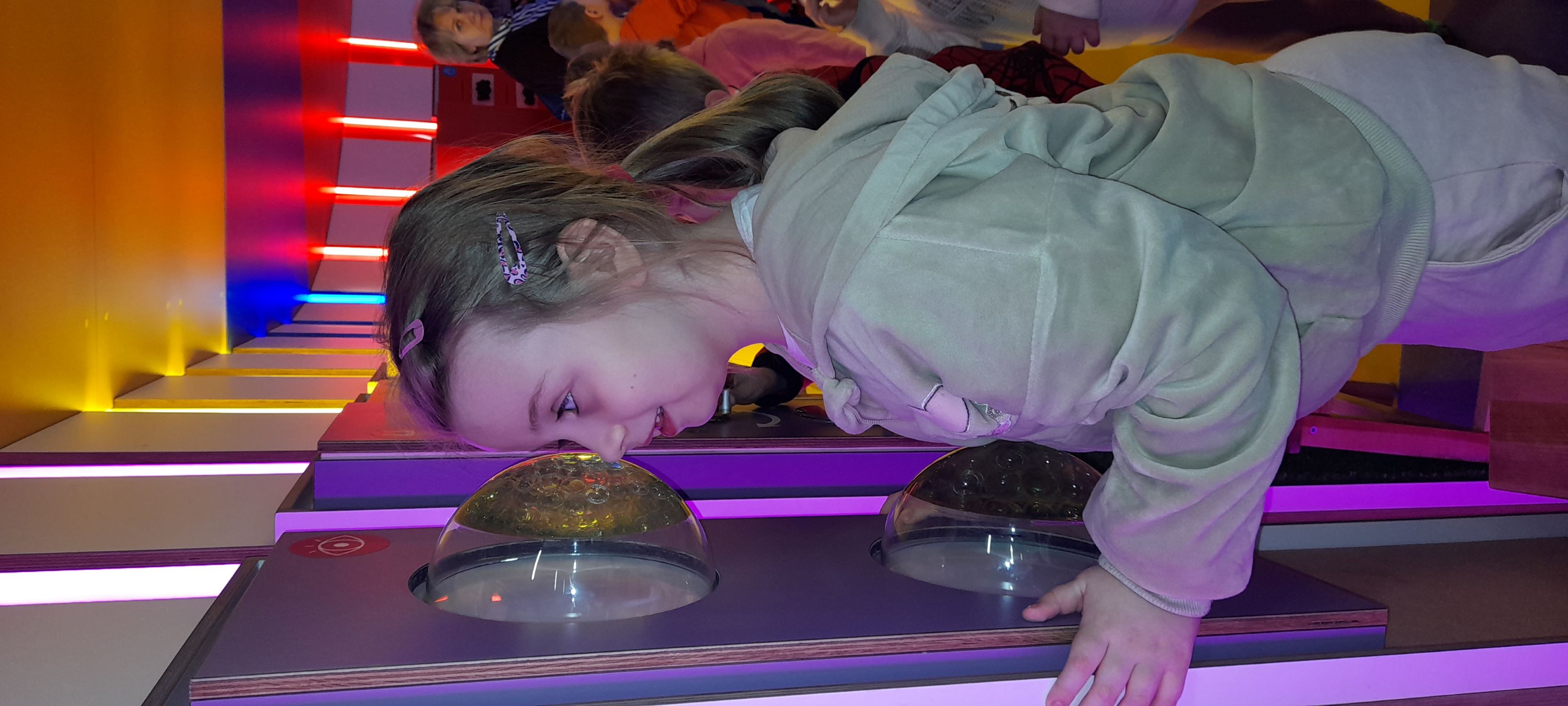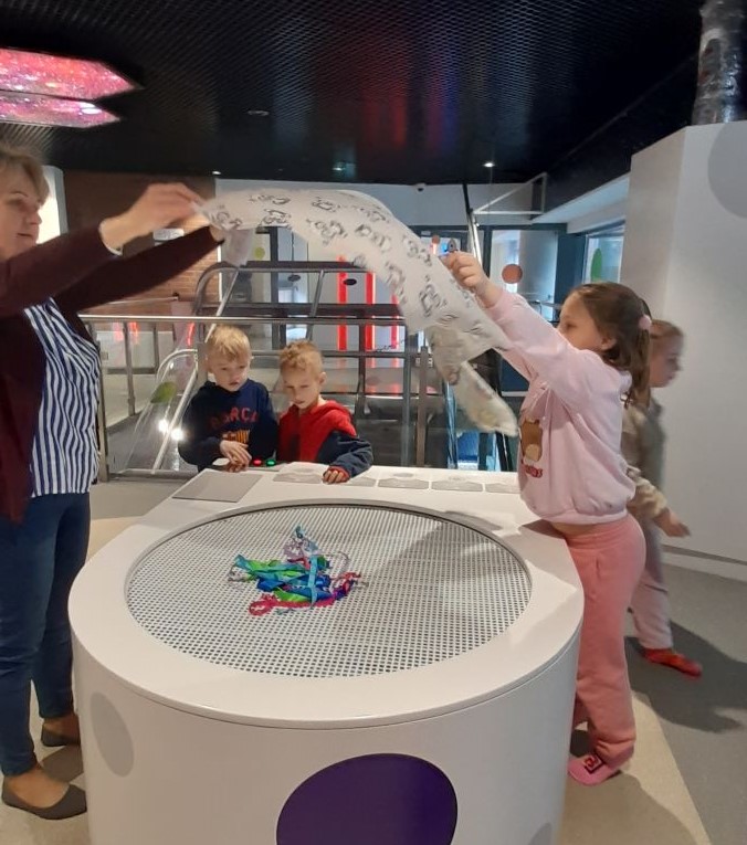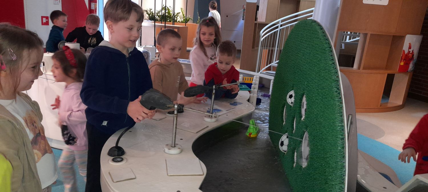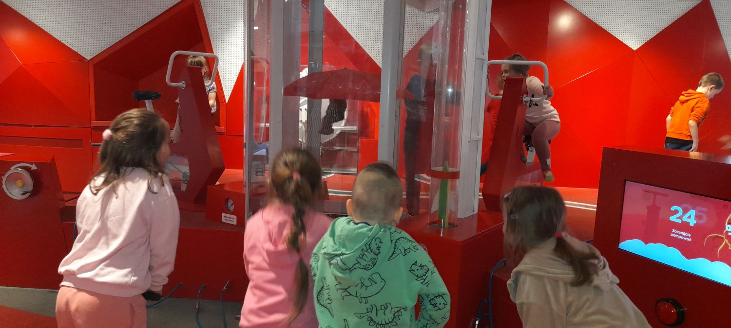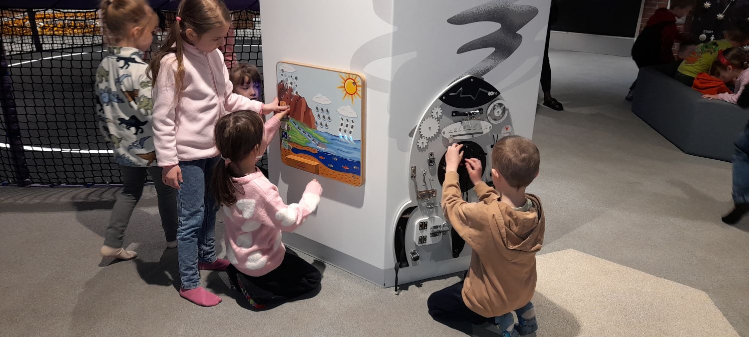 Po seansie przedszkolaki udały się na zwiedzanie Ulicy Żywiołów – wyjątkowej przestrzeni edukacyjnej, która pozwala dzieciom poznawać świat poprzez zabawę i doświadczenie. Wystawa podzielona jest na kilka stref, związanych z żywiołami: