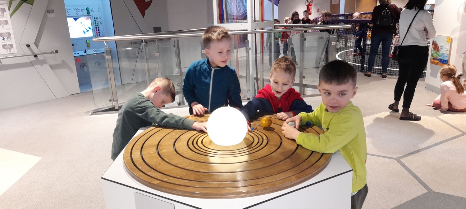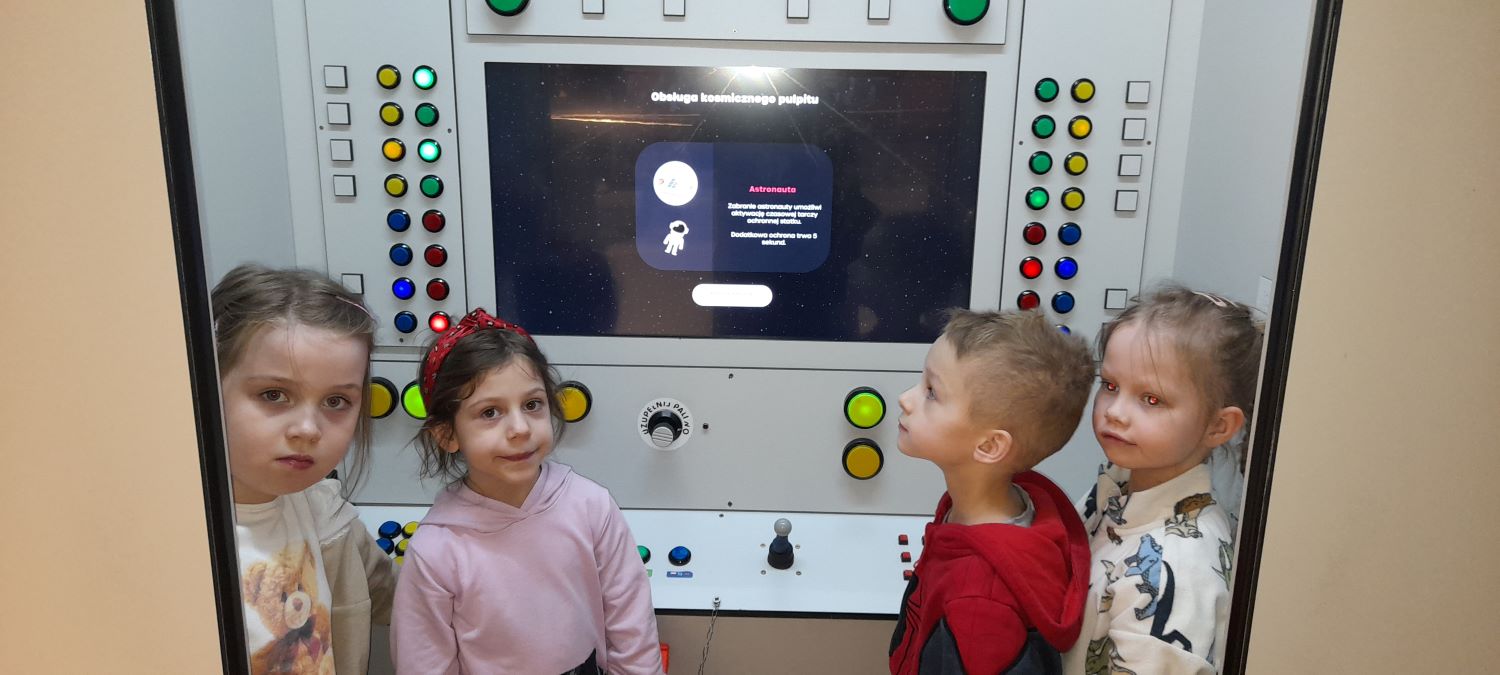 Dzieci z grupy 6-latków wzięły udział w niezwykle ciekawej i pełnej wrażeń wycieczce do Centrum Nauki i Techniki EC1 w Łodzi. Jednym z głównych punktów programu była wizyta w Planetarium, gdzie przedszkolaki obejrzały film edukacyjny pt. „3-2-1 Start!”. Film w przystępny i atrakcyjny sposób wprowadził dzieci w tematykę kosmosu oraz podróży w przestrzeń kosmiczną. Mali widzowie mogli dowiedzieć się, jak wygląda przygotowanie do lotu rakietą, co czuje astronauta podczas startu oraz jakie niesamowite zjawiska można zobaczyć w kosmosie. Kolorowe animacje i dynamiczna akcja sprawiły, że dzieci z dużym zainteresowaniem śledziły losy bohaterów.