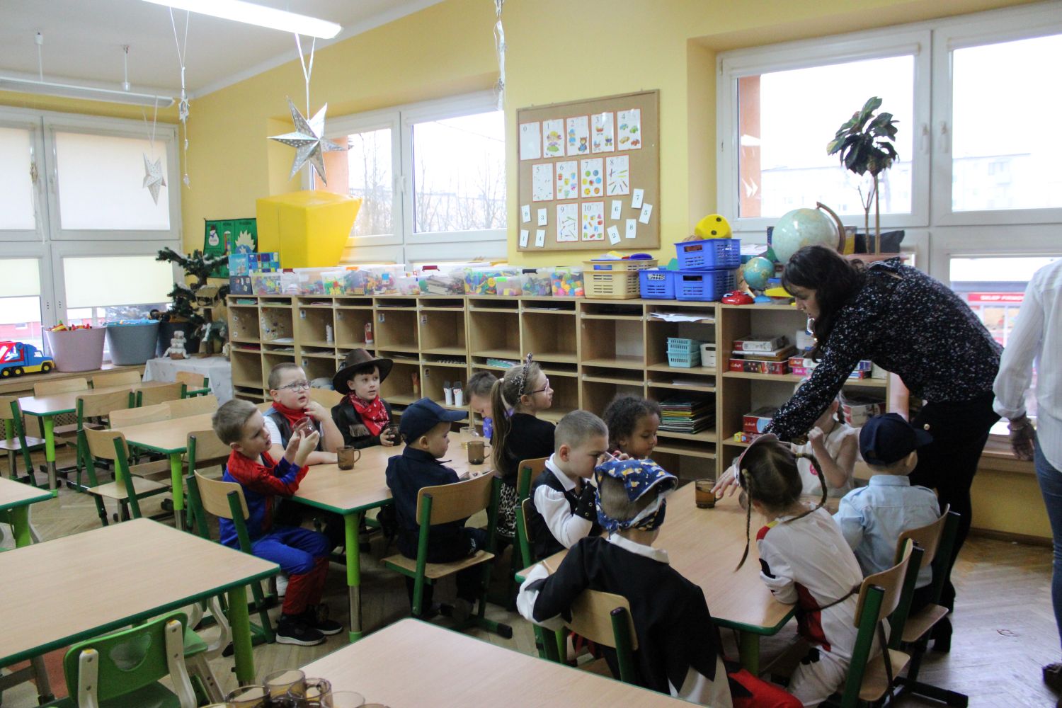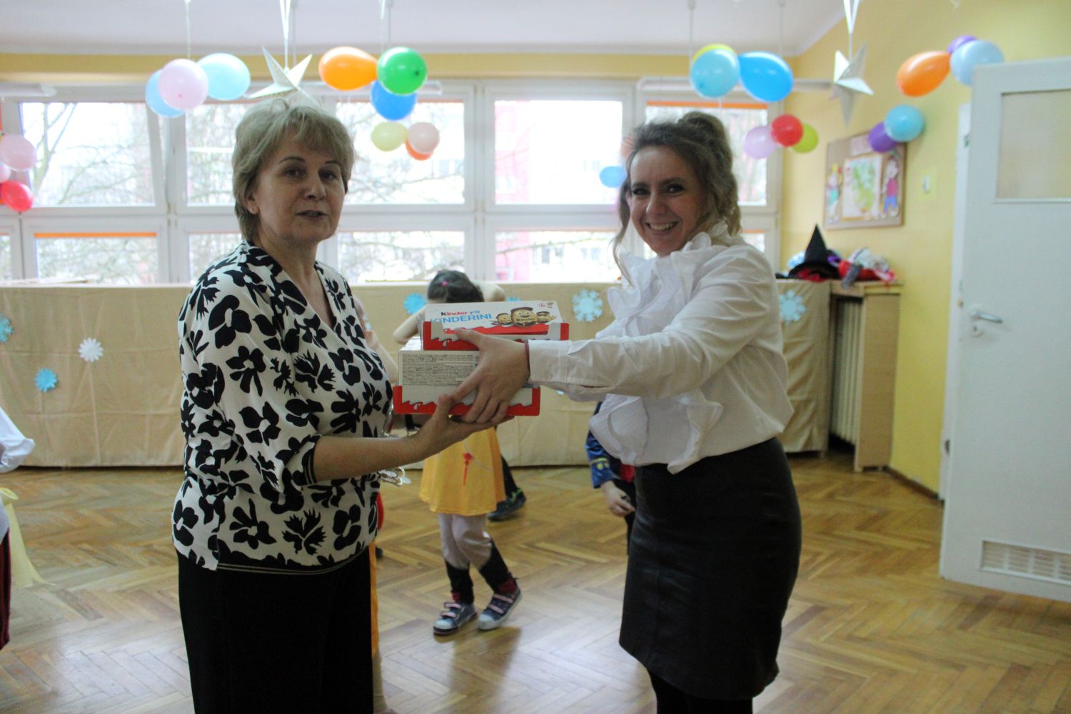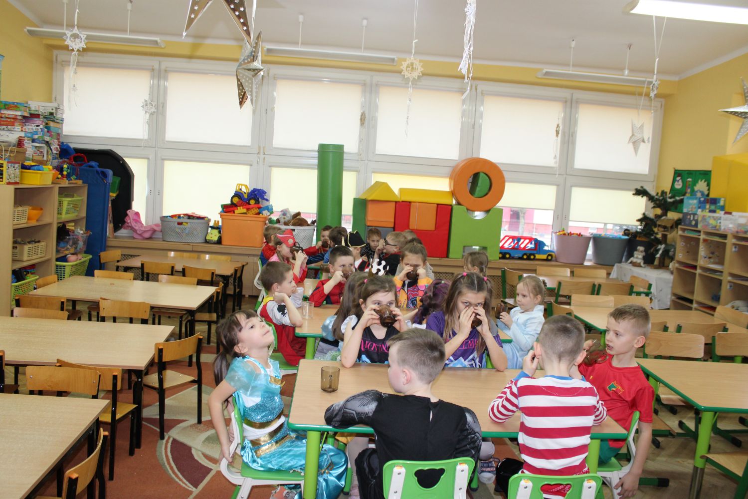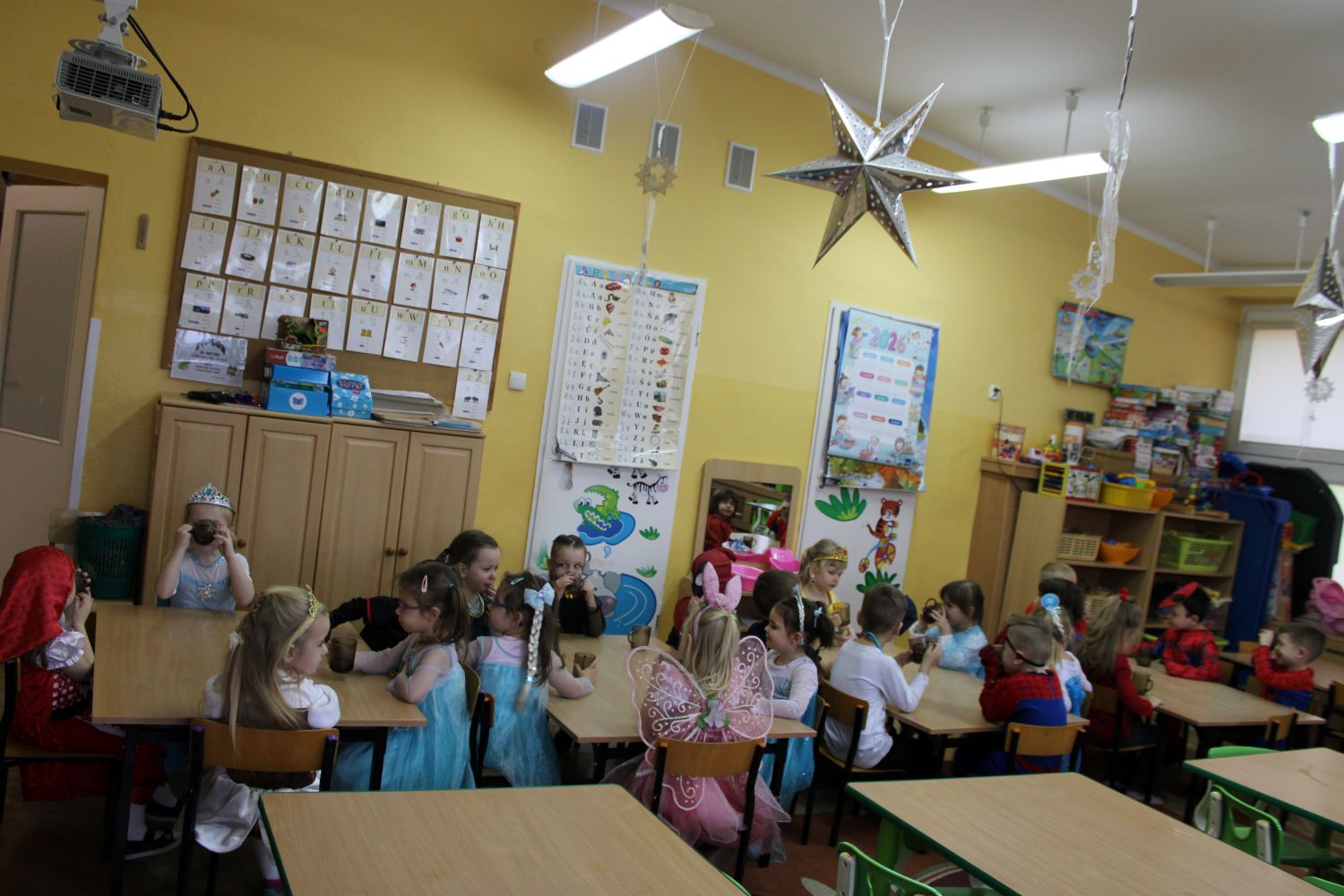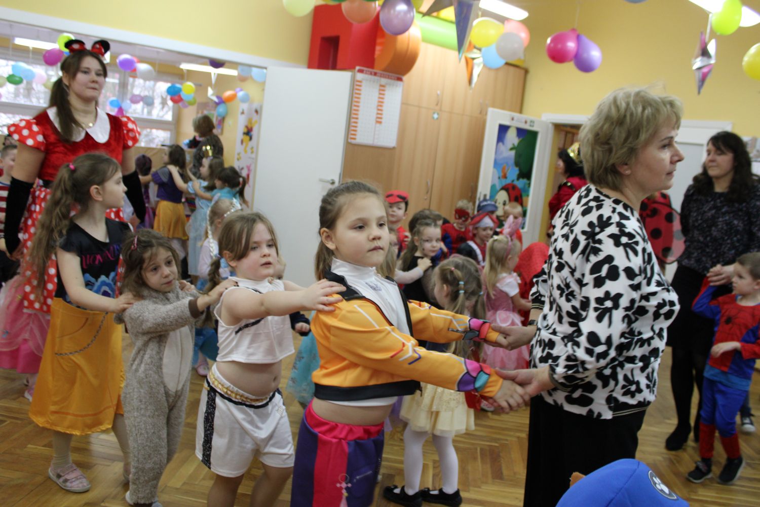 Dzień Uśmiechu i Karnawału to motto zabawy karnawałowej, która odbyła się 30.01.2026r.Kolorowe dekoracje sal i różnorodne stroje dzieci wprowadziły radosny nastrój wśród uczestników balu. Skocznym i wesołym zabawom nie było końca. Dzieci wraz z paniami i przedstawicielkami Rady Rodziców - Panią Arletą i Panią Karoliną tworzyły korowody, pociągi, kółeczka, węże, pary, które tańczyły w rytm piosenek i muzyki puszczanej przez DJ COLE – B Krzysztofa Samojednego. Była również przerwa na zaspokojenie pragnienia i konkursy prowadzone przez Panie Arletę i Karolinę, które wprowadziły element współzawodnictwa wśród uczestników. Na zakończenie zabawy została wybrana przez jury para królewska – Król Wojtek i Królowa Emilka z grupy Misiaczków. Koronacji dokonały Pani Dyrektor Zofia Molenda – Kimla oraz Pani Renia. Wspólny taniec pary królewskiej przy gromkich brawach zgromadzonych i ostatni taniec wszystkich dzieci były sygnałem końca zabawy. Za wspaniałą zabawę dzieci z każdej z grup otrzymały od Pani Dyrektor słodki upominek.