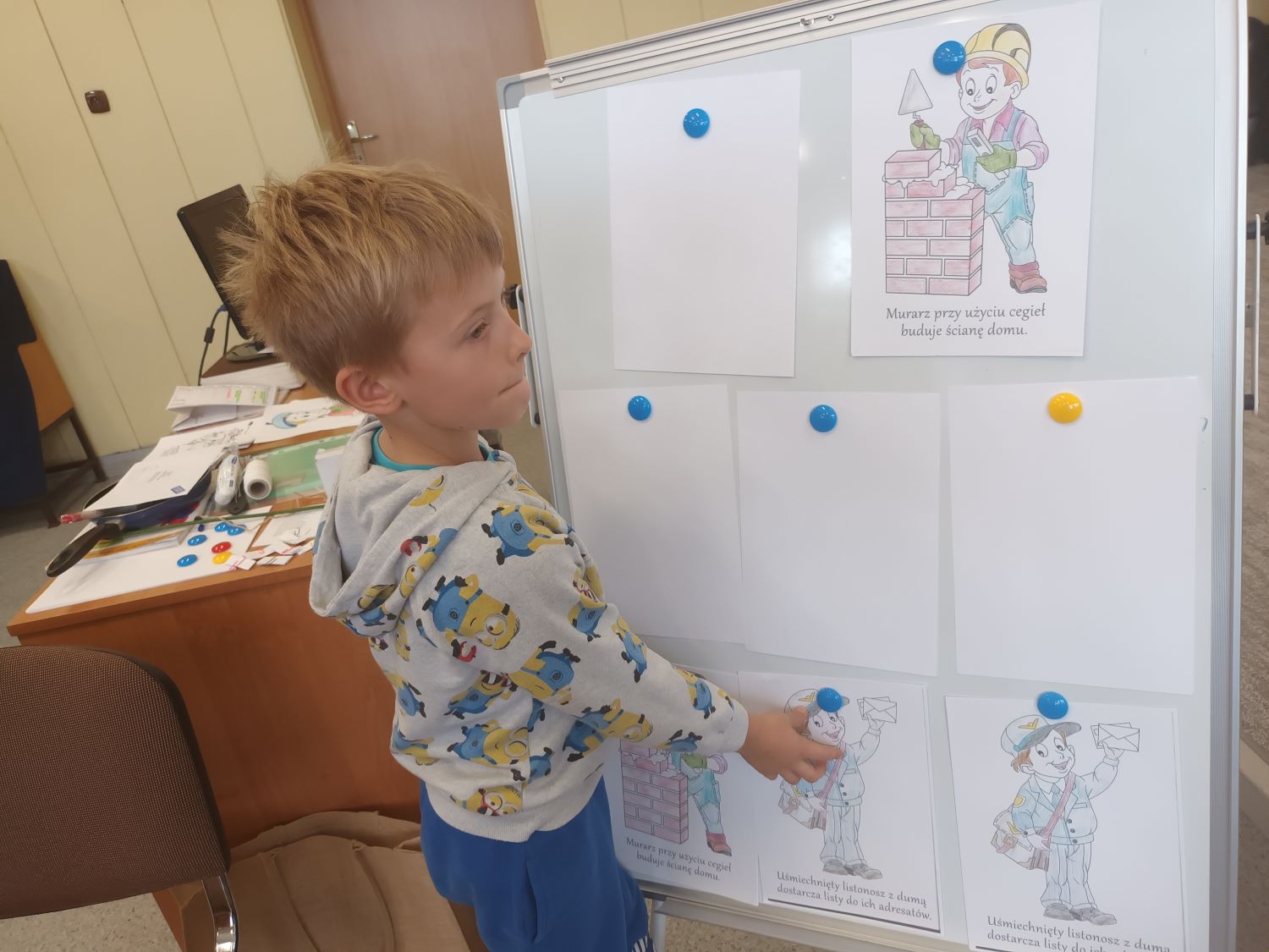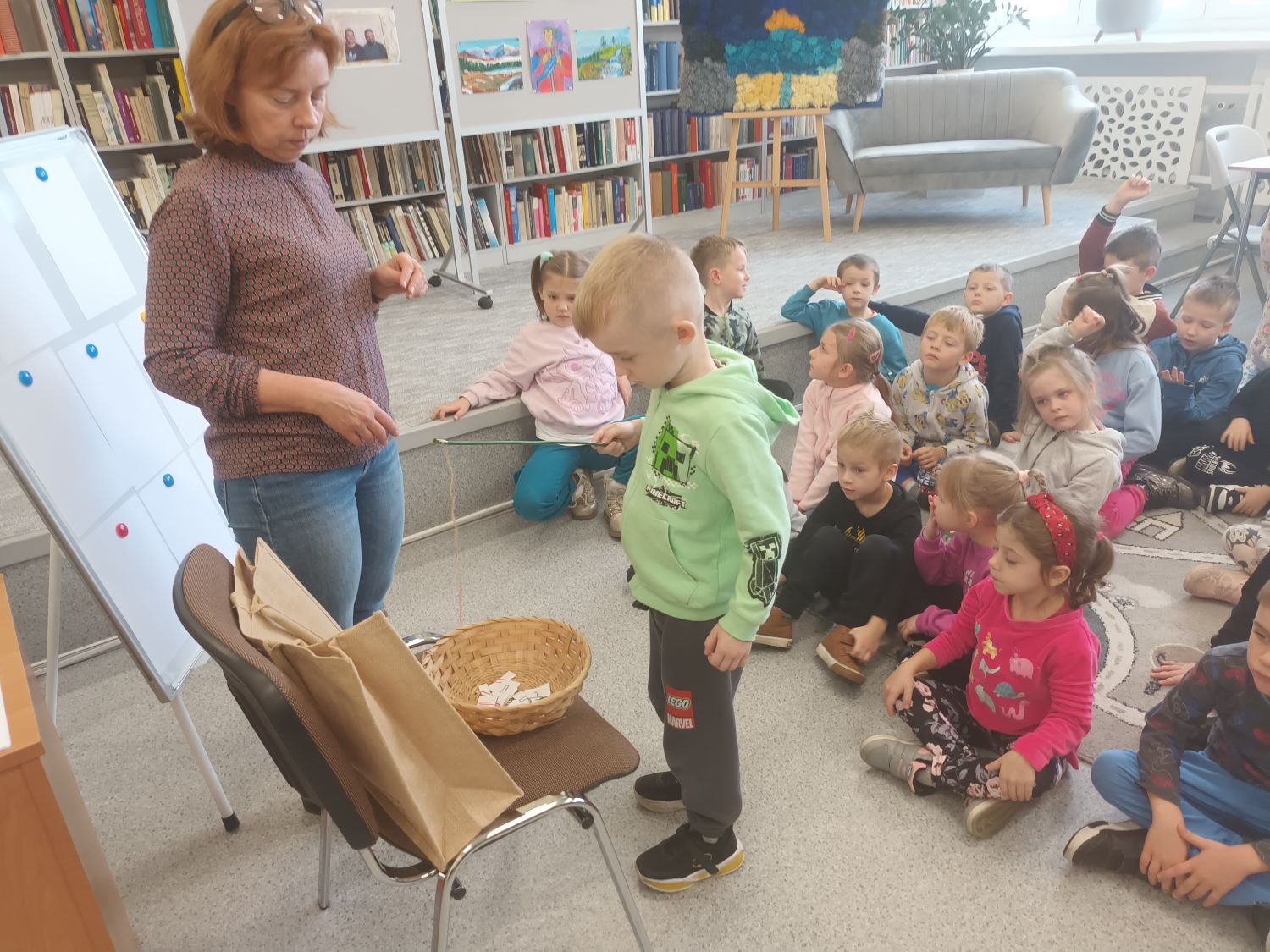 Dnia 04.11.2025r dzieci z grupy „Misiaczki” uczestniczyły w warsztatach edukacyjnych pt. „Zabawa w zawody” zorganizowanych przez Bibliotekę Pedagogiczną w Łasku (CREWŁ). Prowadząca warsztaty Pani Ilona Pluszyńska rozpoczęła warsztaty od pytania: Z czym kojarzy się dzieciom słowo zawody? Było dużo wypowiedzi dzieci dotyczących zawodów sportowych. Po wyjaśnieniu dwuznaczności słowa zawód wymieniały zawody, które chciałyby wykonywać w przyszłości były wśród nich: budowniczy, policjant, żołnierz, murarz, strażak, klown, stomatolog, piłkarz, kosmetyczka, nauczycielka, fryzjerka, tancerka. Po krótkiej rozmowie Pani Ilona zaprosiła uczestników do zabaw. Przedszkolaki nazywały przedmioty wyciągnięte z torby i określały z jakim zawodem one się kojarzą, rozwiązywały zagadki, określały nazwy zawodów przedstawionych na wylosowanej karcie, grały w memory ćwicząc pamięć wzrokową, kolorowały obrazki przedstawiające różne zawody. Na zakończenie warsztatów Misiaczki w utworzonym pociągu oprowadzone zostały przez prowadzącą po bibliotece. Dzięki warsztatom dzieci utrwaliły zdobyte wiadomości nt. zawodów oraz poszerzyły swoją wiedzę o nowe. Serdecznie dziękujemy.