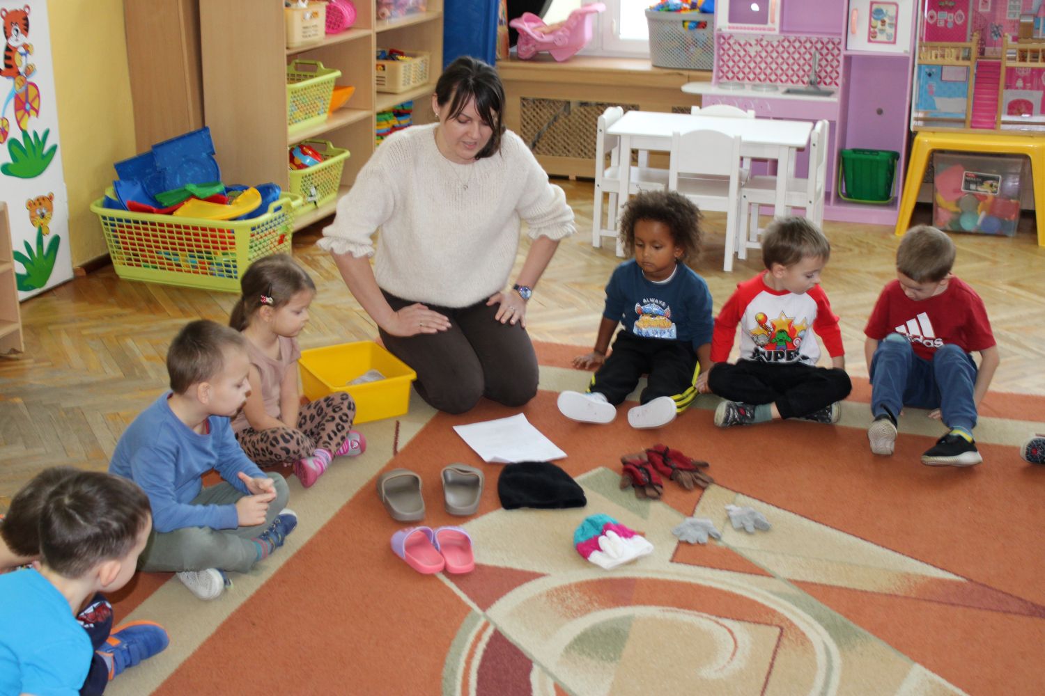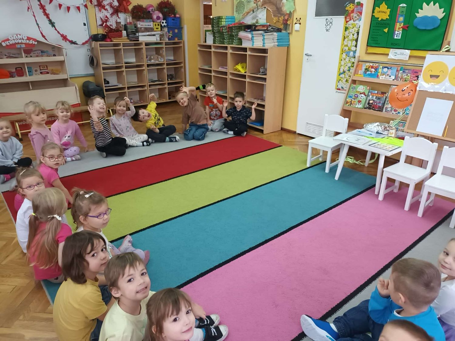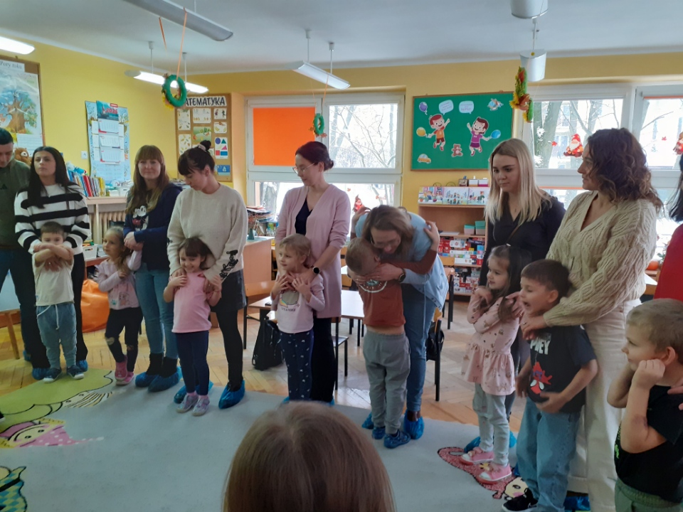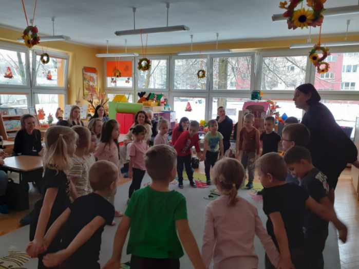 W dniu 27 listopada 2025 r. w grupie III „Żabek” odbyły się zajęcia otwarte dla rodziców pod hasłem „Bajki pomagajki”. Tematem spotkania była terapeutyczna „Bajka o Pajączku” autorstwa M. Molickiej, która stała się punktem wyjścia do rozmów o akceptacji, szacunku i budowaniu pozytywnych relacji między dziećmi. Spotkanie rozpoczęło się radosnym powitaniem „Iskierką przyjaźni”, a następnie dzieci zastanawiały się nad pytaniem: „Czy wszyscy jesteśmy tacy sami?”. Przy pomocy zestawu butów, rękawiczek i czapek w różnych rozmiarach odkrywały, że różnice są naturalne i nie świadczą o czyjejkolwiek wartości. Przedszkolaki uczyły się rozpoznawać zachowania pozytywne i negatywne, a także zastanawiały się nad tym, jak słowa i gesty mogą wpływać na drugiego człowieka. Nie zabrakło także ruchu – dzieci bawiły się przy piosence „Pajączki i jesień”. Centralnym punktem spotkania było wysłuchanie bajki terapeutycznej. Pięknym momentem była również „Pajęczynka przyjaźni” – zabawa, w której dzieci przekazywały sobie kłębek wełny, mówiąc sobie nawzajem coś miłego i wzmacniającego. Wspólna aktywność rodziców i dzieci zaowocowała także stworzeniem ilustracji do grupowej książeczki o Pajączku. Pod koniec warsztatów powstała „Pajęczyna Dobra” – dzieci przyklejali papierowe pajączki. Spotkanie zakończyło się podziękowaniem dla rodziców za obecność, współpracę i zaangażowanie. Jeszcze raz dziękujemy rodzicom za obecność i aktywne uczestnictwo w zajęciach.
