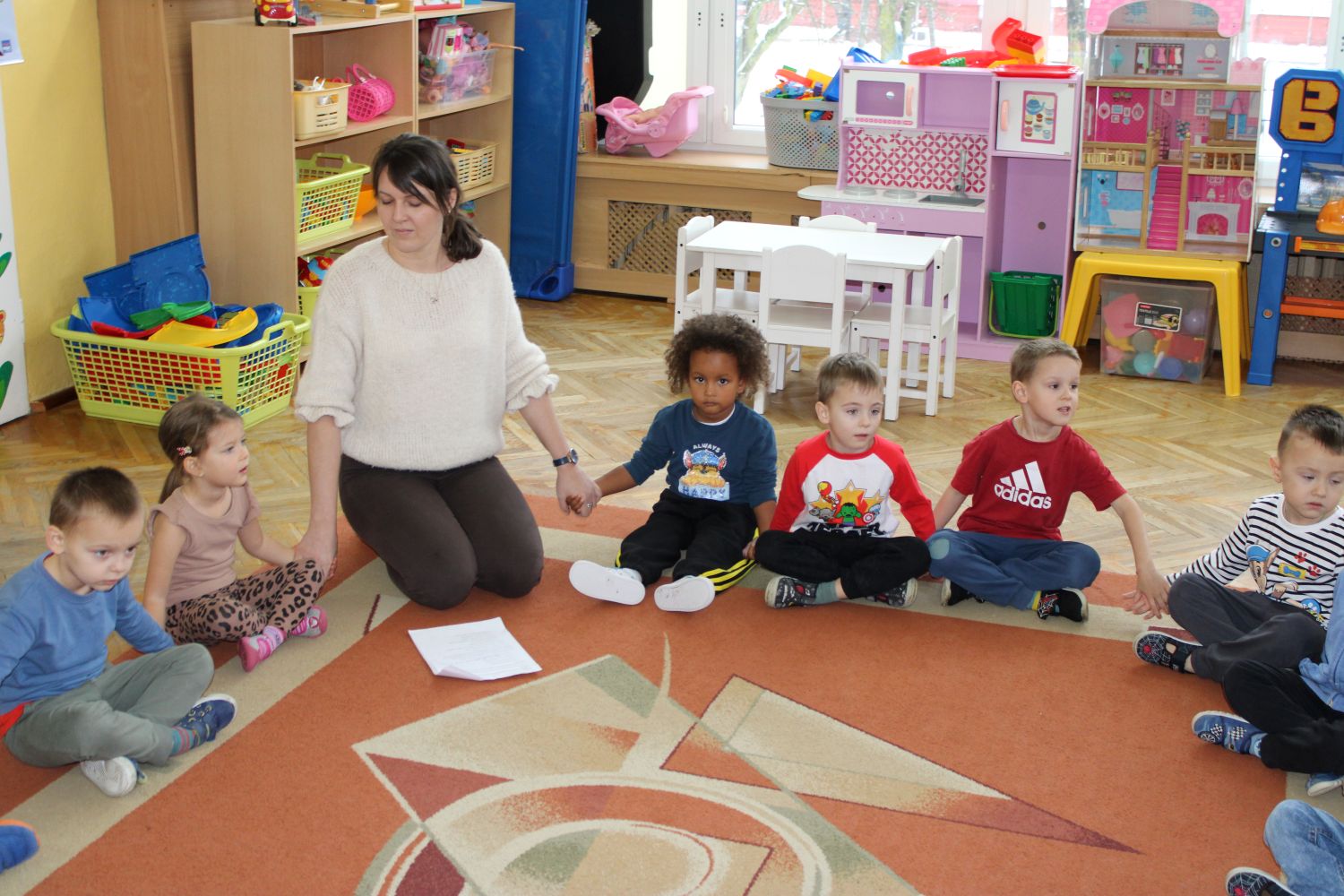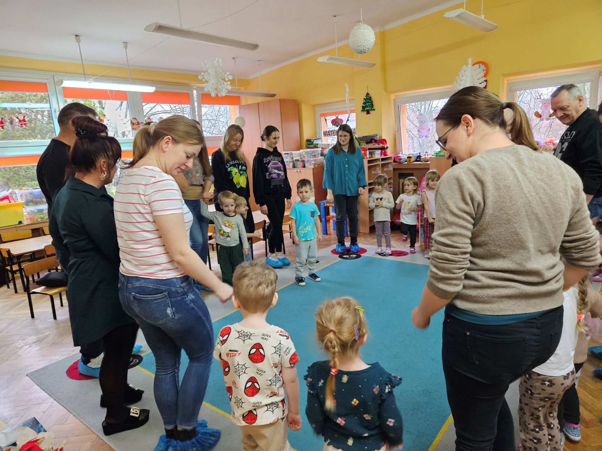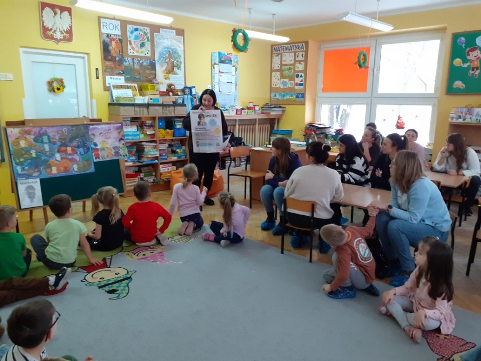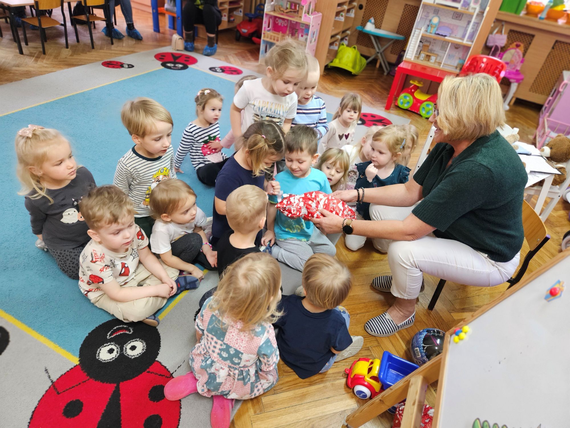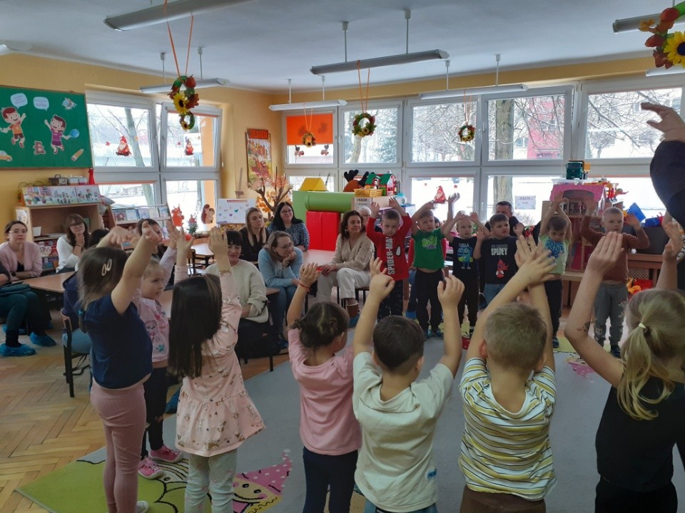 Tradycją naszego przedszkola i zarazem jedną z form współpracy z rodzicami jest prowadzenie zajęć otwartych. Możliwość uczestniczenia w tego rodzaju zajęciach daje rodzicom obraz pracy nauczyciela z dzieckiem, pokazuje stosowane metody i formy pracy oraz każdy z rodziców ma możliwość zaobserwowania swojego dziecka na tle grupy rówieśniczej. Grupa „ Krasnoludków” zaprosiła swoich rodziców na zajęcie i warsztaty w poniedziałek 24.11.2025 r. Tematem zajęcia było opowiadanie „ Markotek z wyspy Smutku” czyli poznawanie różnorodnych sposobów na radzenie sobie z emocjami, które są zbyt intensywne lub trwają za długo oraz dbanie o dobre samopoczucie i pozytywne relacje z innymi. Dzieci wypowiadały się na temat treści opowiadania, dowiedziały się, że wszystkie emocje – także trudne – są naturalne i potrzebne, tylko trzeba znaleźć sposób aby zapanować nad nimi. „ Krasnoludki” zaprosiły również swoich rodziców do wspólnej zabawy integracyjnej „ Gdy dopada smutek”. W drugiej części zajęcia rodzice tworzyli książeczkę nt. „Sposoby na smutek” - co pomaga dzieciom na smutek. Propozycje rodziców na pewno pomogą przedszkolakom w smutnych dla nich chwilach. Zajęcia przebiegły w miłej atmosferze, przedszkolaki chętnie pracowały pod kierunkiem nauczyciela oraz ze zrozumieniem słuchały poleceń. Dziękujemy rodzicom za to, iż mimo wielu obowiązków przybyli do przedszkola, aby towarzyszyć swoim dzieciom.