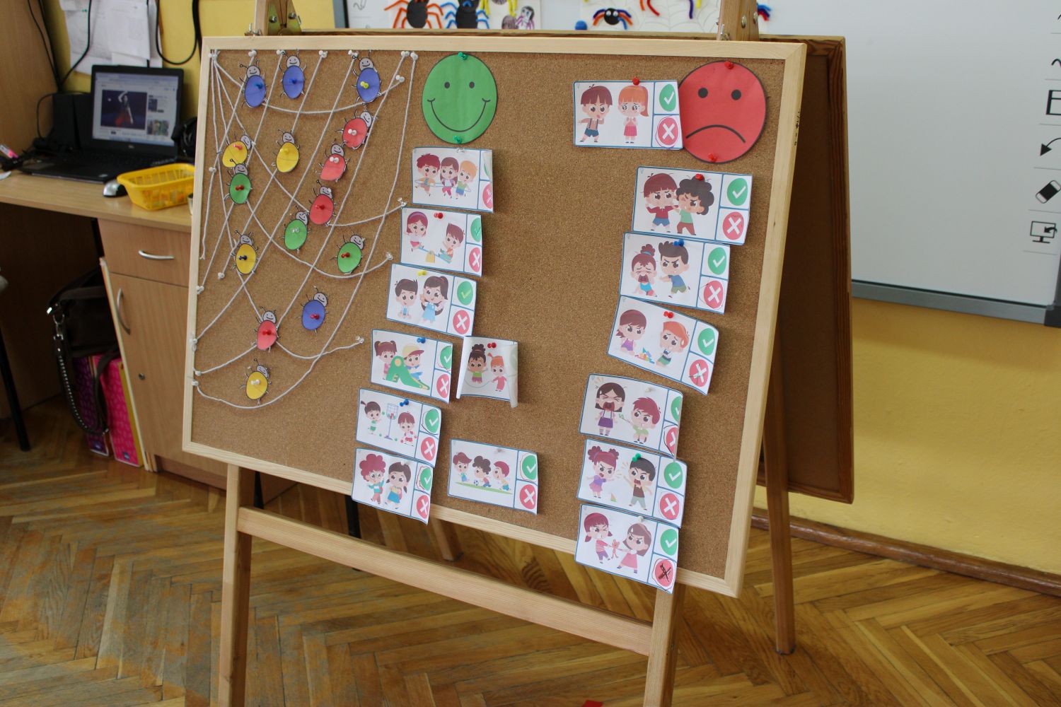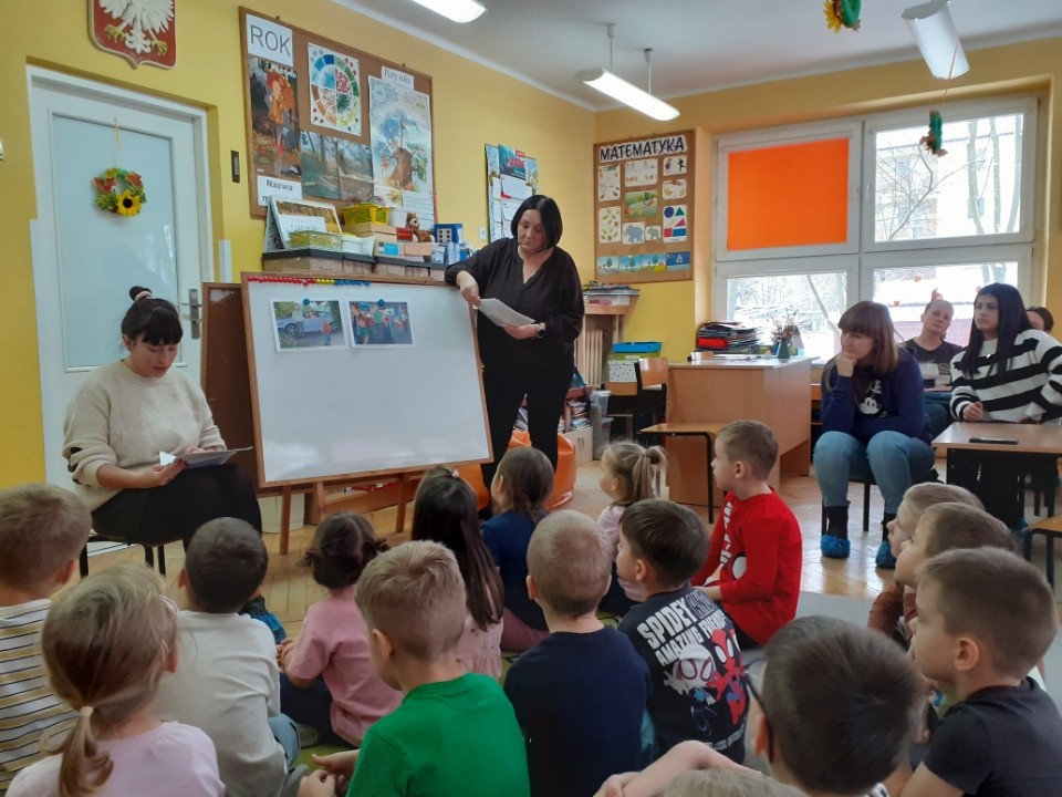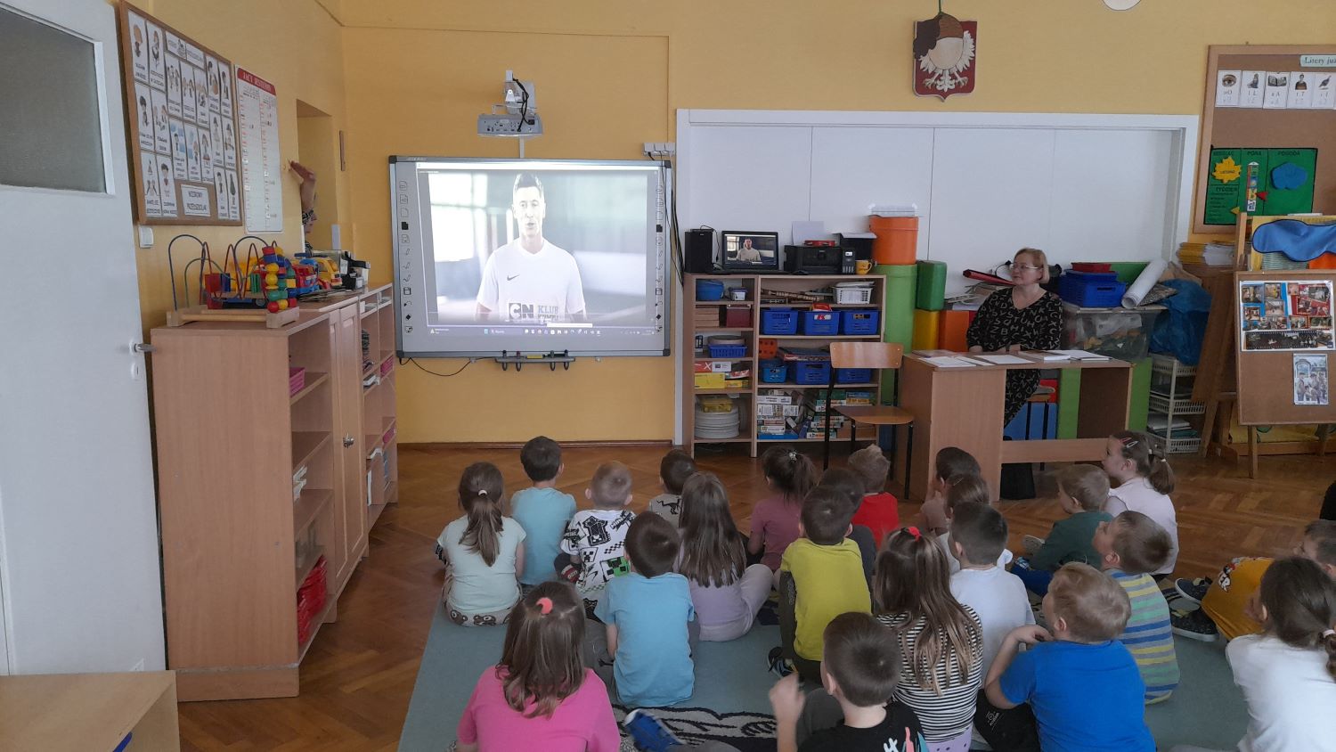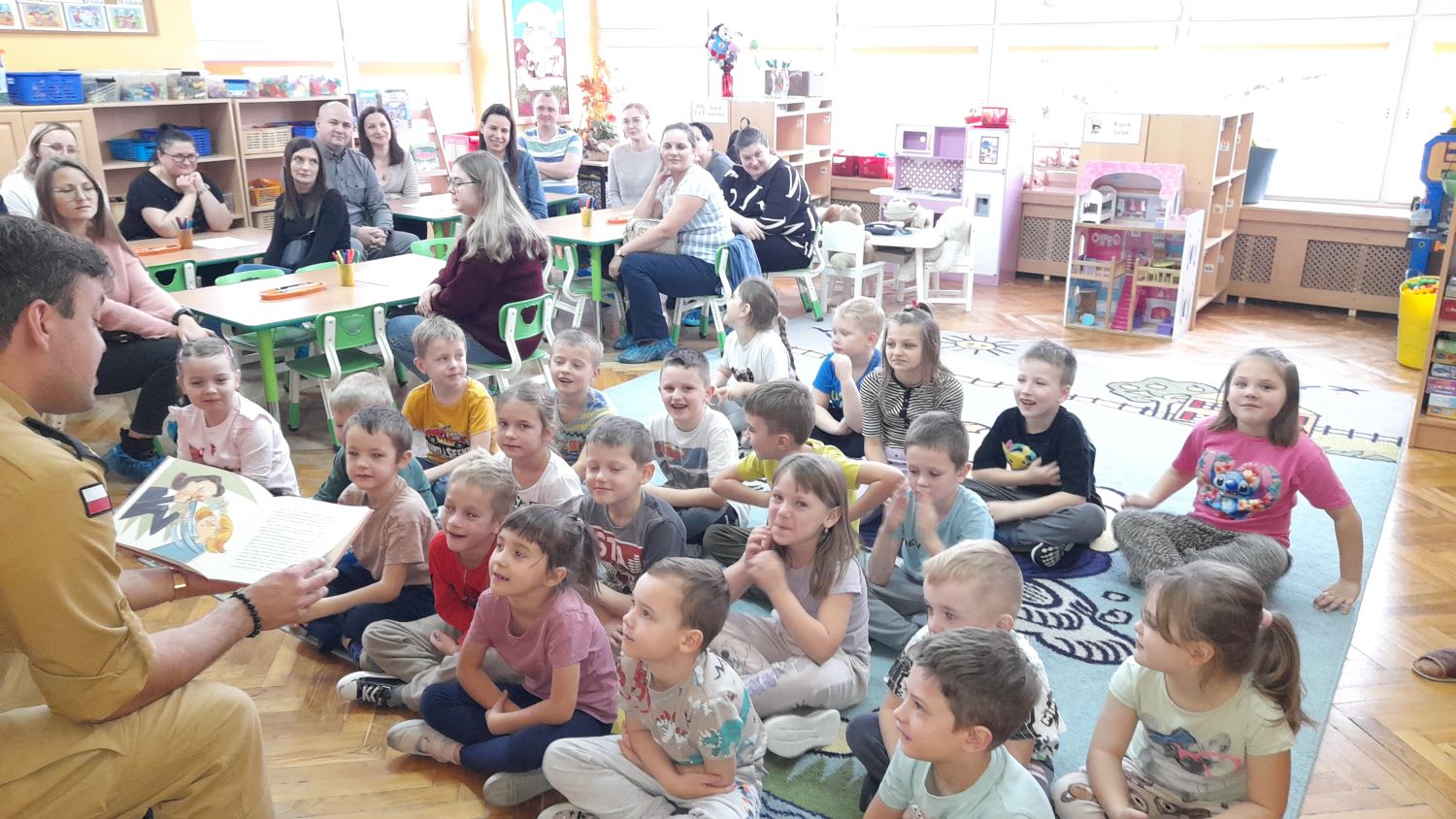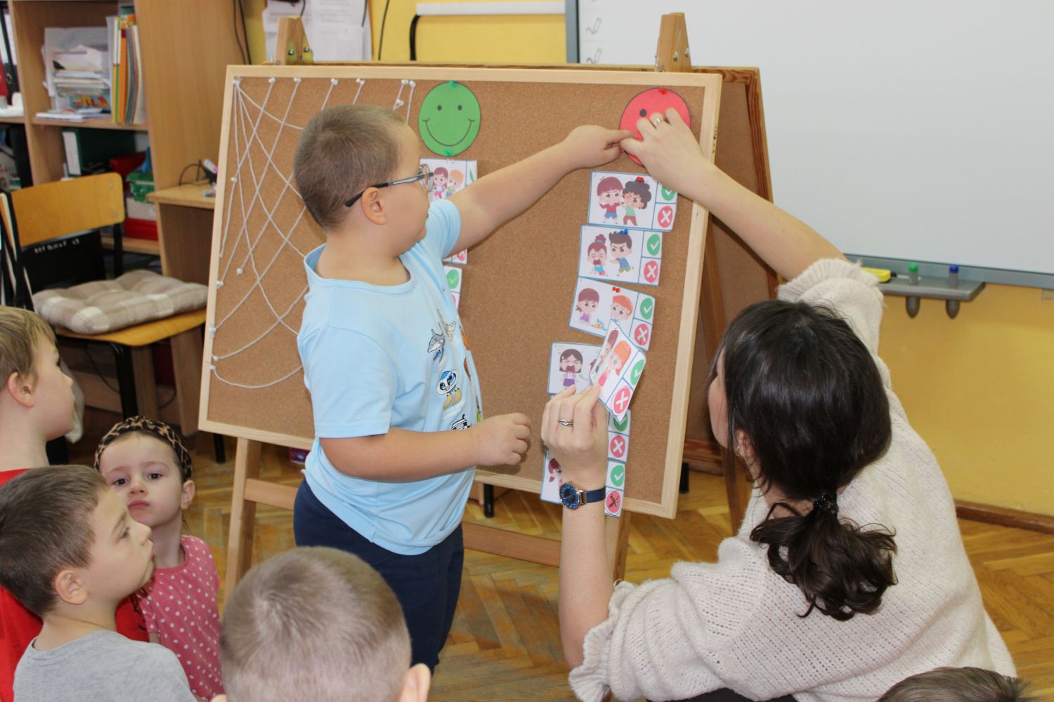 W środę, 26 listopada 2025 r. w grupie „Misiaczków”odbyły się zajęcia otwarte, podczas których dzieci z wraz z Rodzicami wyruszyły w literacko - plastyczną podróż inspirowaną książką Joanny Fabickiej: „Dokuczalska”. Po krótkim wprowadzeniu przez Panią Beatę w tematykę zajęć, jeden z rodziców chętnie zgłosił się do przeczytania książki. Dzieci z radością słuchały treści opowieści, angażując się w historię i losy bohaterów. W trakcie czytania przedszkolaki z zaciekawieniem oglądały prezentowane ilustracje. „Misiaczki” chętnie zgłaszały się do odpowiedzi na pytania dotyczące wysłuchanej historii, dzieląc się swoimi spostrzeżeniami na temat bohaterów utworu. Kolejnym punktem zajęć było obejrzenie krótkiego filmiku edukacyjnego z kampanii Cartoon Network z Robertem Lewandowskim „Bądź kumplem, nie dokuczaj”, który pomógł dzieciom jeszcze lepiej zrozumieć, jak ważne jest życzliwe traktowanie innych i dobre relacje rówieśnicze. Następnym elementem zajęć było wspólne zaśpiewanie piosenki: „Świat emocji”. W czasie zabaw ruchowych „Misiaczki” pokazywały za pomocą mimiki i gestów takie uczucia jak: radość, smutek, złość i strach. Najbardziej twórczą częścią zajęć było wspólne przygotowanie ilustracji do własnych, autorskich książeczek. W atmosferze skupienia i radości „Misiaczki” wraz z Rodzicami z zapałem ilustrowały treść opowiadania, tworząc kolorowe obrazki, które – z niewielką pomocą dorosłych – zamieniały się w piękne, małe dzieła sztuki. Wspólna praca przyniosła wiele satysfakcji, dzieci chętnie składały razem swoje ilustracje i okładki, tworząc barwne książeczki. Każdy zespół z dumą demonstrował swoje dzieła. Na zakończenie wszyscy uczestnicy – dzieci, rodzice i panie – pozowali do wspólnego, pamiątkowego zdjęcia. Książeczki wykonane podczas zajęć, będące pięknym dowodem kreatywności i współpracy, zostały umieszczone na tablicy grupy Misiaczków, a później zostaną włączone do biblioteczki w sali, by dzieci mogły korzystać na co dzień z efektów swojej pracy.
