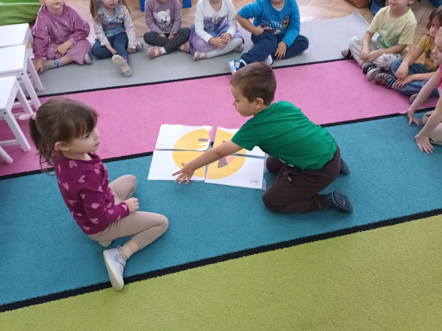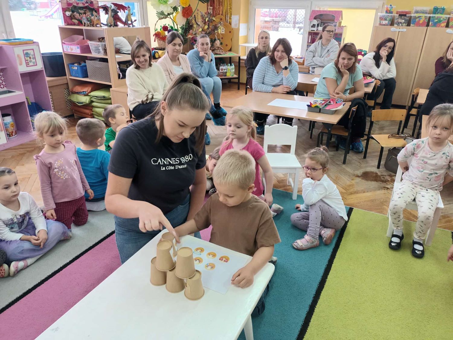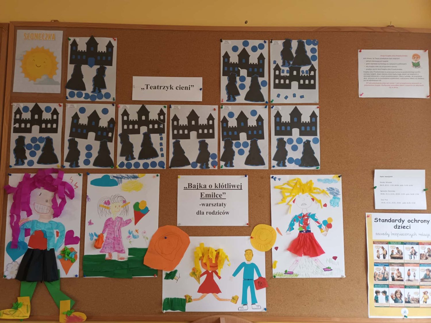 24.11.2025 r -Jesienne warsztaty z rodzicami rozpoczęły przedszkolaki z grupy „”Słoneczka”. Dzieci powitały rodziców rozmową o emocjach pozytywnych i negatywnych. Następnie ułożyły puzzle XXL i odnalazły właściwy obrazek do nich. Sprawdziły swoją spostrzegawczość podczas odnajdywania wesołej emotki, ścigały się w przeciąganiu wesołych balonów. Wykazały się dużym skupieniem uwagi podczas układania kubeczkowych piramid według wzoru. Trudnym zadaniem na współpracę z dorosłym okazało się budowanie wieży z kubków przy pomocy sznurków na gumce. Wycinanie to nie jest najmocniejsza strona maluchów, ale przy strzyżeniu wesołych emotek wyszło im to nawet sprawnie. Pani Renia zaskoczyła dzieci niespodzianką –wesołymi ciasteczkami, które umiliły słuchanie opowiadania Jerzego Jarka pt.”Bajka o kłótliwej Emilce”. Do tego opowiadania dzieci wspólnie z rodzicami stworzyli w zespołach 4 ilustracje, które mają przypominać dzieciom, że lepsza od kłótni jest współpraca.