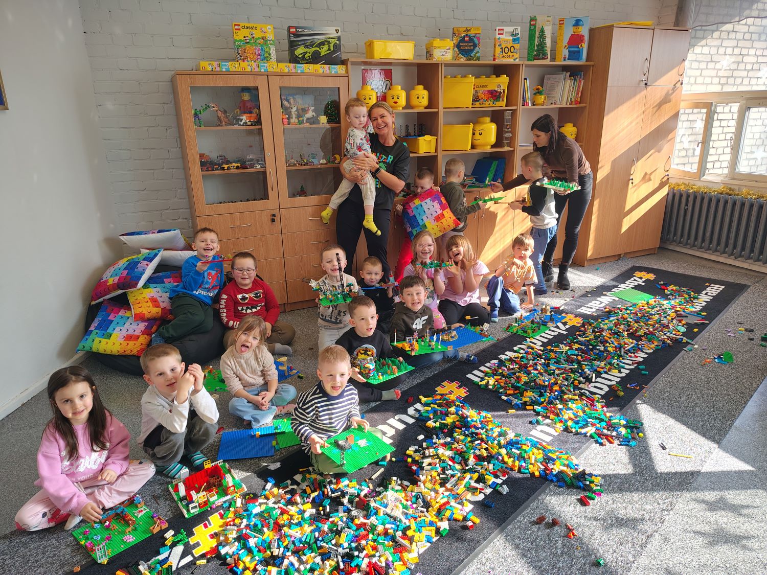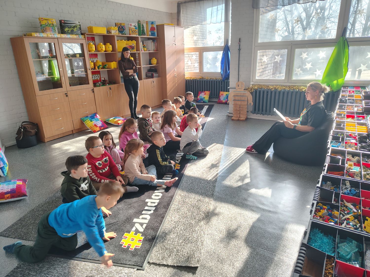 03.03.2026 przedszkolaki z grupy „Żabki” wybrały się na wyjątkowe zajęcia z klockami LEGO, które odbyły się w bibliotece 32. Bazy Lotnictwa Taktycznego mieszczącej się w Klubie Garnizonowym. Spotkanie rozpoczęło się od powitania przez Panią Magdę przedszkolaków, oraz ustalenia zasad obowiązujących podczas spotkania :„Tysiące klocków. Jedna zasada: robimy po swojemu”, „Każdy pomysł jest dobry”. Z okazji Światowego Dnia Dzikiej Przyrody dzieci wysłuchały bajki „ Jak Żółw uratował Dzień Dzikiej Przyrody”. Opowieść dotyczyła dzikich zwierząt, ich naturalnych środowisk. Dzieci z dużym zainteresowaniem słuchały historii o mieszkańcach lasu. Po wysłuchaniu bajki przedszkolaki przystąpiły do części twórczej. Ich zadaniem było zbudowanie z klocków LEGO tego, co najbardziej zapamiętały z opowieści. Powstały wspaniałe konstrukcje. Podczas zajęć dzieci rozwijały swoją wyobraźnię, kreatywność oraz umiejętność współpracy w grupie. Zajęcia sprawiły wszystkim wiele radości i były doskonałą okazją do połączenia zabawy z nauką.
