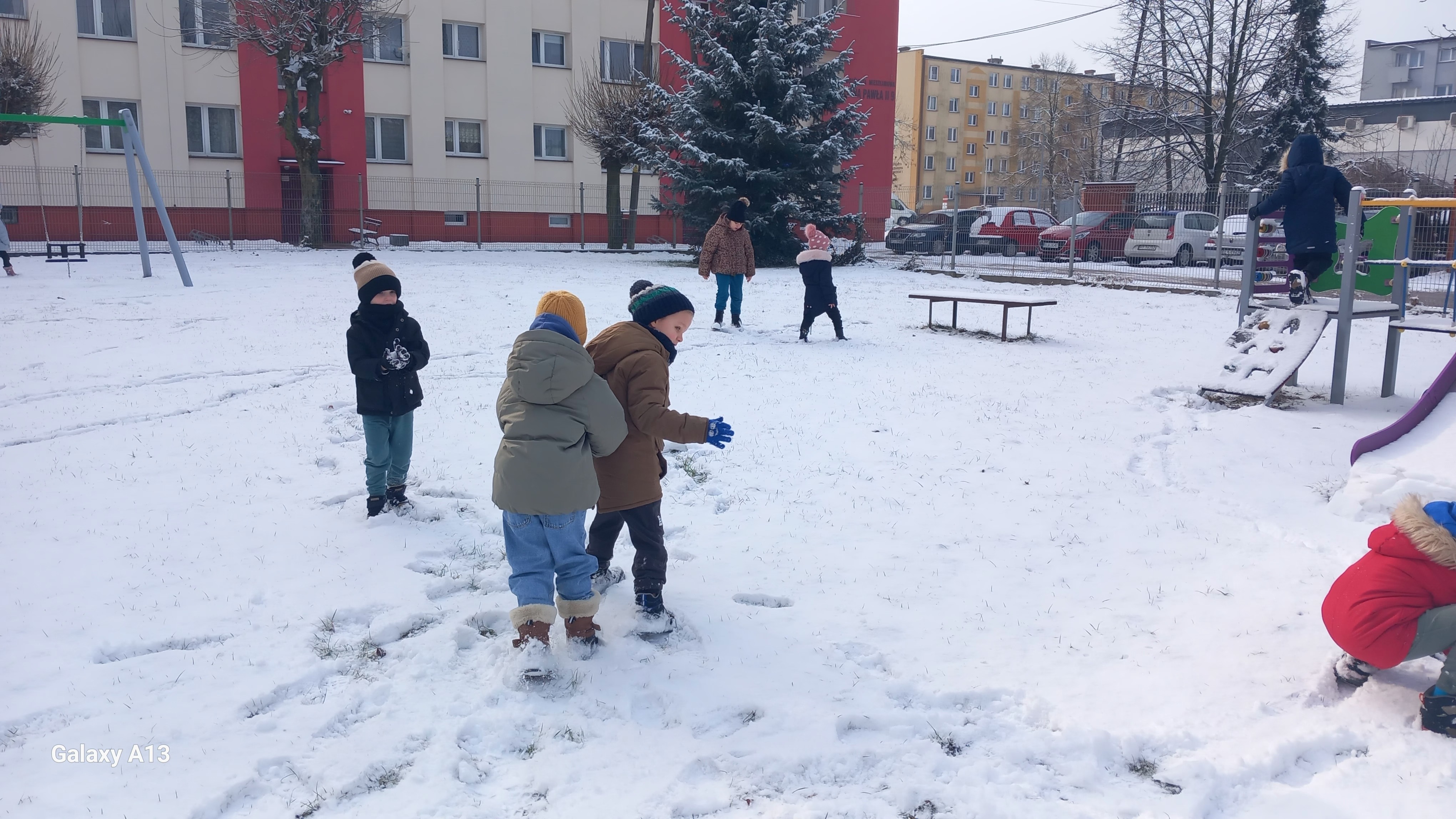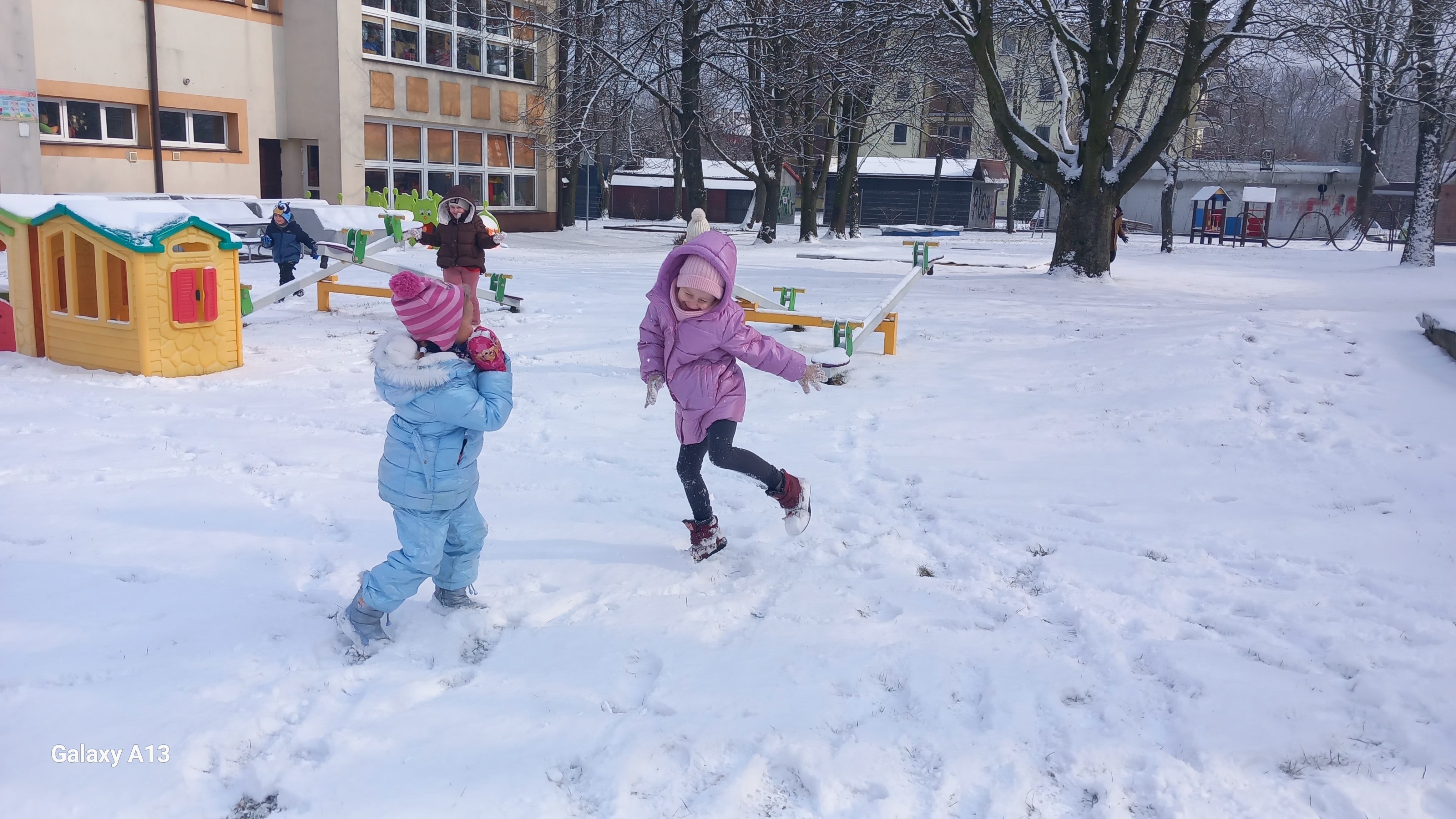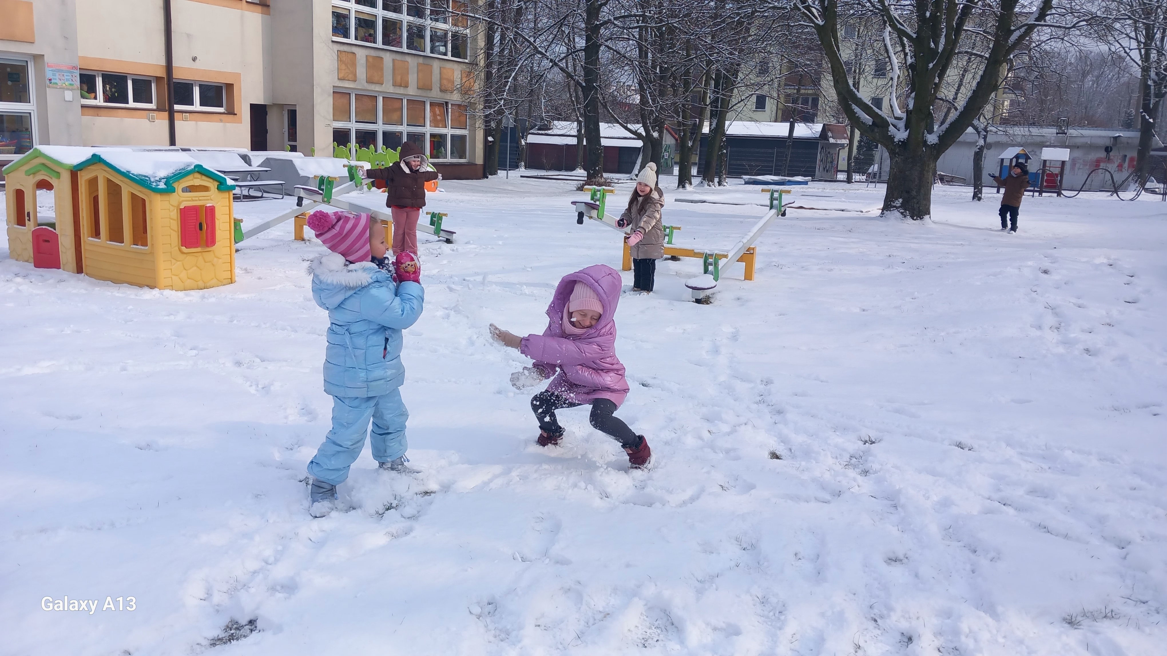 W środę 18.02.2026 r. korzystając z uroków zimy przedszkolaki z grupy „ Krasnoludków” wybrały się na zimowy spacer a w drodze powrotnej do przedszkola bawiły się na śniegu w naszym przedszkolnym ogrodzie. Dzieci oddały się zimowemu szaleństwu, lepiąc śnieżne budowle i rzucając się śnieżkami. Dzieci uwielbiają zabawy na świeżym powietrzu, była to dla nich to świetna rozrywka. Było wesoło i radośnie. Z uśmiechami na twarzach wróciliśmy do przedszkola na ciepły obiad.